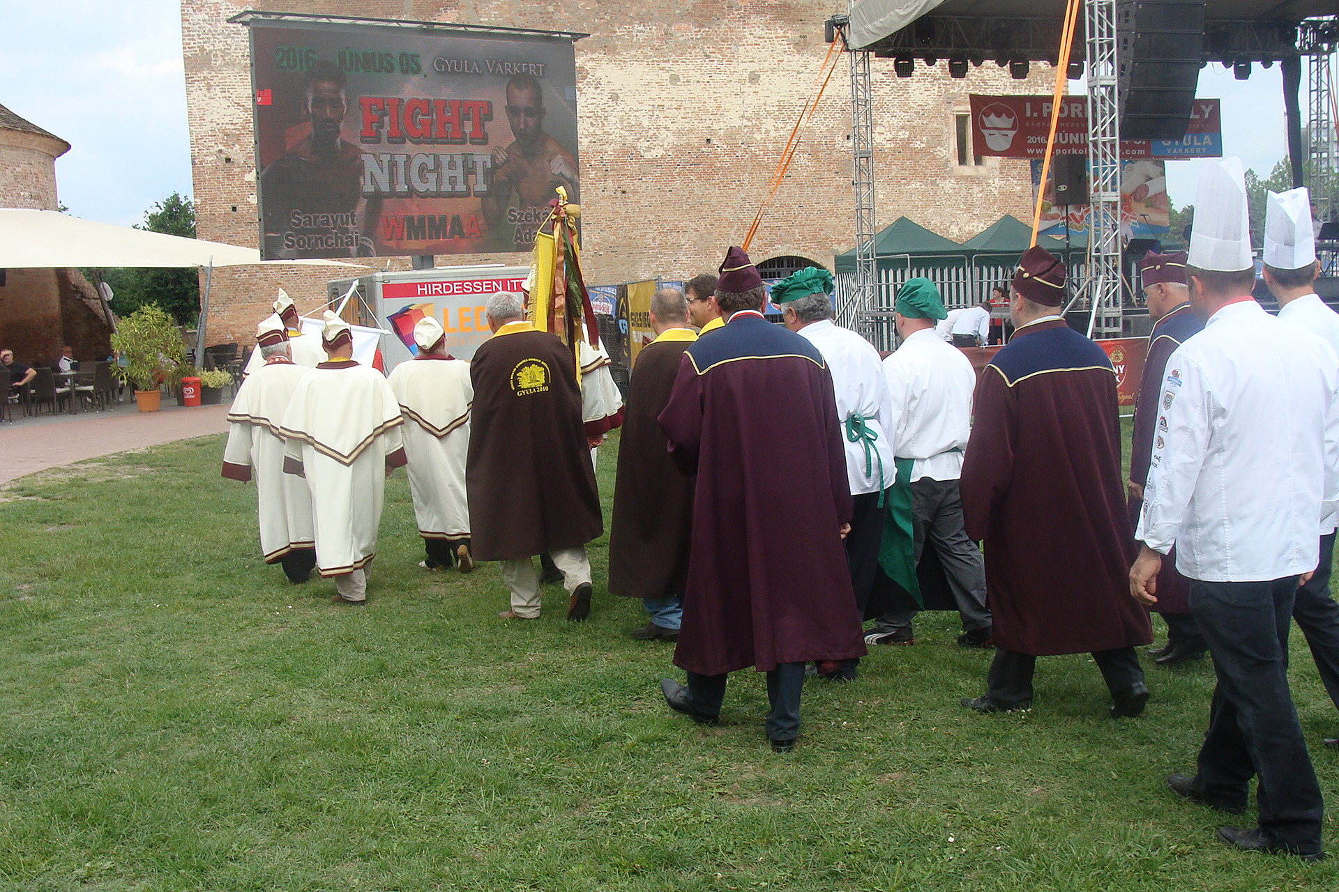 Délután a fesztivál helyszínén, a várkertben is elindultak a programok. Elsőként a Garden Party zenekar adott koncertet, utánuk pedig elkezdődött a hivatalos megnyitó. Először a gasztronómiai lovagrendek vonultak fel, többek között a Magyar Fehérasztal Lovagrend és a Göndöcs Benedek Mézlovagrend, majd következtek a megnyitóbeszédek.