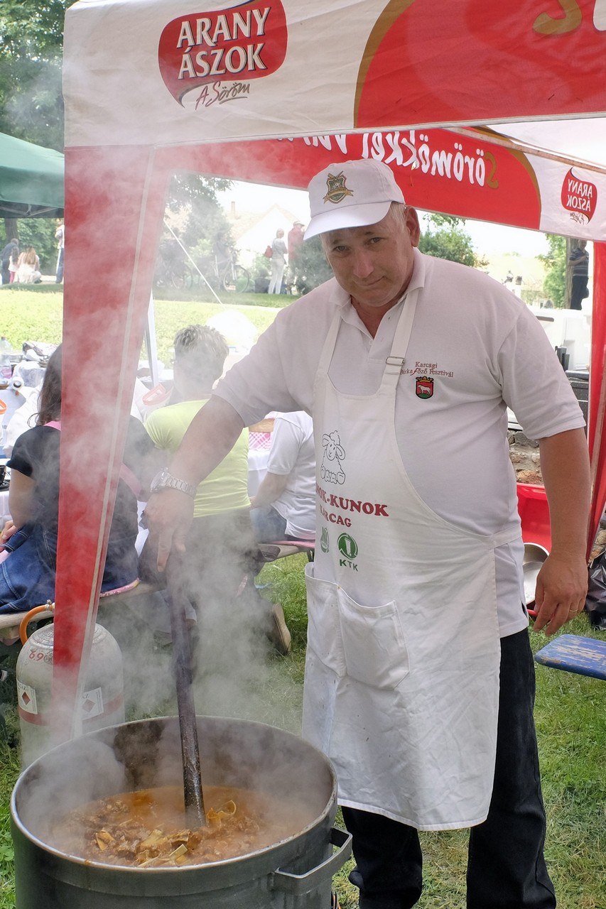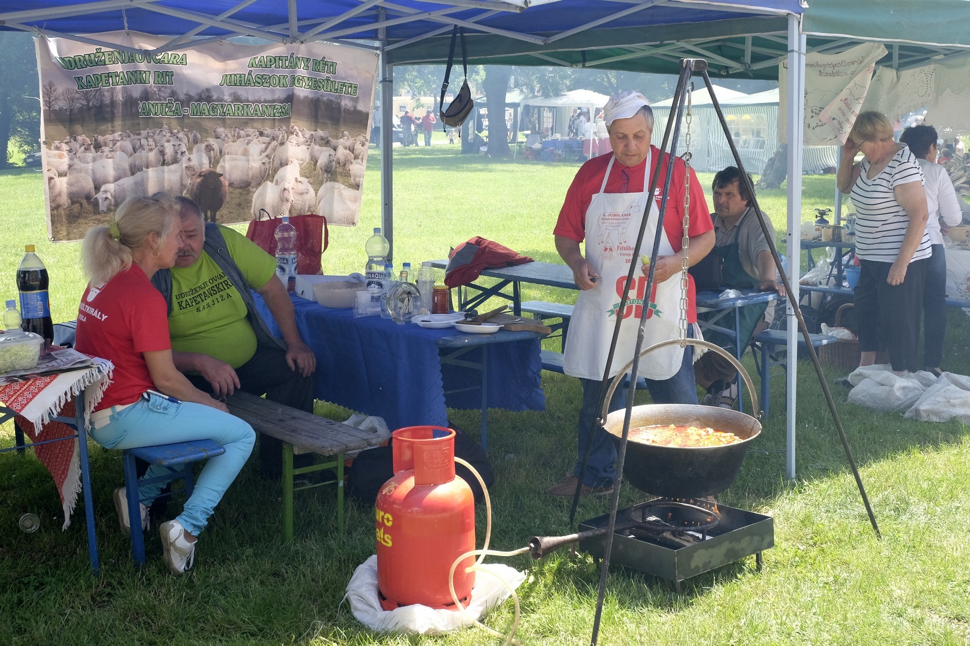 – Körülbelül húsz éve járunk versenyekre, azt mondhatom, hogy jó eredményeket érünk el. Van egy szobánk, ahol több mint száz serleg van. Az elején nehéz volt, de belerázódtunk, és azóta sikeresen csináljuk a versenyeket. Most egy báránypörköltet készítünk, ez egy bevált recept, megvan mindennek a rendje. Nagyon örülünk annak, hogy pont ma rendezik meg ezt a versenyt, elég sokat járunk Magyarországra főzni, most is szívesen jöttünk.