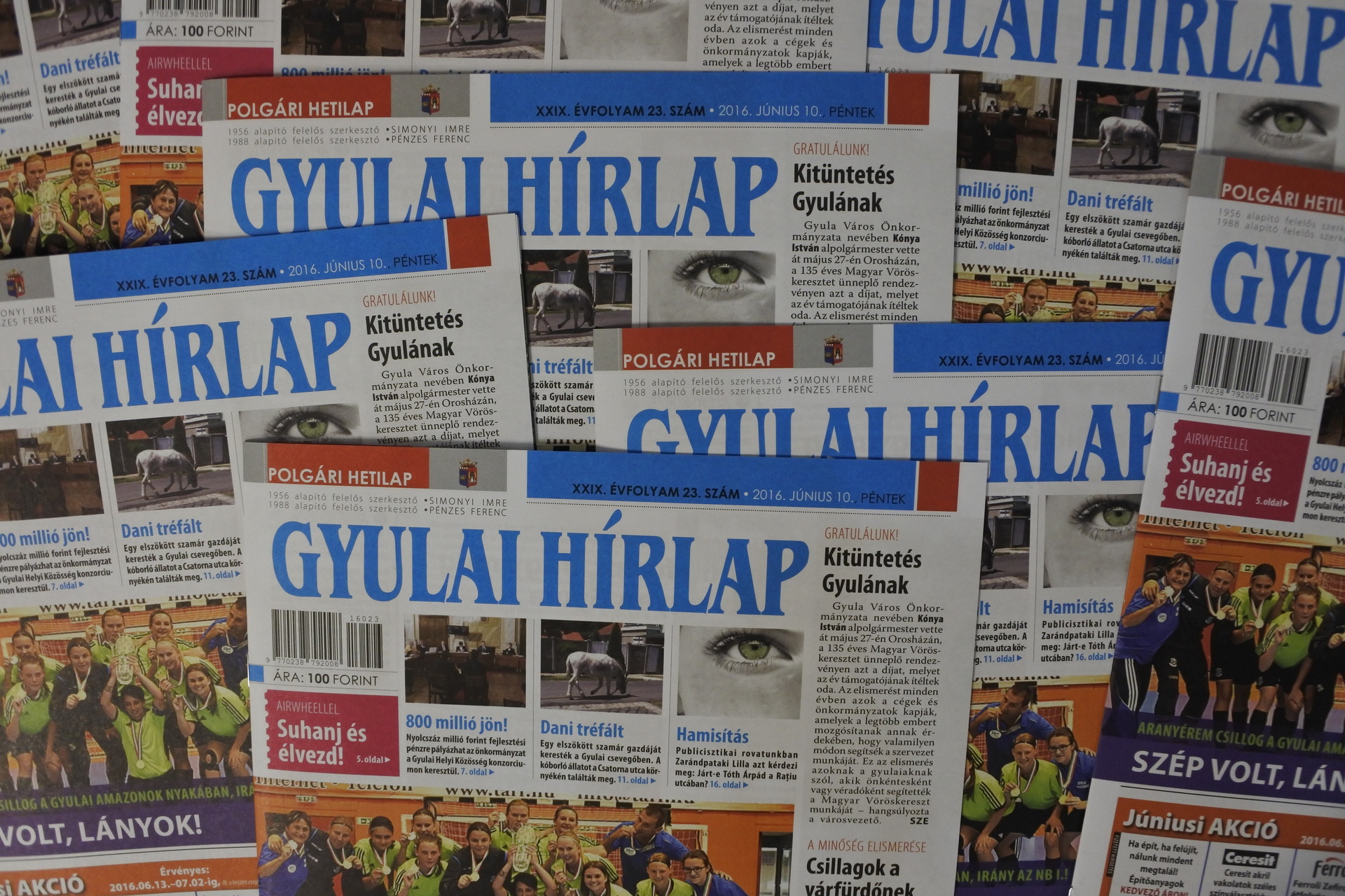 A Gyulai Hírlap legfrissebb száma 100 forintért megvásárolható szerkesztőségünkben (Gyula, Városház utca 20.), illetve az alábbiakban felsorolt elárusítóhelyeken: Volt V Nővérek (Szent István u. 32.), Tópart ABC (Pósteleki út 22/a), Híd utcai élelmiszerbolt (Híd u. 4.), Buszpályaudvari non-stop (Vásárhelyi Pál utca), Paradicsomi non-stop (Liliom köz), Reoma büfé (Várkert u. 1.), Szőlőskert ABC (Szőlőskert utca 16.), Kiss diszkont (Nagyváradi út 50.), Sarok ABC (Széchenyi u. 7/1.), Narancs ABC (Kazinczy út 1.), Kékszilva ABC (Dobozi út 14.), Vasútállomás újságos (Budrió 16. II/5.), Diófa ABC (Diófa u. 32.), Gabingo (Liliom köz), Élésker szupermarket (Kossuth Lajos tér 5.), Paradicsomi Élésker ABC (Temesvári út 173.), Budrió ABC (Béke sgt. 71.), Gyulavári COOP ABC (Széchenyi u. 53.), Nagyváradi úti COOP ABC (Nagyváradi út), Törökzugi COOP ABC (Budapest krt. 1.), Piaci lottózó (Honvéd utca), Idesüss Pékség (Tomcsányi utca), IQ Könyvesbolt (Kossuth tér), Kossuth téri Dohánybolt, Béke sgt.-i élelmiszerbolt (Béke sgt. 9-11.), Kórházi újságospavilon, Törökzugi Kiss ABC, Törökzugi dohánybolt, Buszpályaudvari újságos pavilon (Vásárhelyi P. u. 2.), Béke sgt-i újságos (Béke sgt. 12.), MOL kút (Csabai út 5.), Shell kút (Mártírok útja), Tesco (Csabai út), Interspar (Kétegyházi út).