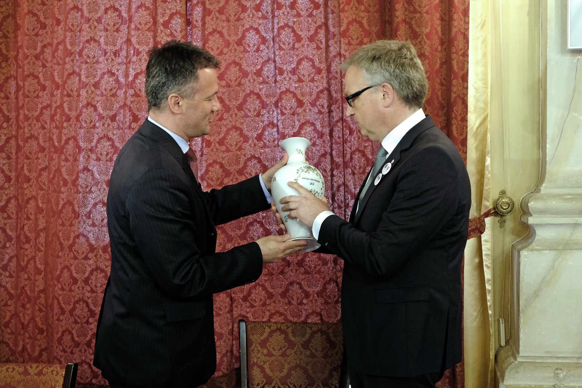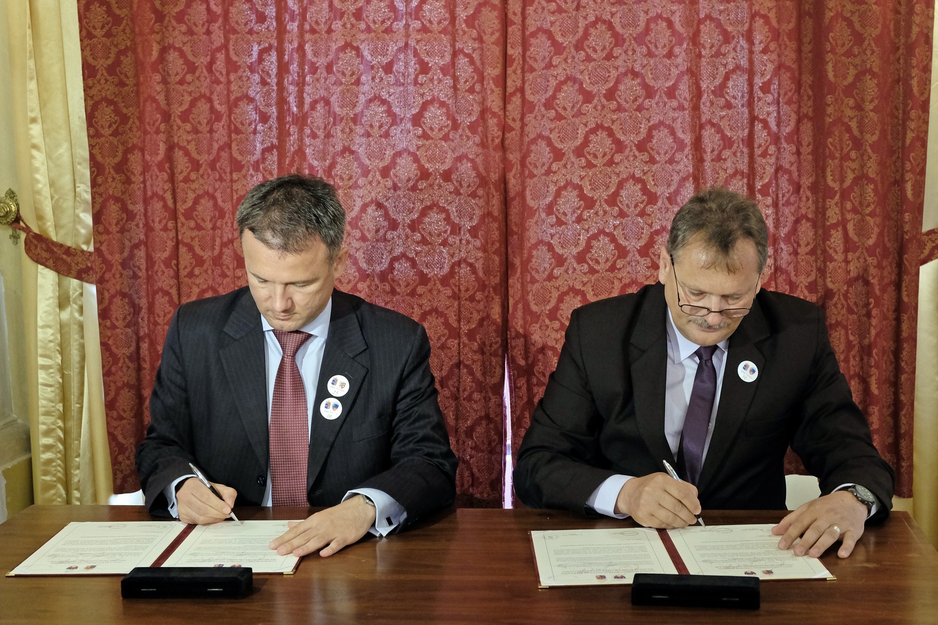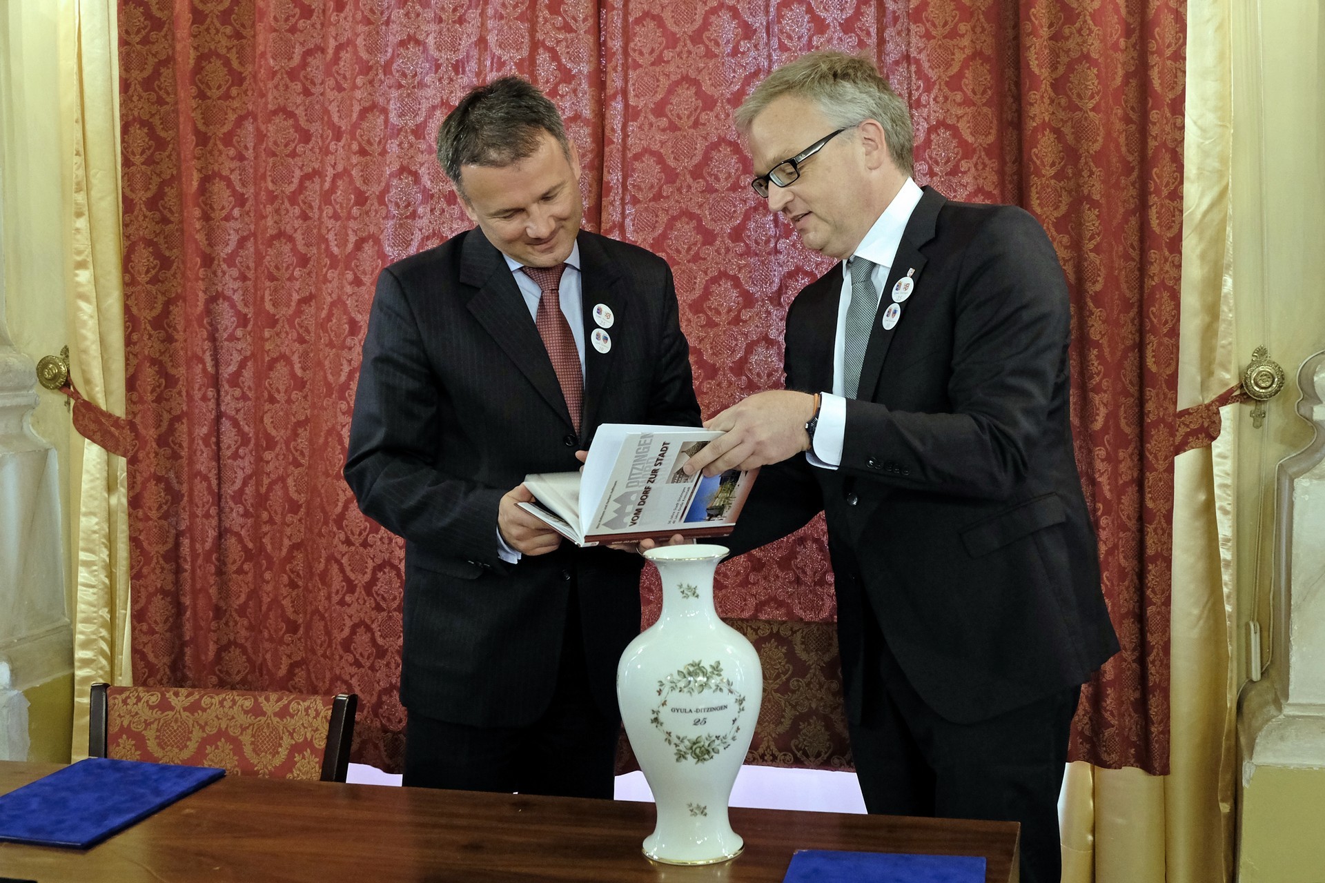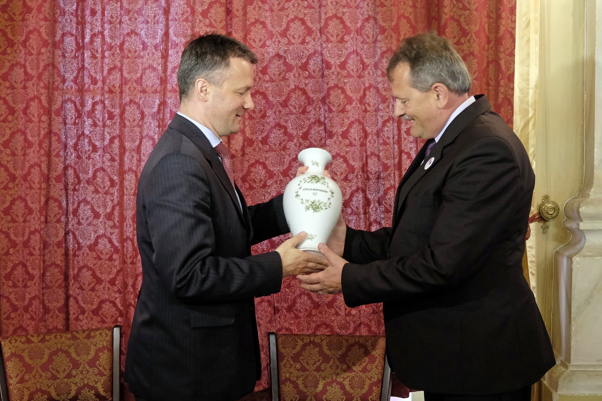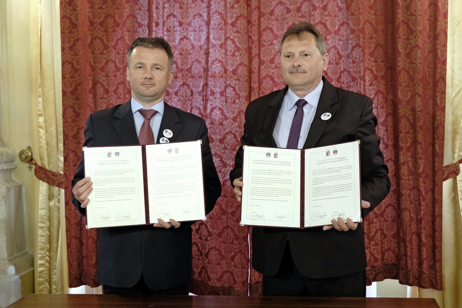 A jubileumi aláírás eseményét köszöntők előzték meg, közöttük az első dr. Görgényi Ernő polgármesteré volt. A gyulai városvezető gondolatait egy Cicero-idézettel kezdte: „Bárcsak olyan könnyen megtalálhatnám az igazat, mint ahogy cáfolom a hamisat”. Manapság talán nehezebb az igazság közelébe férkőzni, mint korábban, de van rá mód: valódi kapcsolatok kellenek hozzá – utalt a testvérvárosokkal való együttműködés fontosságára a polgármester.
