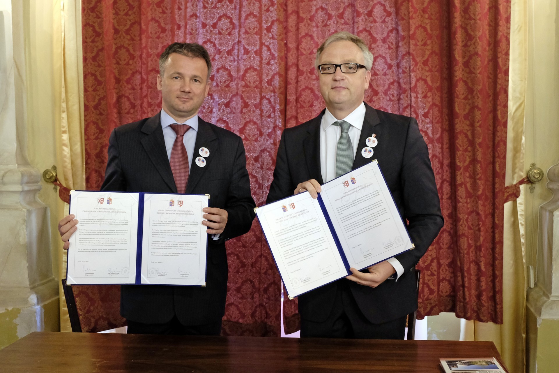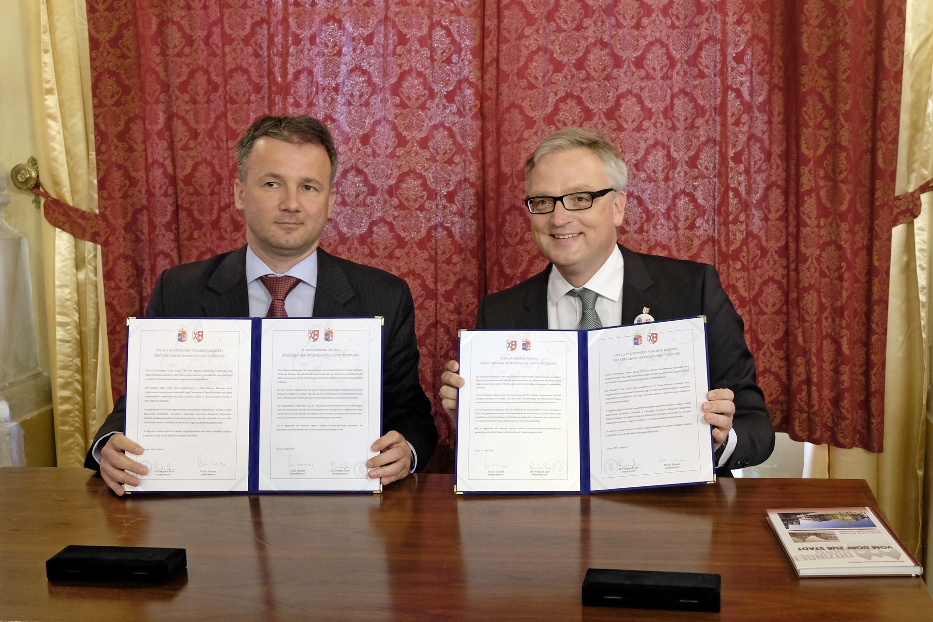 Az esemény a testvérvárosi szerződés ünnepélyes aláírásával folytatódott. Ditzingen városa e jeles alkalomból úgy döntött, hogy nem hagyományos ajándékot hoz magával, hanem helyette három gyulai egyesületet támogat. A Mi egy Másért Gyulai Gyermekekért és Ifjúságért Közhasznú Egyesület, az Összefogás a Sérült Gyermekekért Közhasznú Egyesület, a Békés Megyei Sclerosis Multiplexes Emberek Közhasznú Szervezete 500 eurót adományt kap szervezetenként.