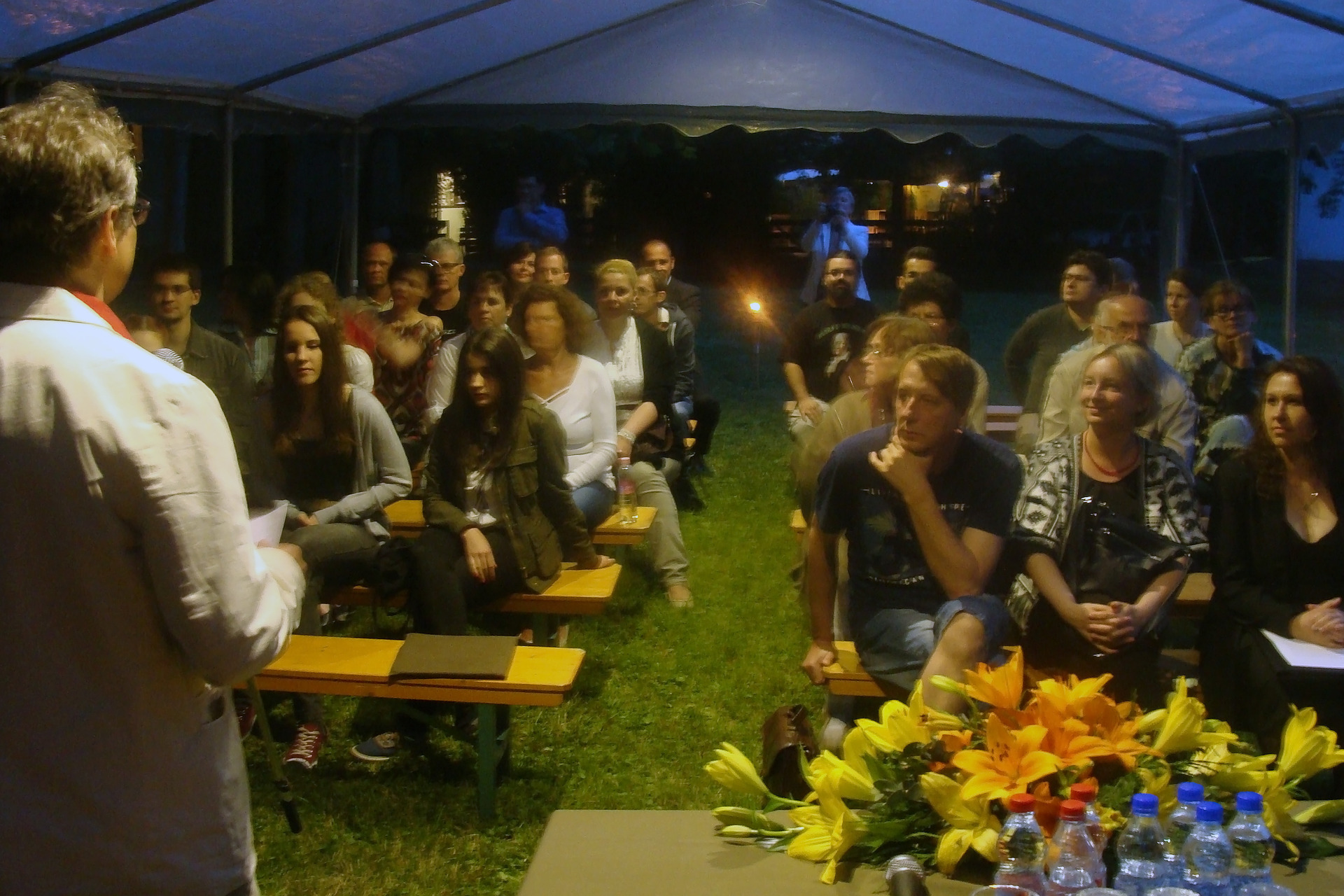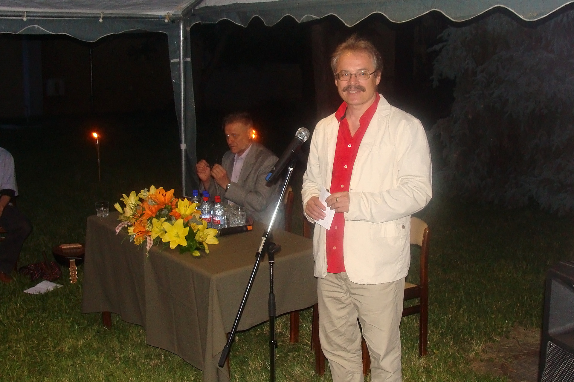 Irodalmi est a gyulai könyvtár kertjében