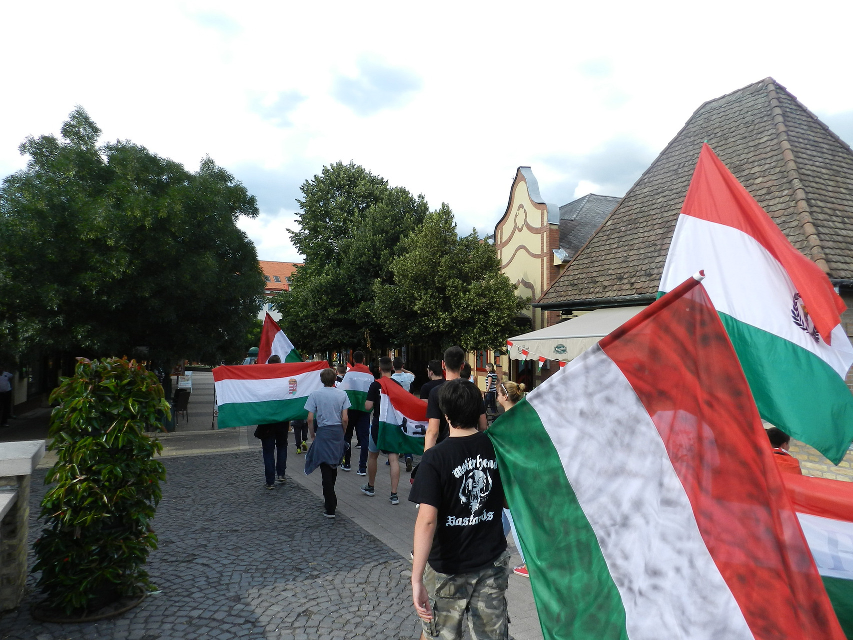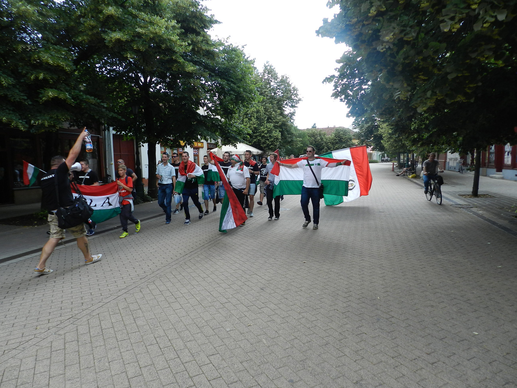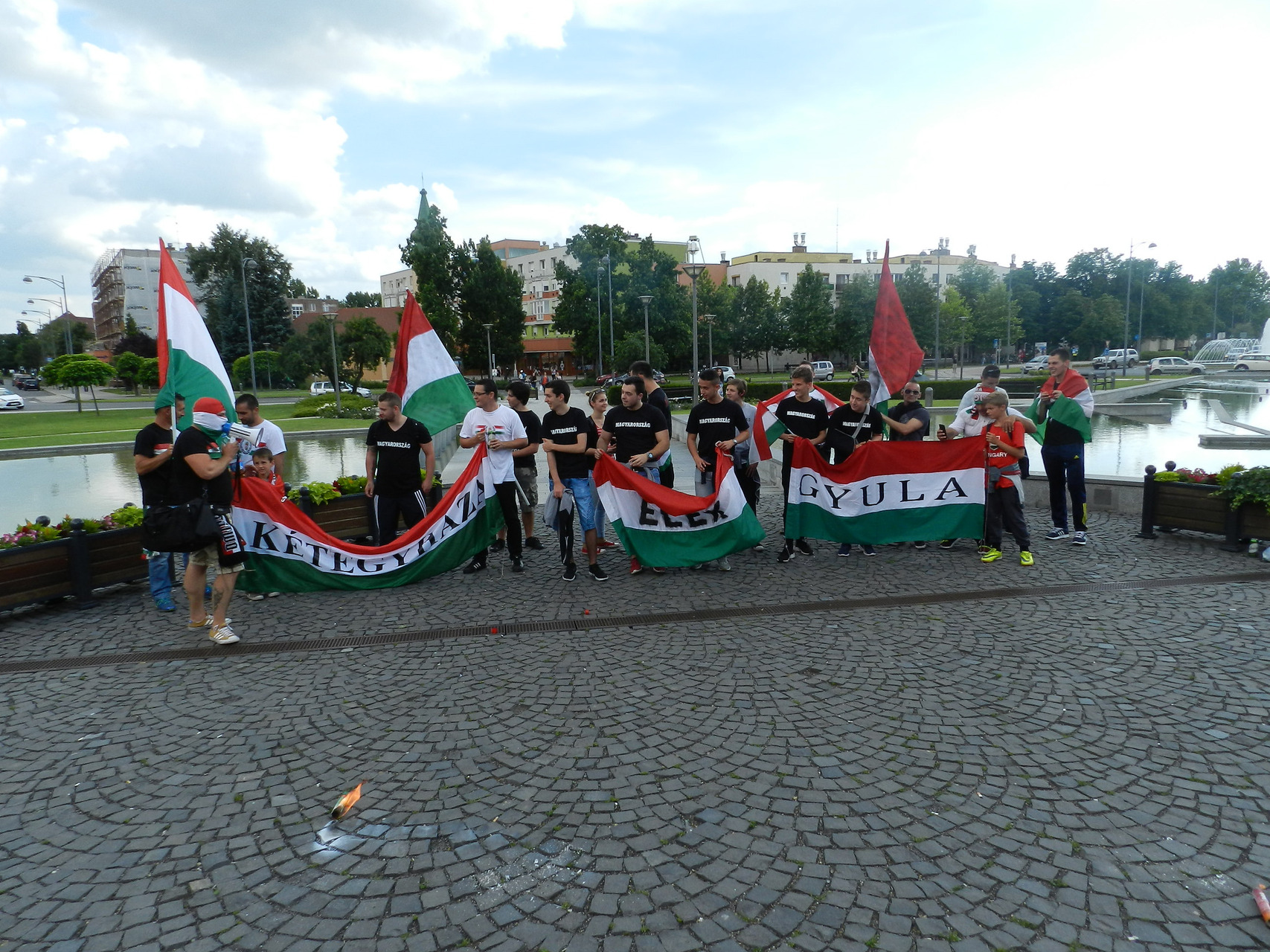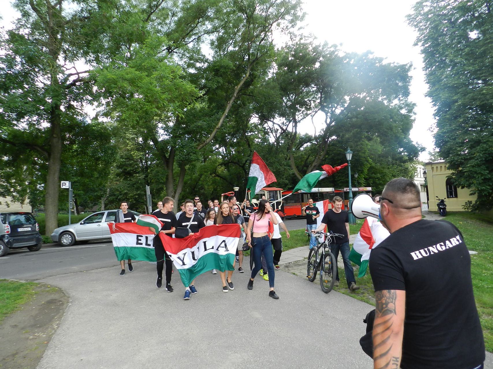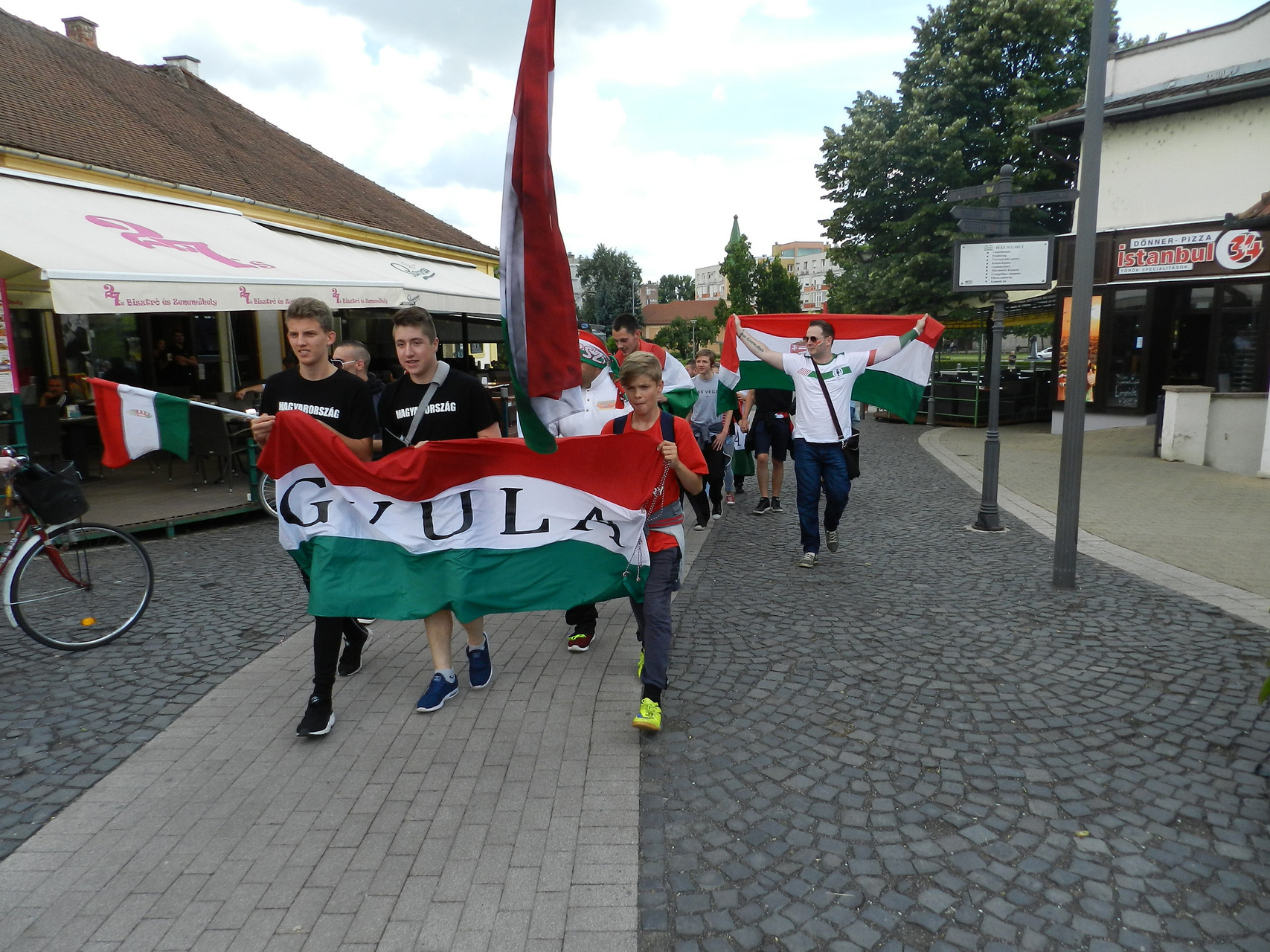 A közös élmény egy felvonulással kezdődött, ahol gyulai, eleki és kétegyházi szurkolók kezdték meg a hangolódást, valamint próbálták feltüzelni a város lakóit. A Kossuth tértől egészen a Rondelláig énekeltek, elhangzottak a legismertebb szurkolói rigmusok, és persze nem maradhatott el a válogatott hivatalos a dala, az „Éjjel soha nem érhet véget”. A Rondellánál már tömeg várta a felvonulókat, ahol a Himnusz elhangzása alatt nemzeti színű füstölőket gyújtottak a szurkolók, hogy még tovább fokozzák a hangulatot.