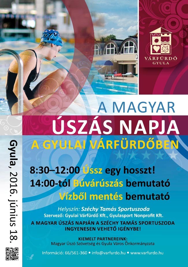 A Gyulai Várfürdő is több programmal várja vendégeit. Reggel 8.30-kor indul a rendezvény, az Ússz egy hosszt! elnevezésű programmal 12 óráig, majd 14 órától búvárúszás- és vízből mentési bemutatóval szórakoztatják a megjelenteket. A Magyar Úszás Napján a Széchy Tamás Sportuszoda ingyenesen vehető igénybe.