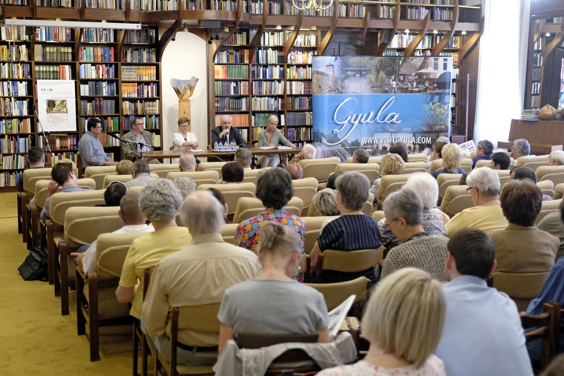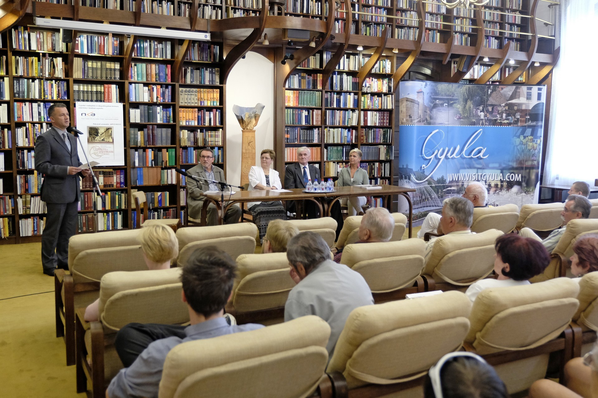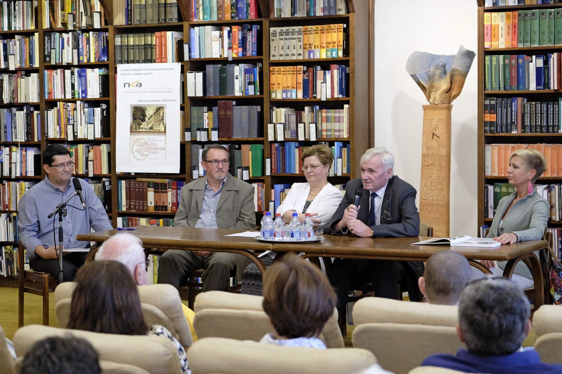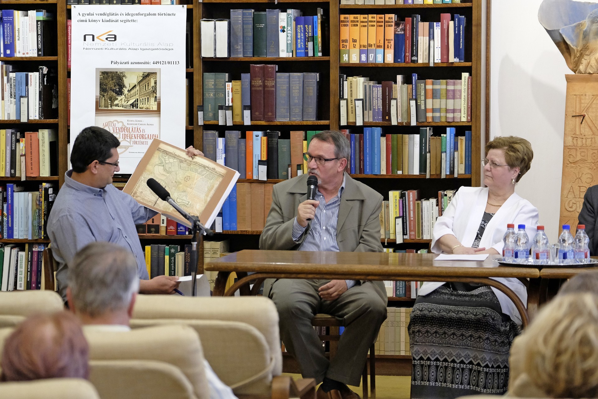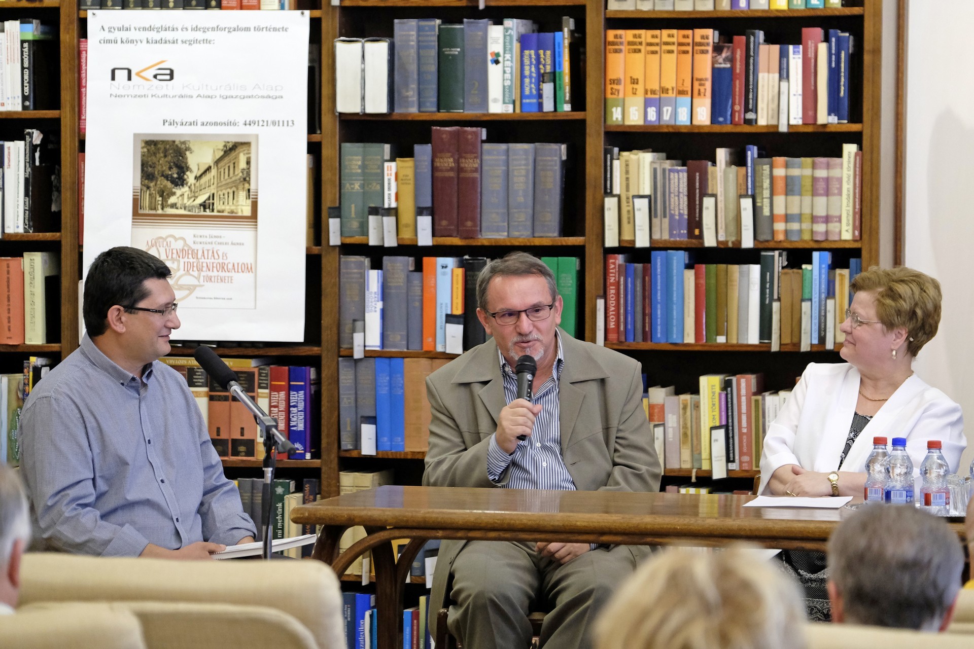 Kurtáné Cselei Ágnes és Kurta János (képünkön középen) könyvbemutatója a gyulai könyvtárban