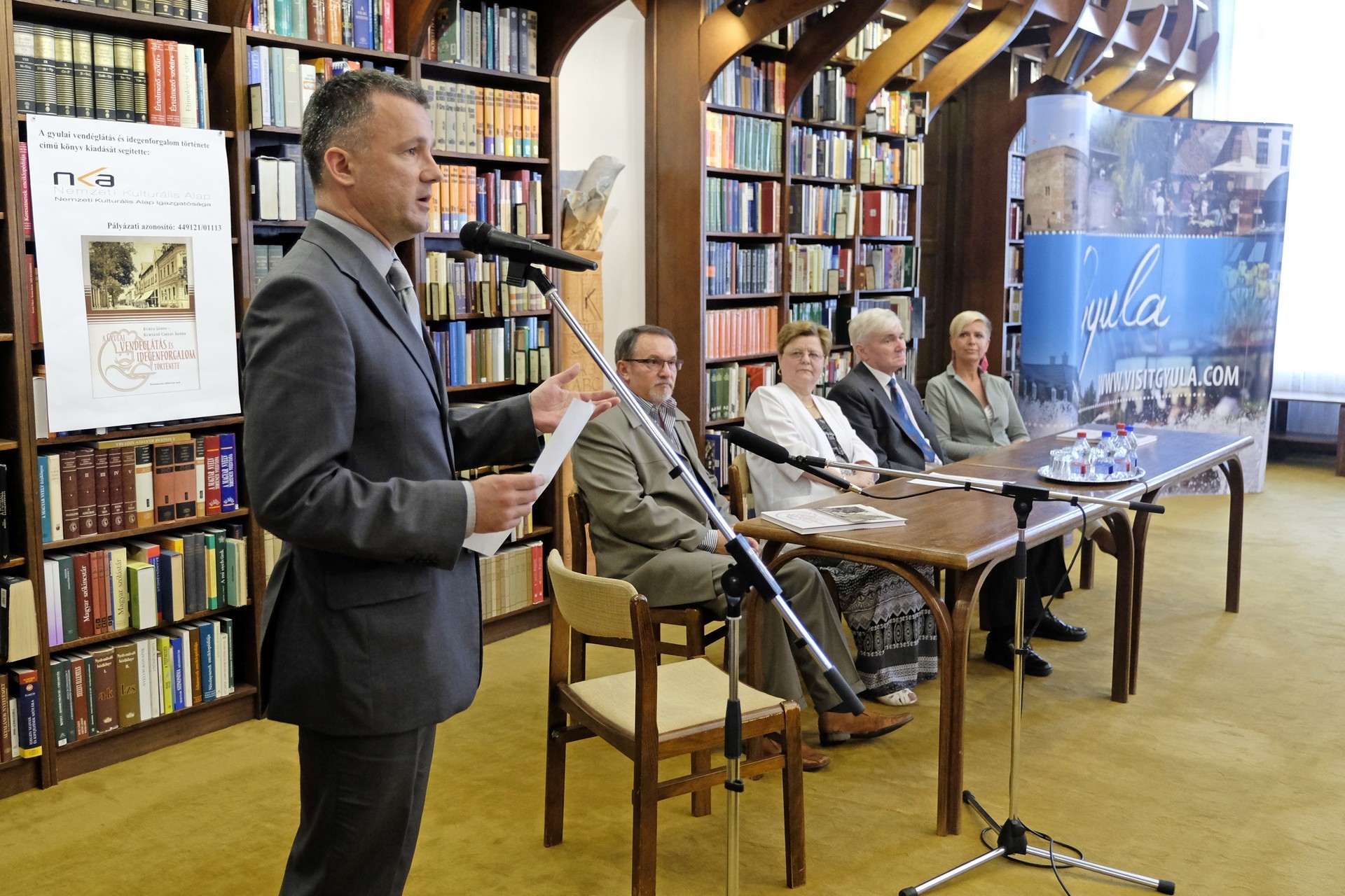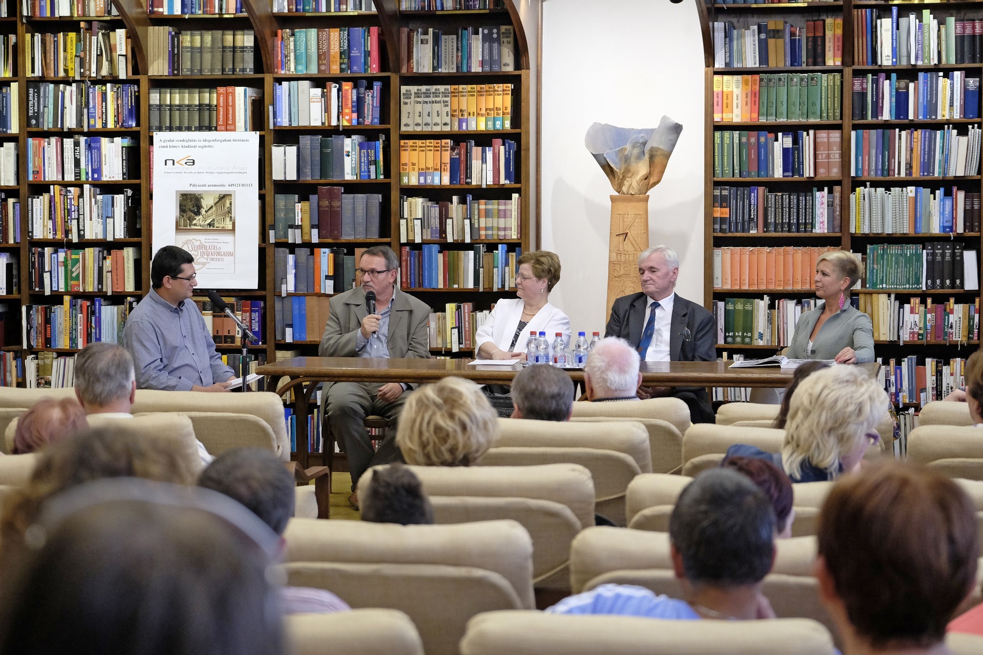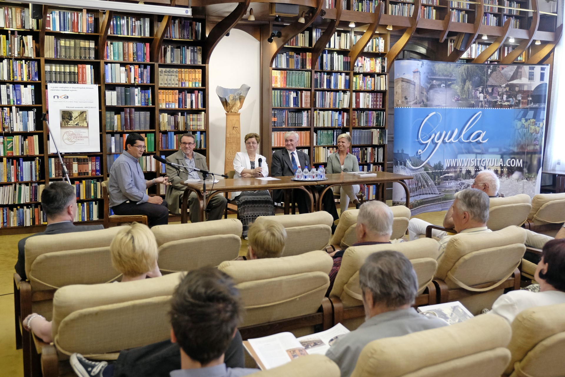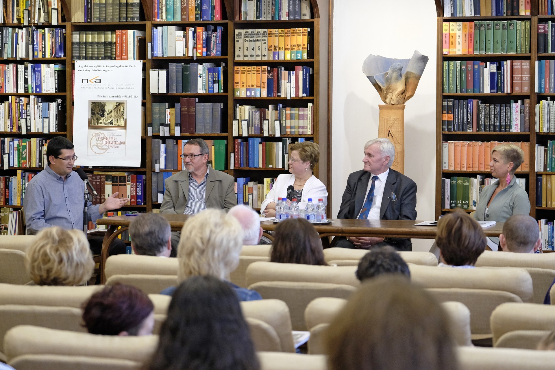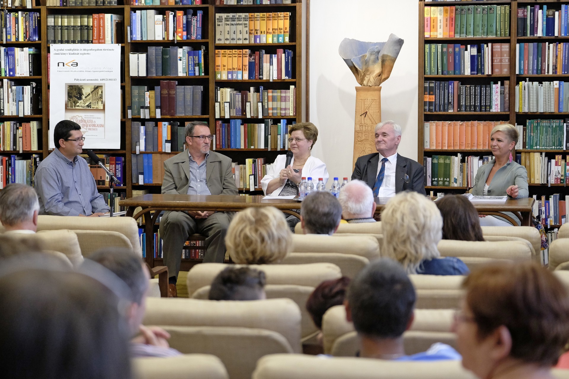 Kurtáné Cselei Ágnes és Kurta János (képünkön középen) könyvbemutatója a gyulai könyvtárban
