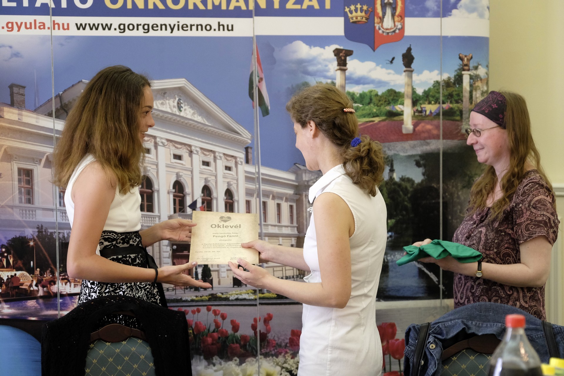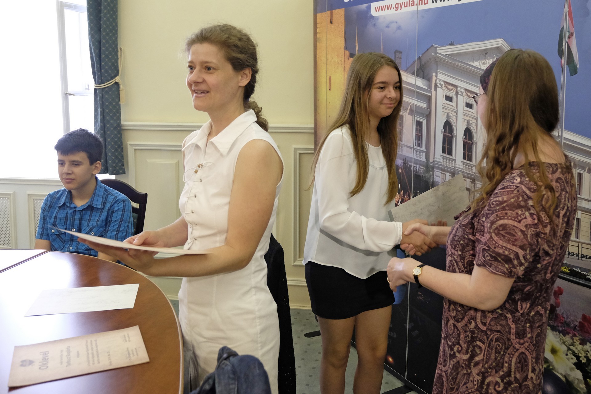 A bevezető és köszöntők után átadták az okleveleket és pólókat a diákoknak.