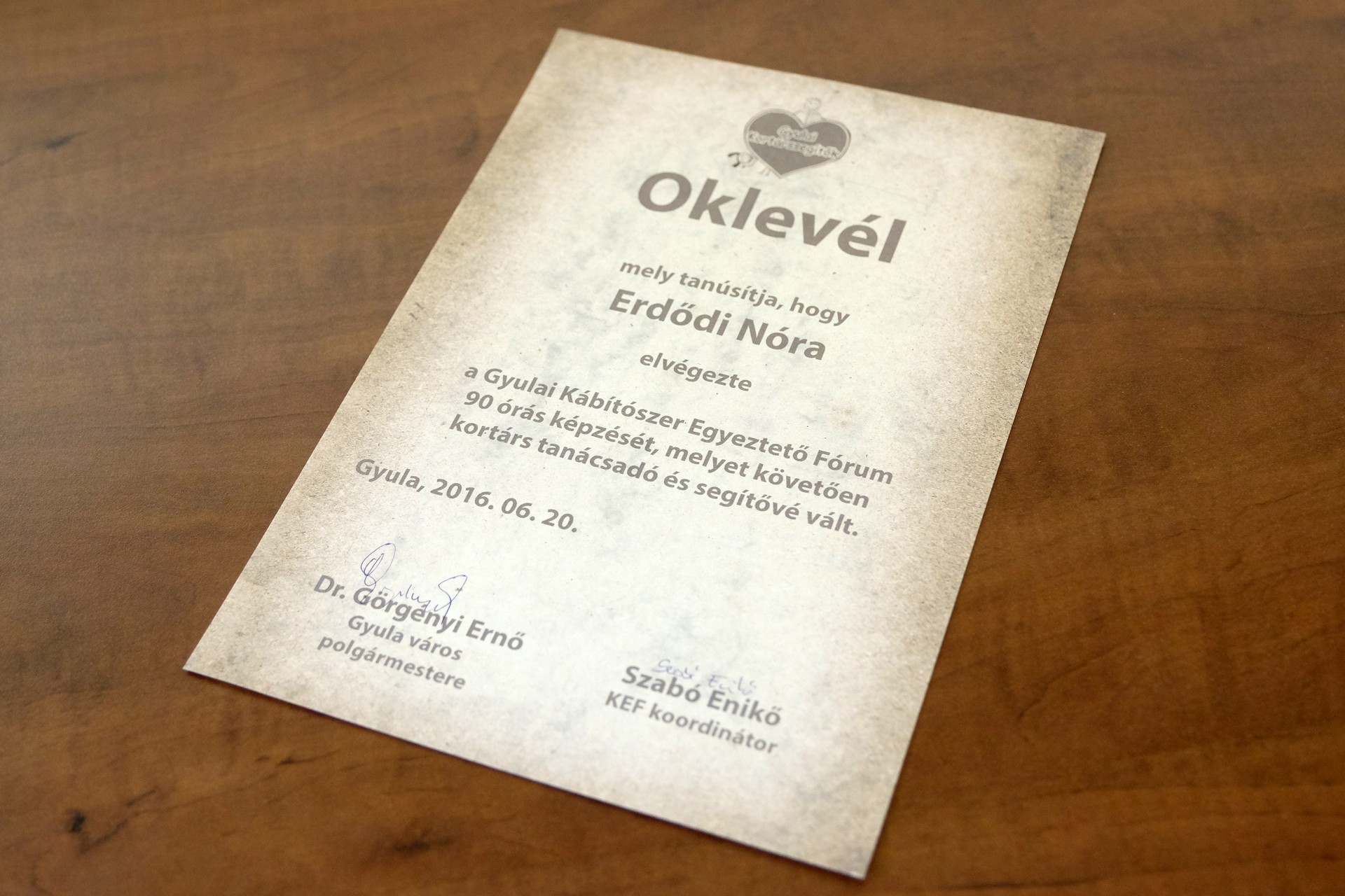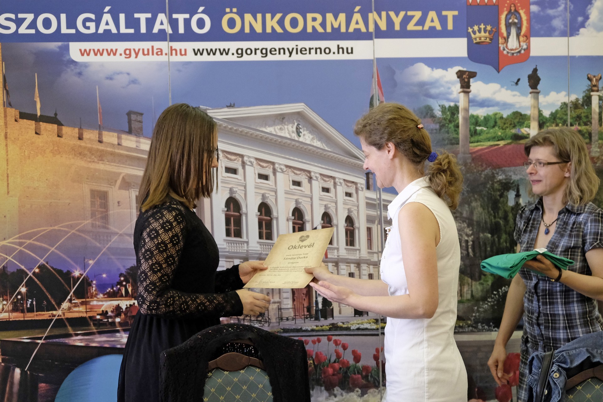 – 2007 óta ez az első csoport, amelyiknél nem este 19 óráig, hanem csak 18 óráig tartott a képzés, viszont az egészen tanéven átívelőn. Mindig el szoktuk mondani, hogy ilyen csoportunk még nem volt, és ilyen tényleg nem volt még, hiszen nagyon érettek, odafigyelők, folyamatosan visszajelzéseket adtak, és segítették egymást. Örömmel jöttek, és szinte soha nem kellett fegyelmezni őket. Csak megköszönni tudom nektek a munkátokat, illetve a szülők bizalmát, hiszen ránk bízták a gyermekeiket. Reméljük, hogy tudatos segítőkké válnak. Az első kiképzetteink már dolgoznak, van, aki segítőként és van, aki nem, de mindenki azt mondja, hogy az, amit nálunk tanult, azt a mai napig használja. Amikor megkérdeztük, hogy ki mit visz magával innen, akkor a legtöbben azt mondták, hogy olyan tudást, amit máshol nem kaphat meg – mondta Szabó Andrea.