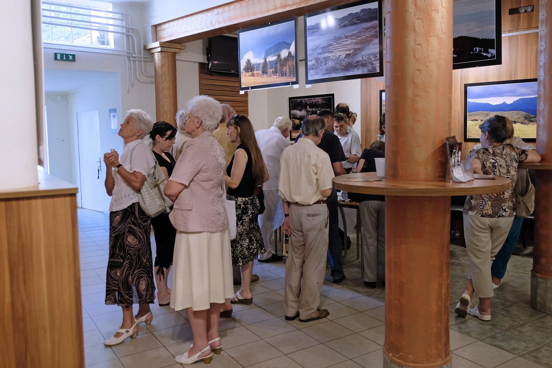 – Ahogy nézzük ezeket a képeket, különleges érzés kerít hatalmába – mondta megnyitóbeszédében –, más dimenzióban látjuk ezeket a hegyeket, templomokat, településeket, melyek e távolságból nézve is megejtő intimitásúak, a képek pedig az el- és kimondhatatlant is átadják az azokat megtekintőknek.