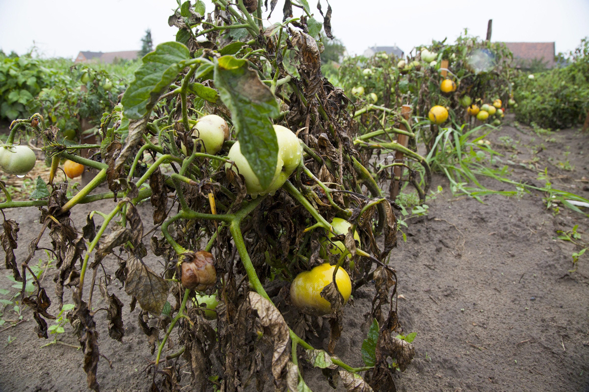 A paradicsomokban erőteljesen jelentkezik a legveszélyesebb betegségük, a paradicsomvész (fitoftora). Sajnos az időjárás is kedvez a fertőzésének. A beteg részek eltávolítása után a réztartalmú szerek valamelyikével permetezzünk – a talajfelszint is! A leszedett betegrészeket ne tegyük a komposztra, mert erősen fertőző! Amennyiben van tűzelhalásos águnk, hajtásunk, úgy azzal együtt elégethetjük, mert azt lehet.