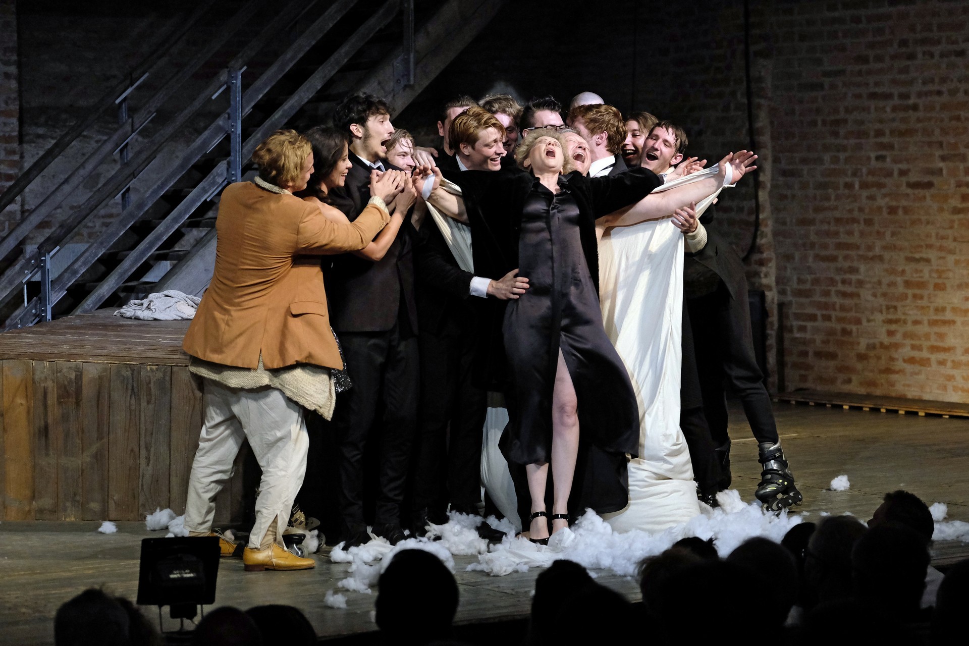 Richárd fokozatosan ébred rá arra, hogy a maró gúny és lekezelő modor ellenére, valamiért mégis kezdi megszeretni az udvar, és talán ez az a pont, ahol már a királyi cím megszerzése a célja. A darab végén egy oszlopot megmászva helyezi saját fejére az addig mindenki fölött lógó koronát, ellensúlyozva az addigi játékát, jelezve, hogy már mindenki felett áll. Ezüstszínű szalagot teker magára mindenki páncél gyanánt, készülve az utolsó harcra. A színészeket hátulról világítják meg, és elered a színpadon az eső. A végkövetkeztetés marad: a hatalom rettentően veszélyes dolog, amelybe akár bele is őrülhet az ember és nem lehet bűn nélkül maradni. Erre utal a többször elismételt mondat is: elköveti majd a fia is, és az ő fia is, és az ő fia is, és így tovább.