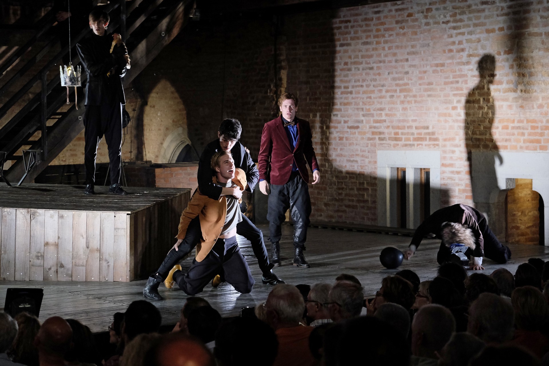 Hegedűs D. Géza három különböző szerepben is feltűnik, és mindegyikben erős alakítást nyújt, egyben az ő jelenetei adják a darab humorforrását is. Richárd két bérgyilkosa (Gyöngyösi Zoltán és Lestyán Attila) az áldozat, George herceg előtt mérlegelik, hogy mik az esélyeik a terv megvalósításában, amelyet a halálraítélt nyugodtan fogad. Halála után, szinten azonnal színt váltunk, és a holtan összeeső herceg, már Edward királyként kel fel. A király parancsba adja a szembenálló feleknek, hogy béküljenek ki, újra és újra elismételtetve velük a mondandójukat, és parancsba adja, hogy fogjanak kezet, esetleg csókolják meg egymást.