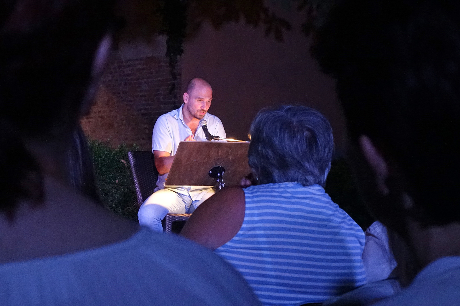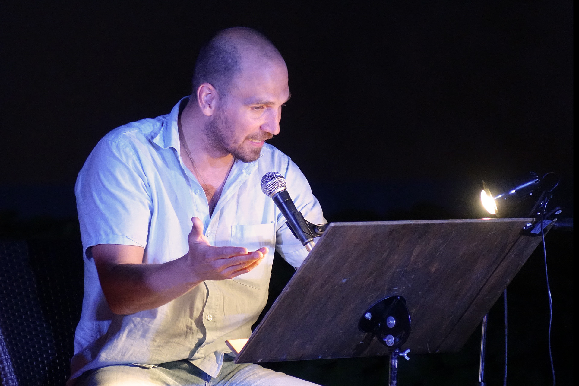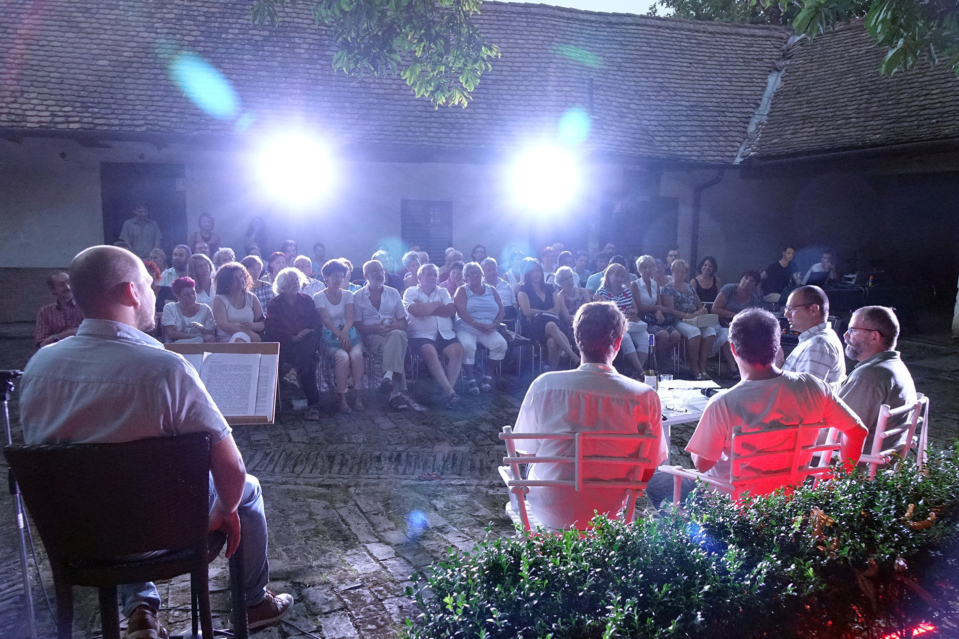 Az eseményen egyedül a borkóstolóban felszolgált nedűk vendégeskedtek városunkban. A száraz fehér pannonhalmi tricollis kortyolgatása közben Simonyi Imre és Krasznahorkai László hangja köszöntötte a jelenlévőket. Az est műsorvezetőjétől, Fodor Györgytől megtudtuk: a találkozót egy közös kovásznai buszutazáson álmodták meg a szervezők. Hagyományteremtő célzattal, ugyanakkor egy régi szokás felélesztéseként, hiszen a Ladics-ház korábban számos alkalommal adott otthont irodalmi esteknek. Ezúttal a Bárka-díjas Becsy András, a József Attila-díjas Kiss Ottó és a szintén Bárka-díjas Kiss László műveiből hallhattunk részleteket a Gyuláról el- és visszaszármazott színművész, Beszterczey Attila közreműködésében.