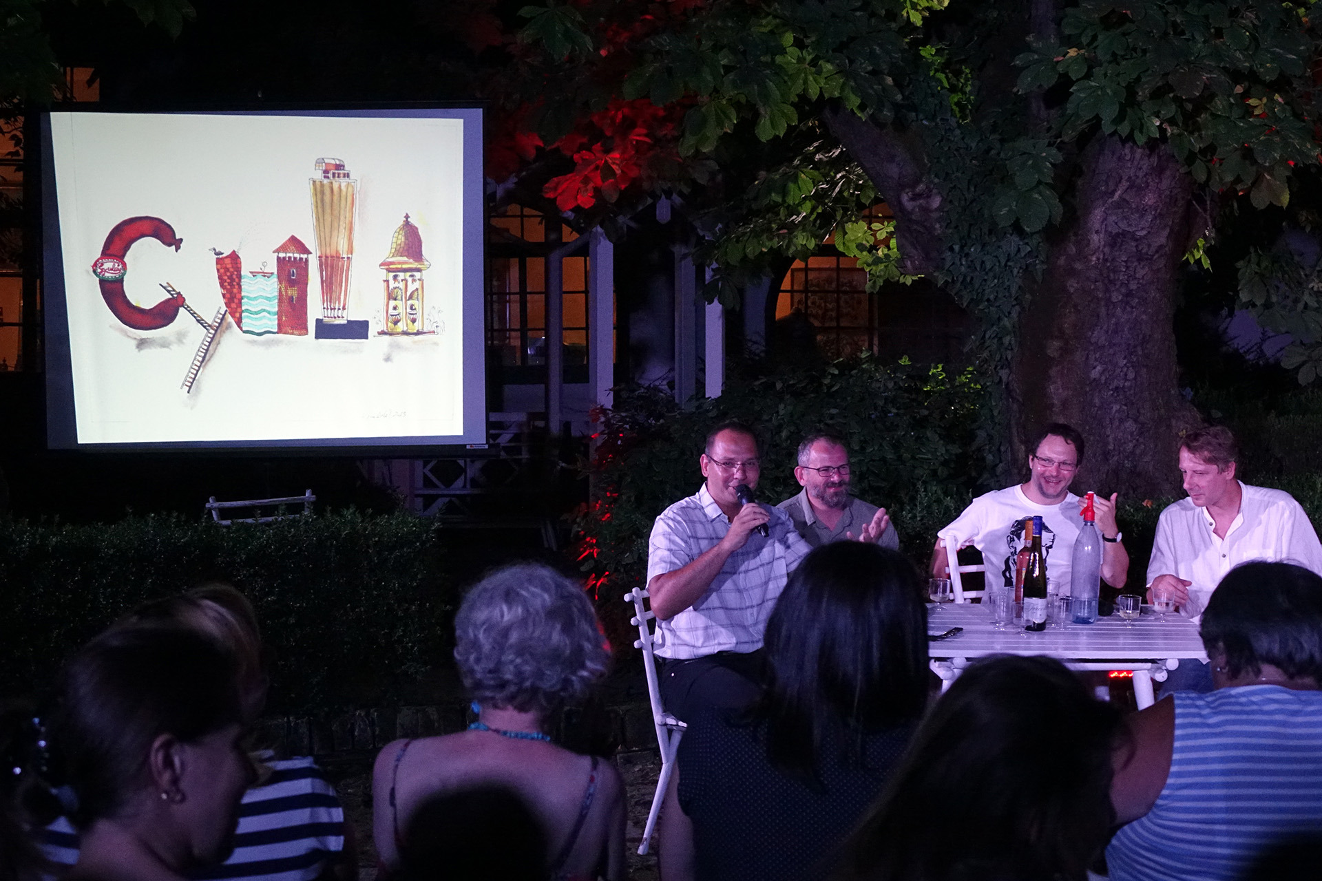 A központba állított – majd leültetett – írók gyulaisága alaposan különbözik. A saját bevallása szerint „jöttment” Kiss Ottó 35 éve él Gyulán, de szülővárosához, Battonyához erősebb a kötődése. Kicsit még mindig idegennek érzi magát Gyulán, a városhoz fűződő szeretete akkor csúcsosodik ki érezhetően, amikor valahonnan hazajön. Kiss László – akinek már Szegedből is Gyula hiányzott – úgy fogalmazott: „nem élem meg a gyulaiságomat, mert folyton megélem a gyulaiságomat. Én annyira benne vagyok ebben a közegben, hogy nem nagyon látom kívülről Gyulát. Ezért, amikor elutazom valahová, elviszem magammal a várost.” Becsy András Gyulán nőtt föl, jelenleg Szegeden lakik. Családjának rendszeresen és lelkesen mutatja be gyermekkori emlékeinek olyan helyszíneit, amelyek kedvesek számára. Bánja, hogy nem itt él. Költői képnek is beillően fogalmazott: „csak a gyulaiak nem tudják, hogy a Gyulai májas egy finom étel, egy különleges unikum”. A konyári rosé megkóstolása előtt az író Egyik című költeményét hallhattuk.