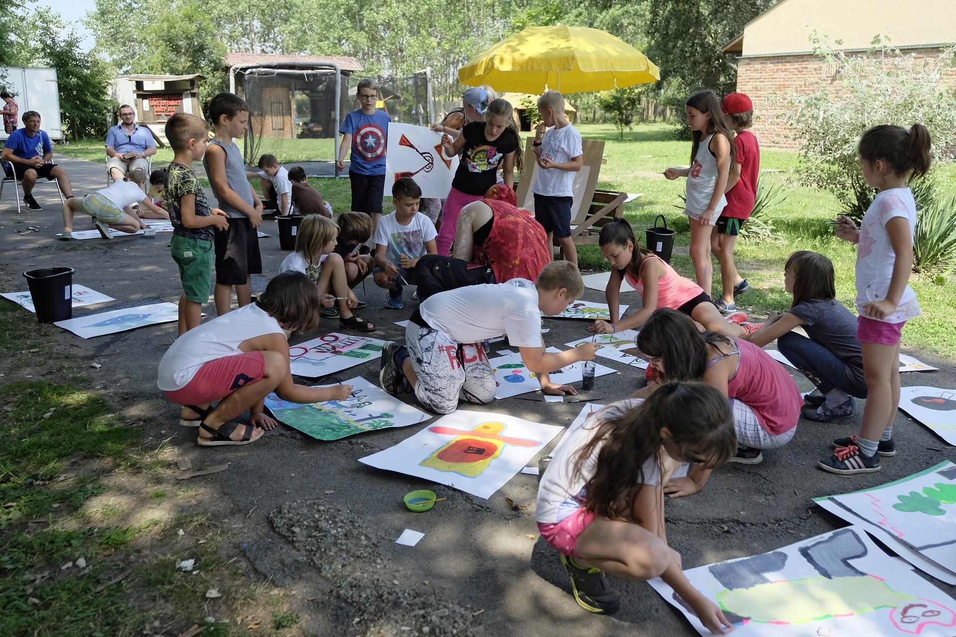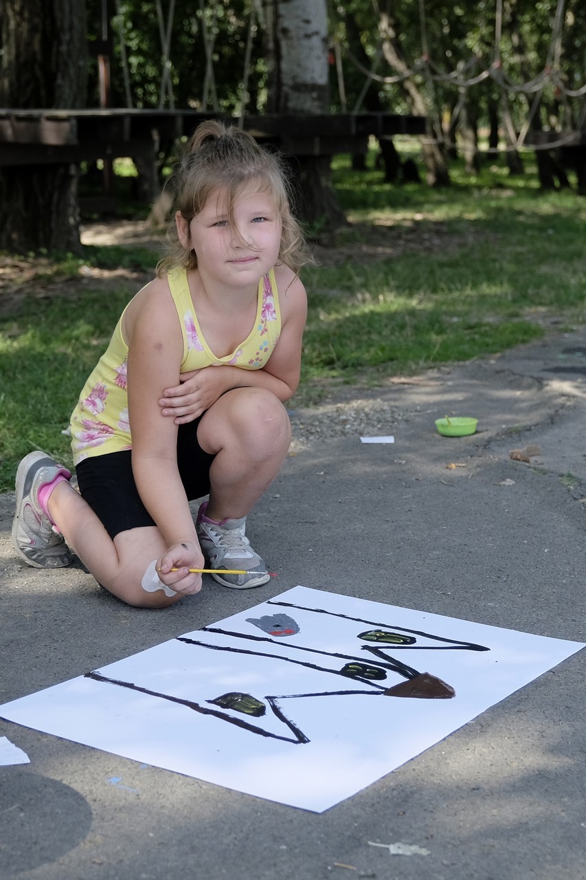 – A kicsik számára ezúttal a szerencse határozta meg, miket kell festeniük. Sorsot húztak és az alapján derült ki, milyen állat fejét, testét, vagy farkincáját kell megrajzolniuk – részletezte a program lényegét Bajóné Aradszky Anett, a tábor egyik vezetője.