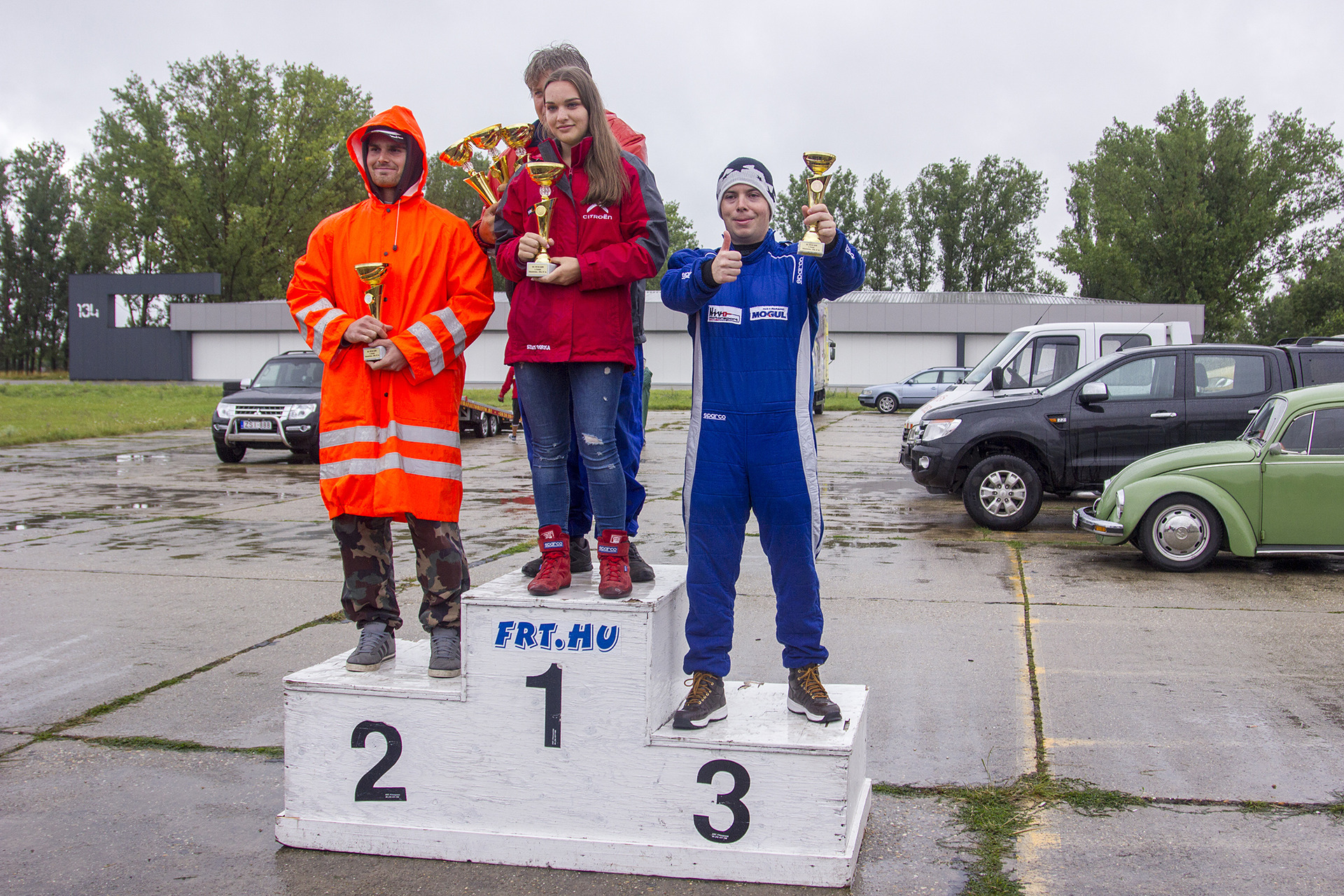– Július 16-án szombaton rendezték meg az FRT.HU Kupasorozat negyedik versenyét a kiskunlacházi repülőtéren. A szeszélyes időjárásnak köszönhetően nem hétköznapi futamnak nézhettünk elébe. Egész nap szakadó eső áztatta az aszfaltot, a pálya nagyobb részén több centis vízréteg is kialakult, az évszakhoz képest hideg időről nem is beszélve, gumimelegítésre esélyem sem volt, mivel a víz azonnal visszahűtötte. A szerelőimmel közösen leküzdöttük a körülmények által okozott kisebb-nagyobb problámákaz, és egy nagyon szoros versenyben ismét megszereztem a dobogó harmadik fokát. Végig szoros volt a küzdelem az első helyért, ez meglátszódott minden mért körben, nagyon közel voltunk egymáshoz. Közben a technikai problémáknak köszönhetően lecsúsztam a harmadik helyre, de századkülönbségekkel a negyedik helyen állók is közelítettek felém. Az utolsó javító körömnek köszönhetően, egy század előnnyel én kerültem a dobogóra. Ennyire szoros küzdelemre a versenyzői pályafutásom alatt még nem volt példa. Nagyon örülök, hogy végül kedvezően alakult a verseny számunkra.