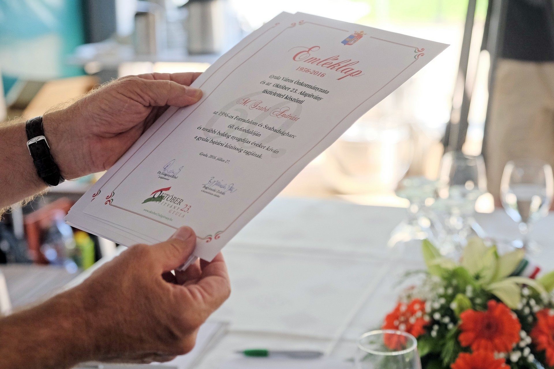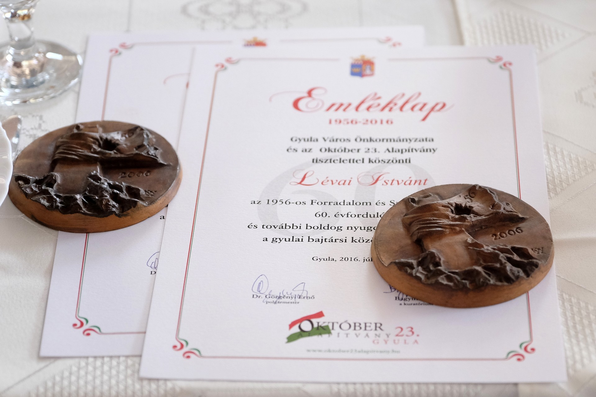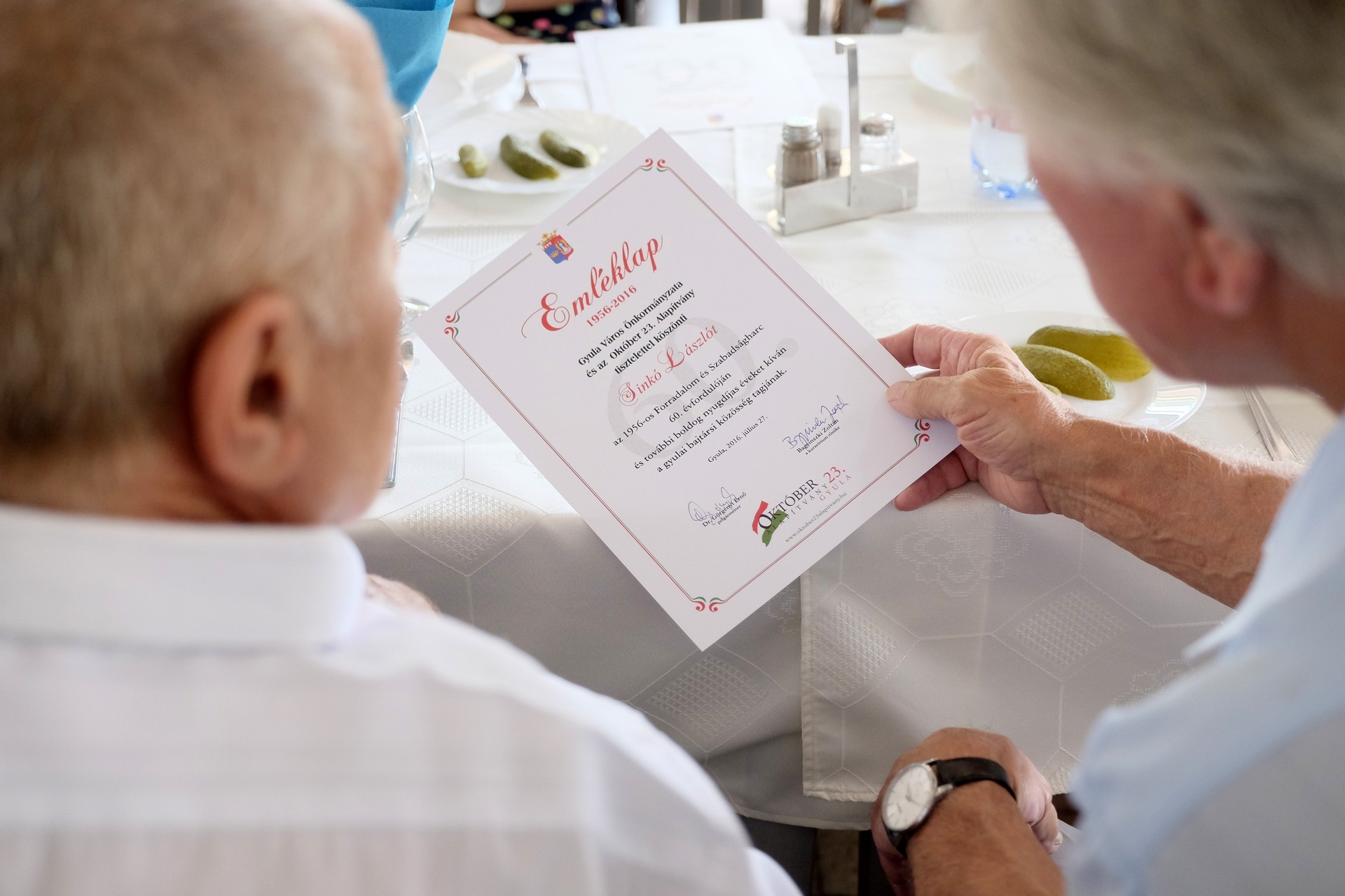 A rendezvényen emléklappal és plakettel köszöntötték a gyulai 56-osokat