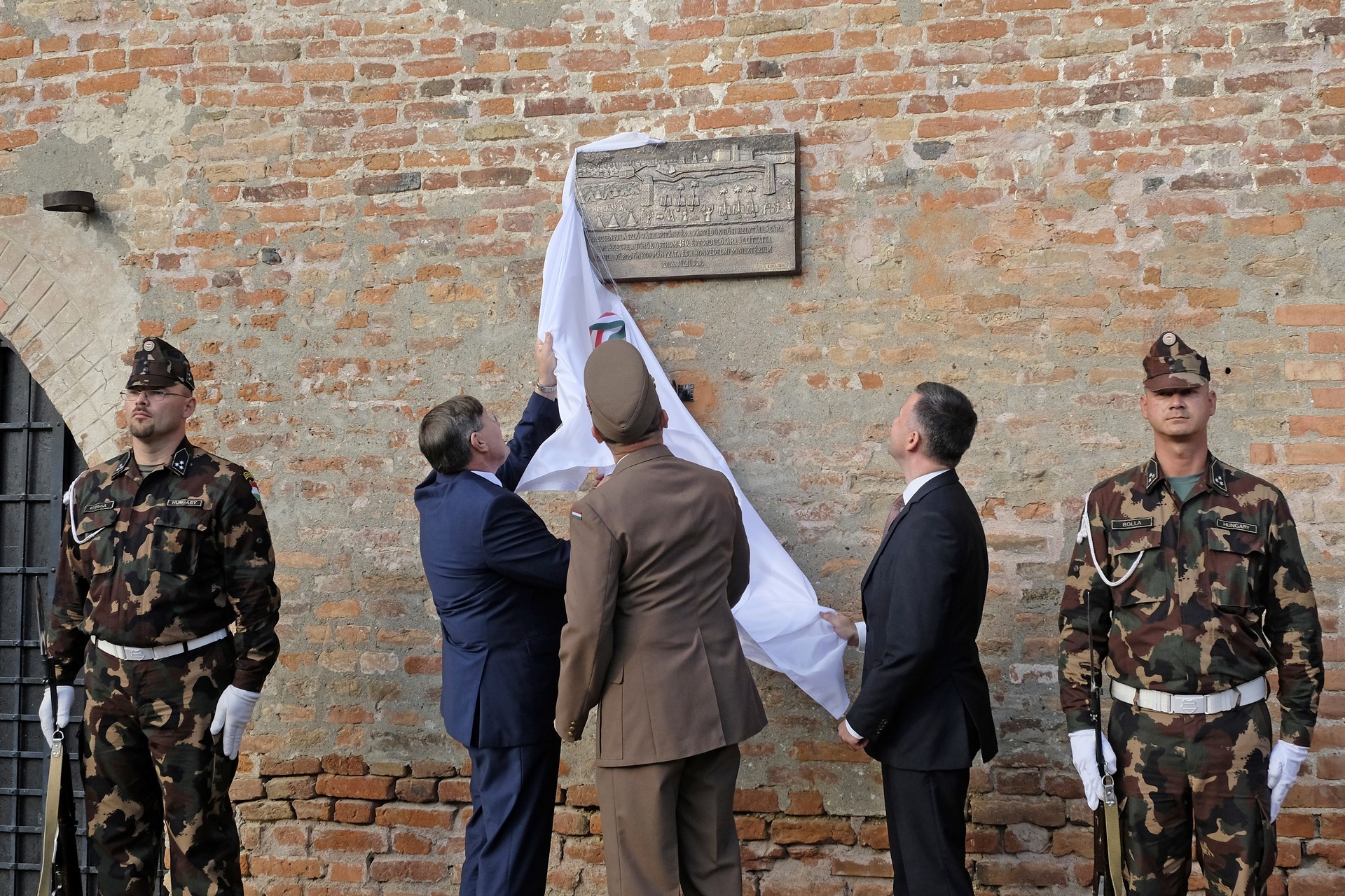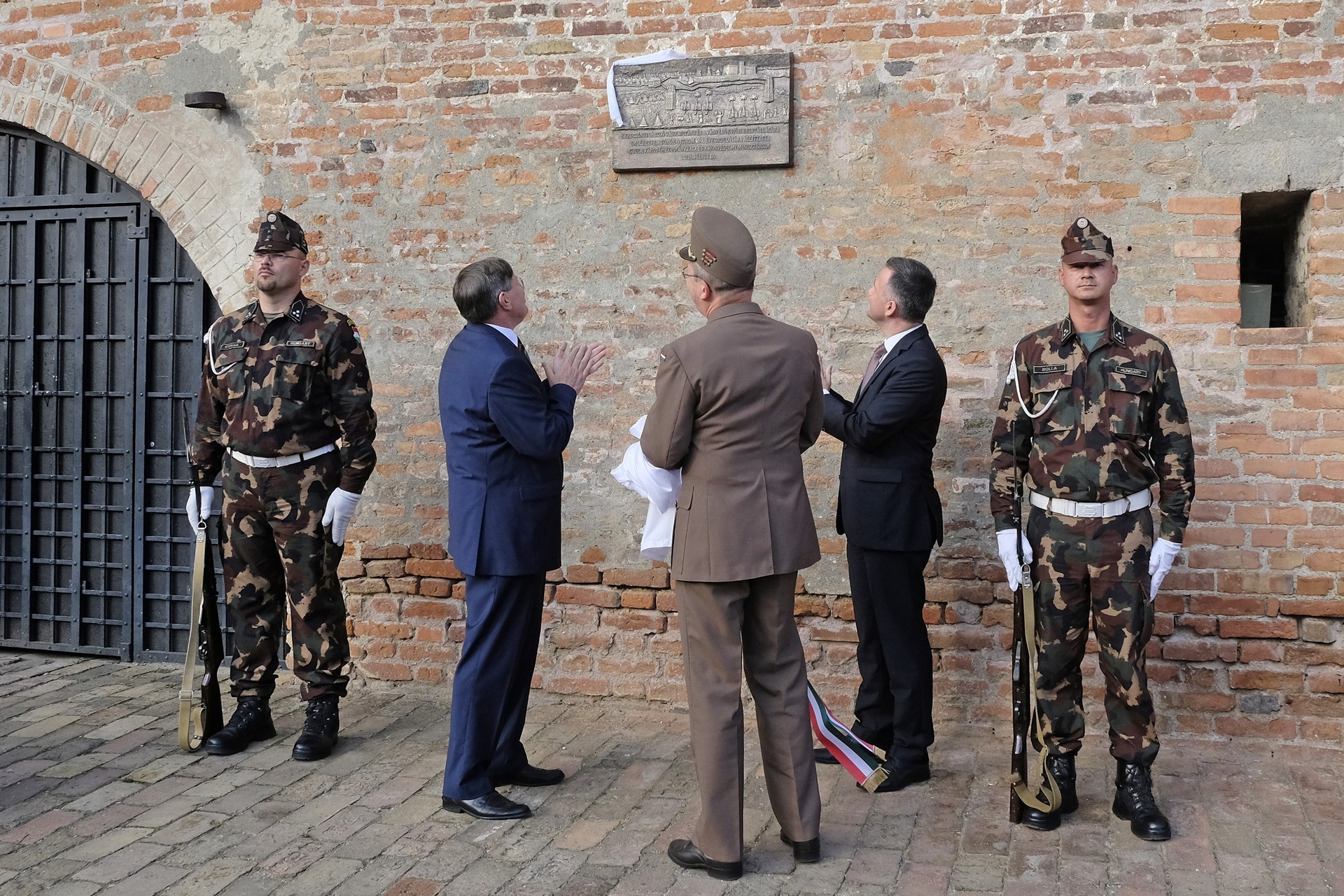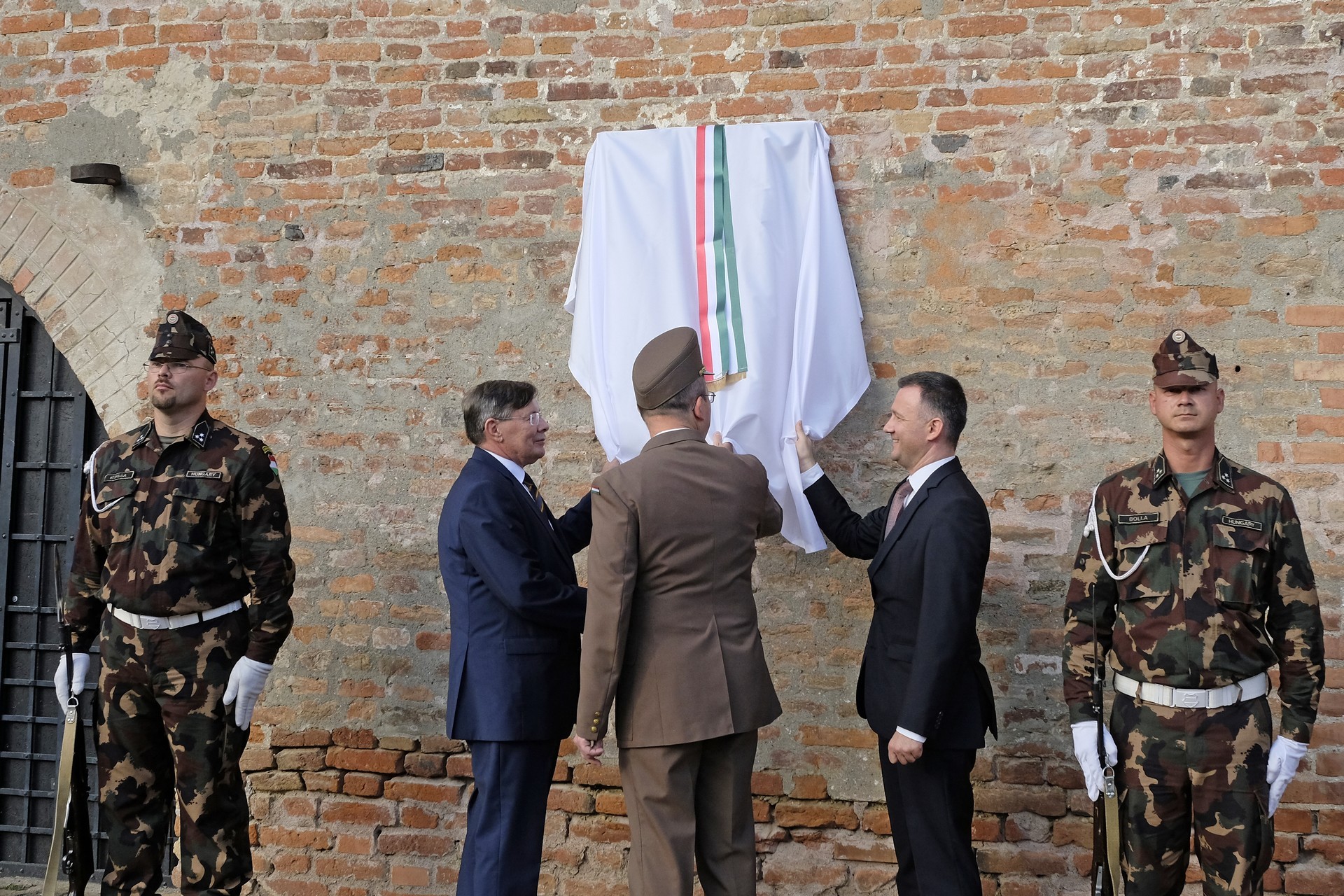 A köszöntőbeszédek után dr. Görgényi Ernő, dr. Hóvári János és dr. Téglás Gyula leplezték le az emléktáblát a vár falán. Az ünnepség végén, az emlékezés jegyében a város önkormányzata és gyulai szervezetek helyeztek el koszorúkat a táblánál.