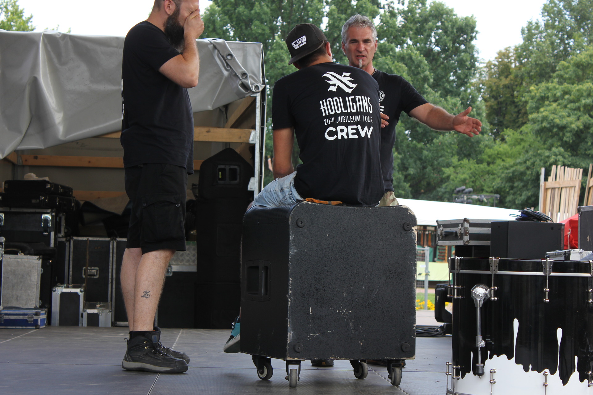 – 18-an vagyunk a Hooligans tagjaival együtt – árulta el a színfalak mögött lapunknak Maszler László, a csapat menedzsere. – A minél élvezetesebb koncert érdekében több LED-fallal érkeztünk, de a délutáni órákban még a zenekarnak nem kell megérkeznie. Felállítjuk a színpadot, a „roadzenekar” beáll a hangszerekkel, és a fellépők csak az esti koncertre érkeznek majd meg. Most épp egy teherautónyi eszközt várunk, ami elég nagy késésben van, de mindig számolunk a hasonló esetekkel, így a koncert egészen biztosan időben kezdődik majd – tette hozzá a csapat vezetője.