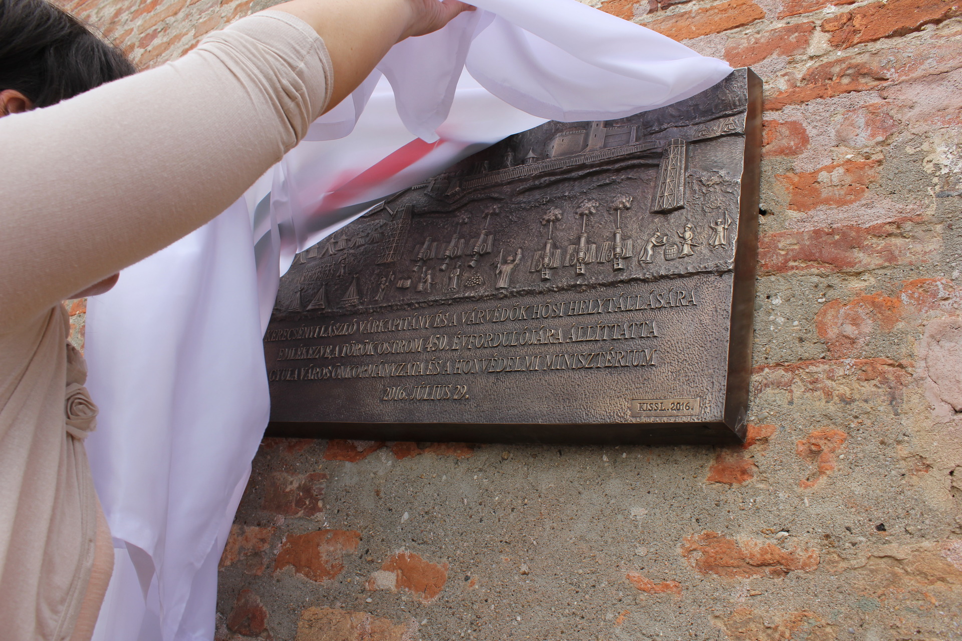 A várvédő hősök tiszteletére állított emléktábla leleplezés előtt