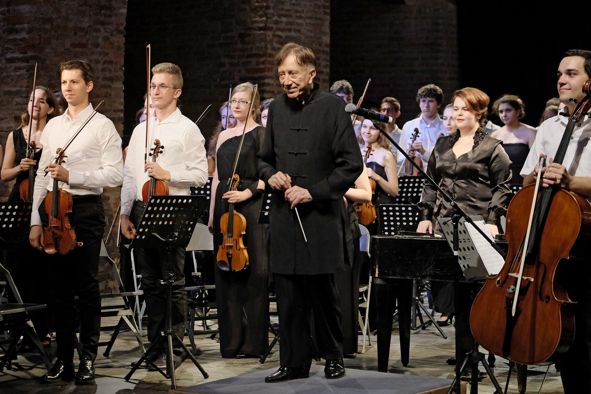 A koncertet a Debreceni Egyetem Zeneművészeti Karának főiskolai docense és művészeti menedzsere, az Ifjú Zeneművészek Nemzetközi Nyári Akadémiájának művészeti igazgatója, Váradi Judit konferálta fel, akit már évek óta foglalkoztatott az a gondolat, hogy miként lehetne a jövő generációját megszerettetni a komolyzenével. Elhivatott munkájának eredményeként idén már 16. alkalommal szerveztek Debrecenben nyári akadémiát, amelyre a 16 nemzetből érkező fiatal muzsikusok 29 professzor irányításával képezhetik tovább magukat. A zenekari kurzus megszervezését épp tíz évvel ezelőtt, 2006-ban a világhírű zongoraművész és karmester, Vásáry Tamás vállalta magára, aki a kurzus végén ezúttal már 8. alkalommal turné keretében mutatja meg a nagyközönségnek is egy hetes közös munkájuk eredményét. Gyulán már második alkalommal járnak, a turné 3. állomásaként. Váradi Judit azt is elmondta, hogy budapesti koncertjük ideje épp egybeesett a Nemzetközi Kodály Társaság a világ minden tájáról érkezett elnökeinek ülésével, így akkor este előttük játszottak, Debrecenben pedig élő internetes közvetítés volt koncertjükről.