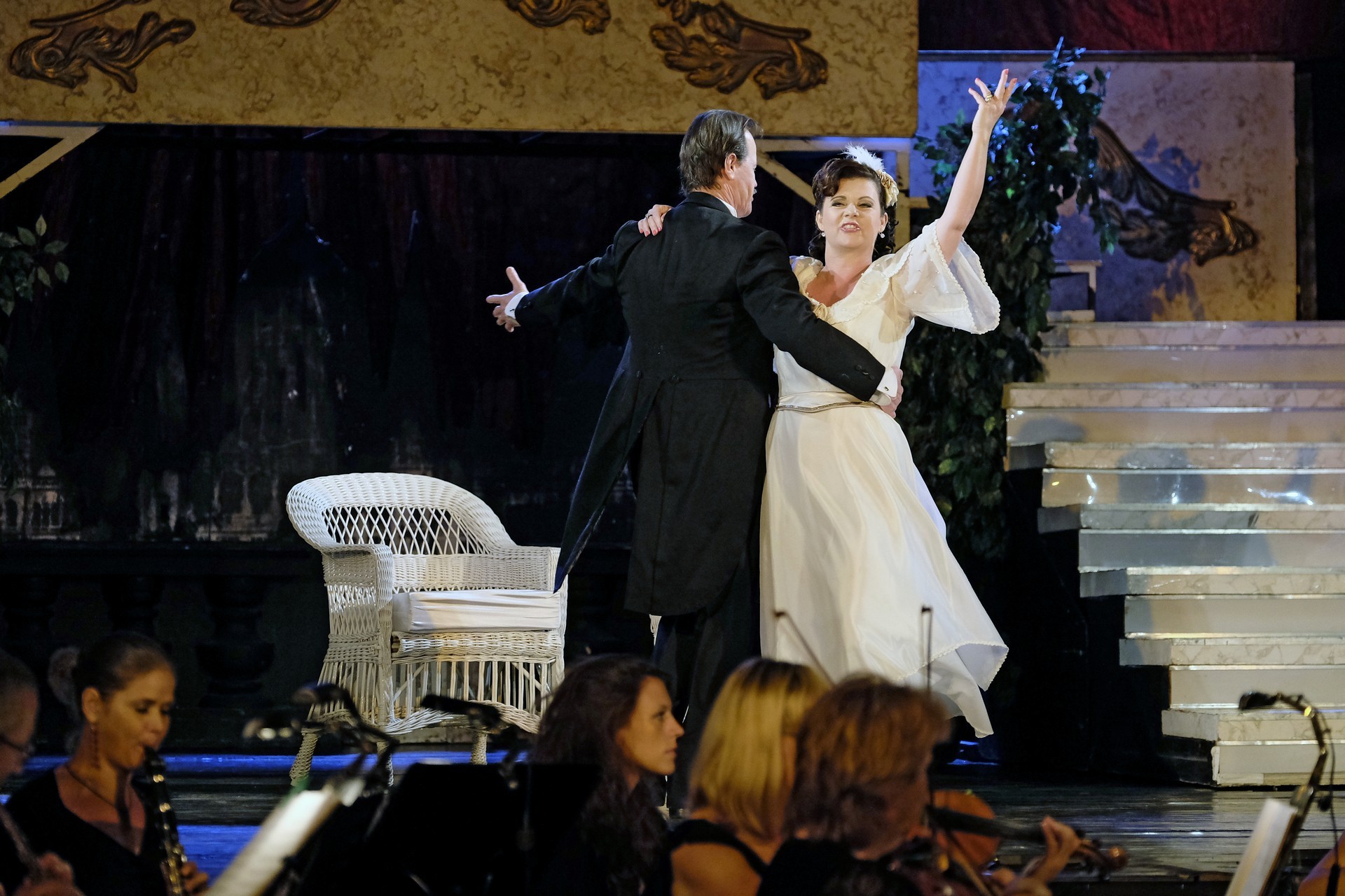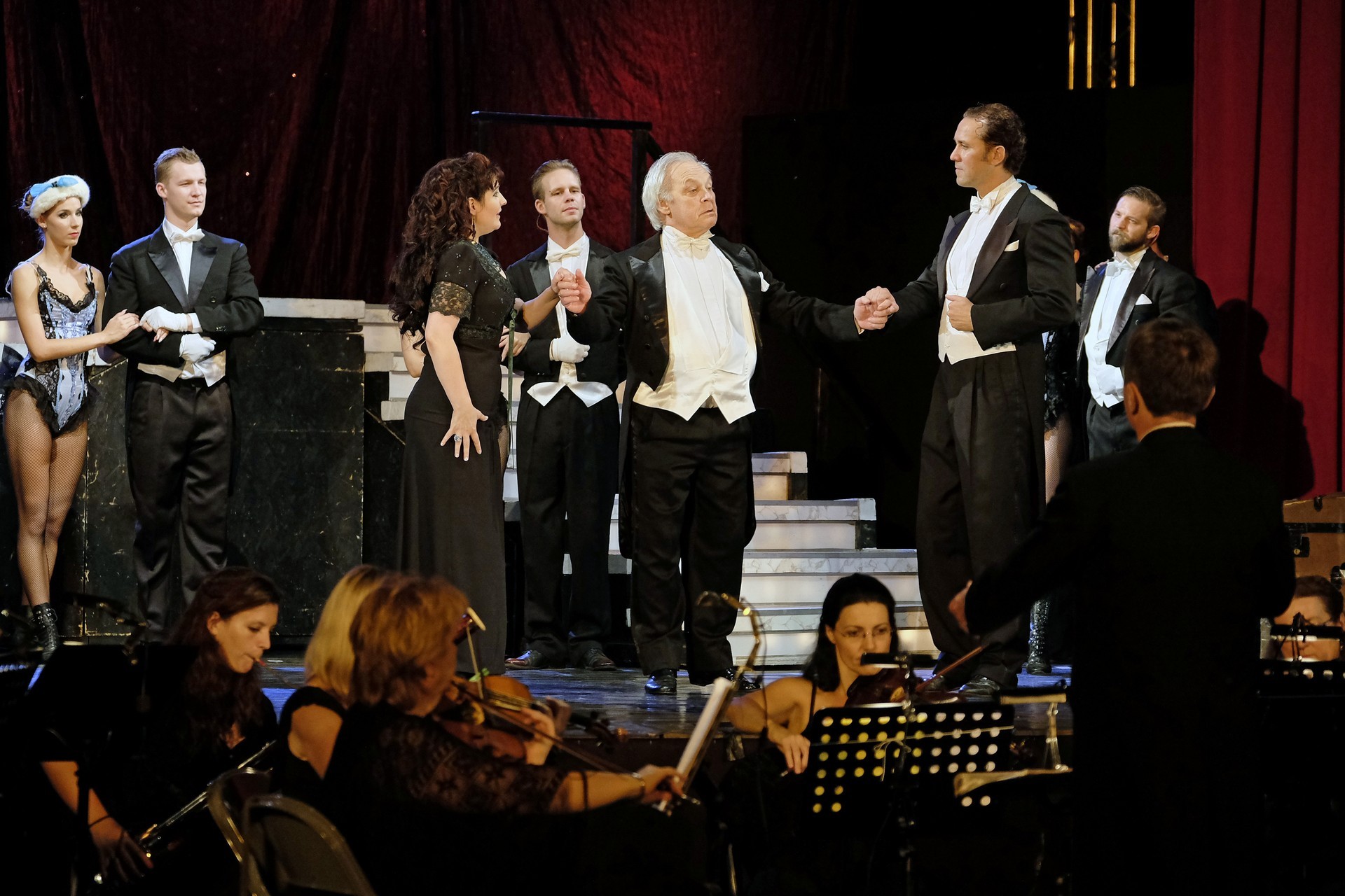 A sok fénnyel és pompával jellemzett operett a tóval elválasztott színpad keltette távolságból kicsit lassabban jutott át a közönséghez, és a helyzetkomikumok is csak idővel találtak rá megfelelő ritmusukra. A kézben pezsgőspohárral kimondott eredeti cím – Éljen a szerelem! – azonban jól ült, ezzel is hangsúlyozva a mű eredeti előadását. Szolnoki Tibor Bónija egyöntetű sikert aratott, szépen csengett a sanzonett Szilviát alakító Geszthy Veronika hangja, rokonszenves volt a Stázi grófnőként látott Teremi Trixi, Benkő Péter Feri bácsija szerethetően nagypapás, Dunai Tamás Weilersheim hercegként kellőképp arisztokrata, hozzá kellő méltósággal társulva Zsadon Andrea Anhilteje, Domoszlai Sándor Edvinje pedig a prózai részben is nagyon operettes volt. Az egy szünettel és egy színpadi átrendezéssel előadott mű harmadik felvonása előtt Johan János prímás és cigányzenekara vonta magára a figyelmet, méghozzá olyan sikerrel, hogy produkciójukat a nagyérdemű többszöri vastapssal jutalmazta őket.