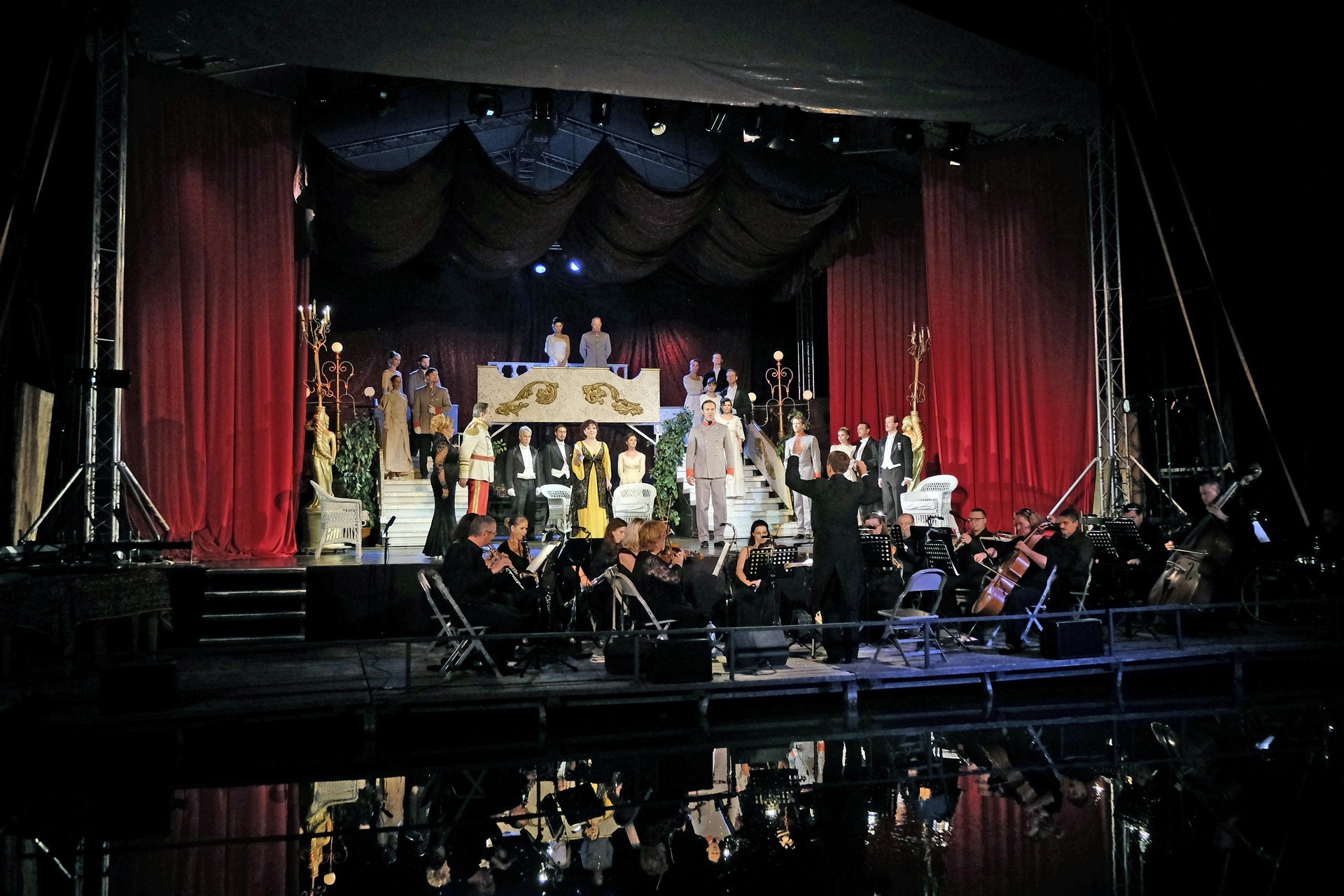A július 26-án a tószínpadon az Operettvilág Együttes előadásában látott produkció érdekessége, hogy nem a köztudatban elterjedt felújított változat, hanem az eredeti darab volt, amelyben a Hajmási Péter, Hajmási Pál örökzöldet is – ennek megfelelően – Bóni és Stázi énekelte. Azt nem tudni, hogy mindez mennyire volt a köztudatban és felelt meg a közönség várakozásainak, de érezhetően szeretni jöttek az előadást, mert ahogy sorra csendültek fel az ismertnél ismertebb dallamok – Kivirágos virradatig, A lyányok, a lyányok, Ma önről álmodtam megint, Túl az Óperencián, Szép volt, de szép –, a taps is úgy vált egyre élénkebbé. Ilyenkor minden operettrajongó hálás azért, hogy Kálmán Imre a jogi és a komolyzenei pályát egyaránt hátrahagyva kötelezte el magát e műfaj mellett, pedig a Zeneakadémián épp annak a Koessler Jánosnak volt a növendéke, aki Kodályt, Bartókot és Dohnányit is tanította.