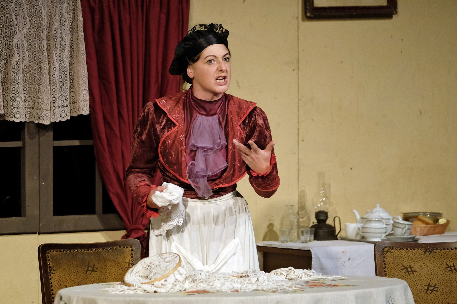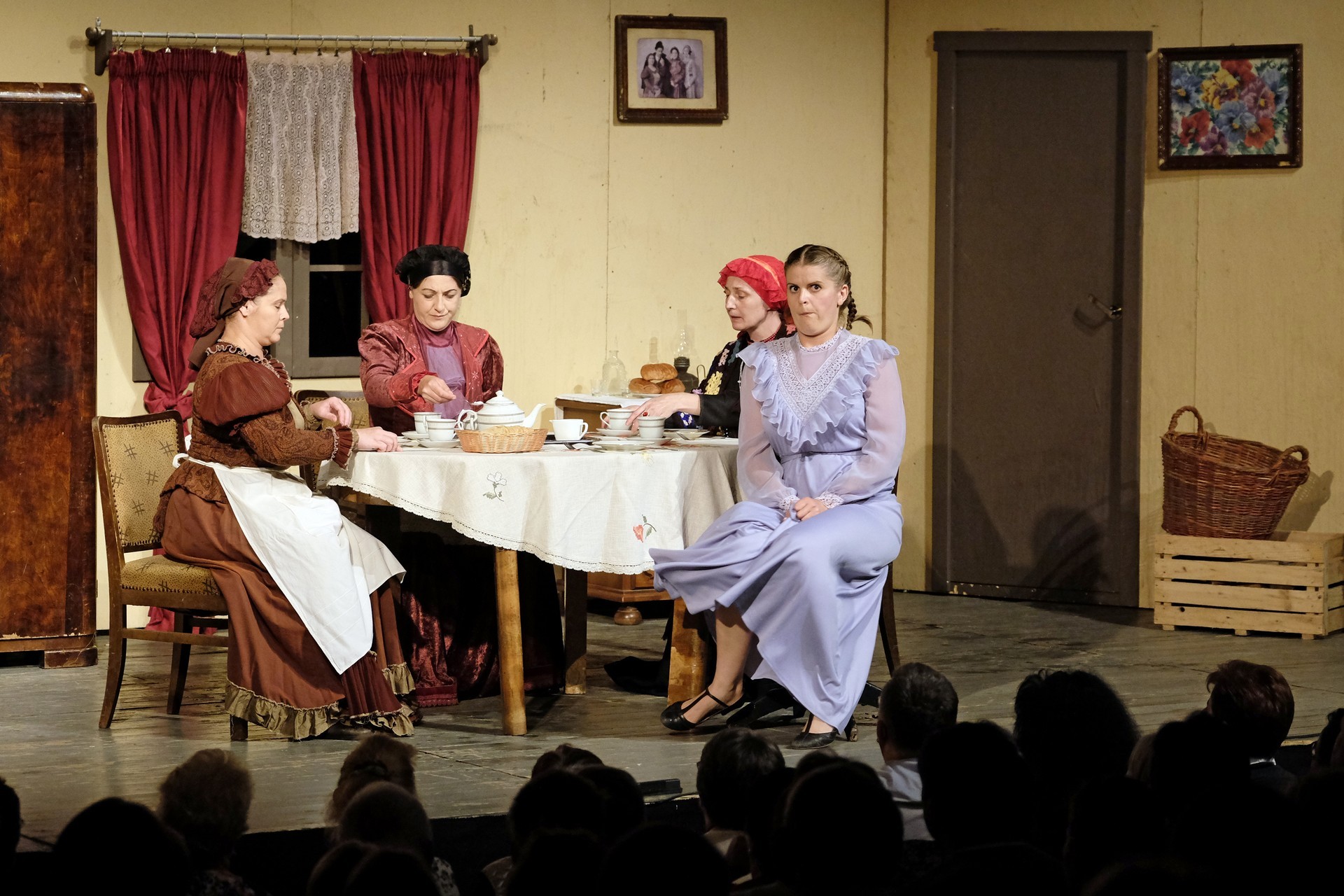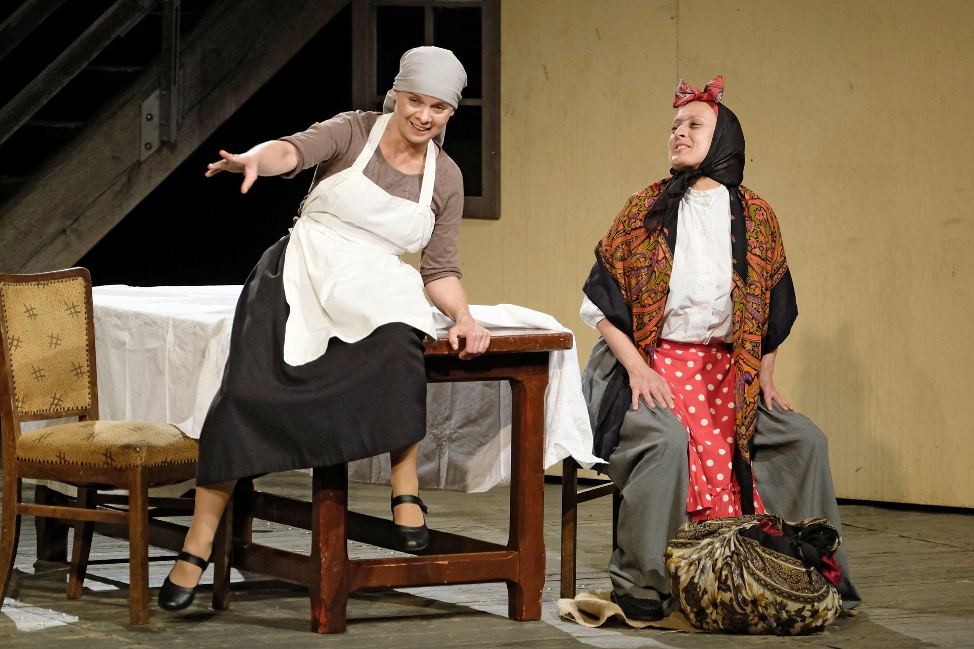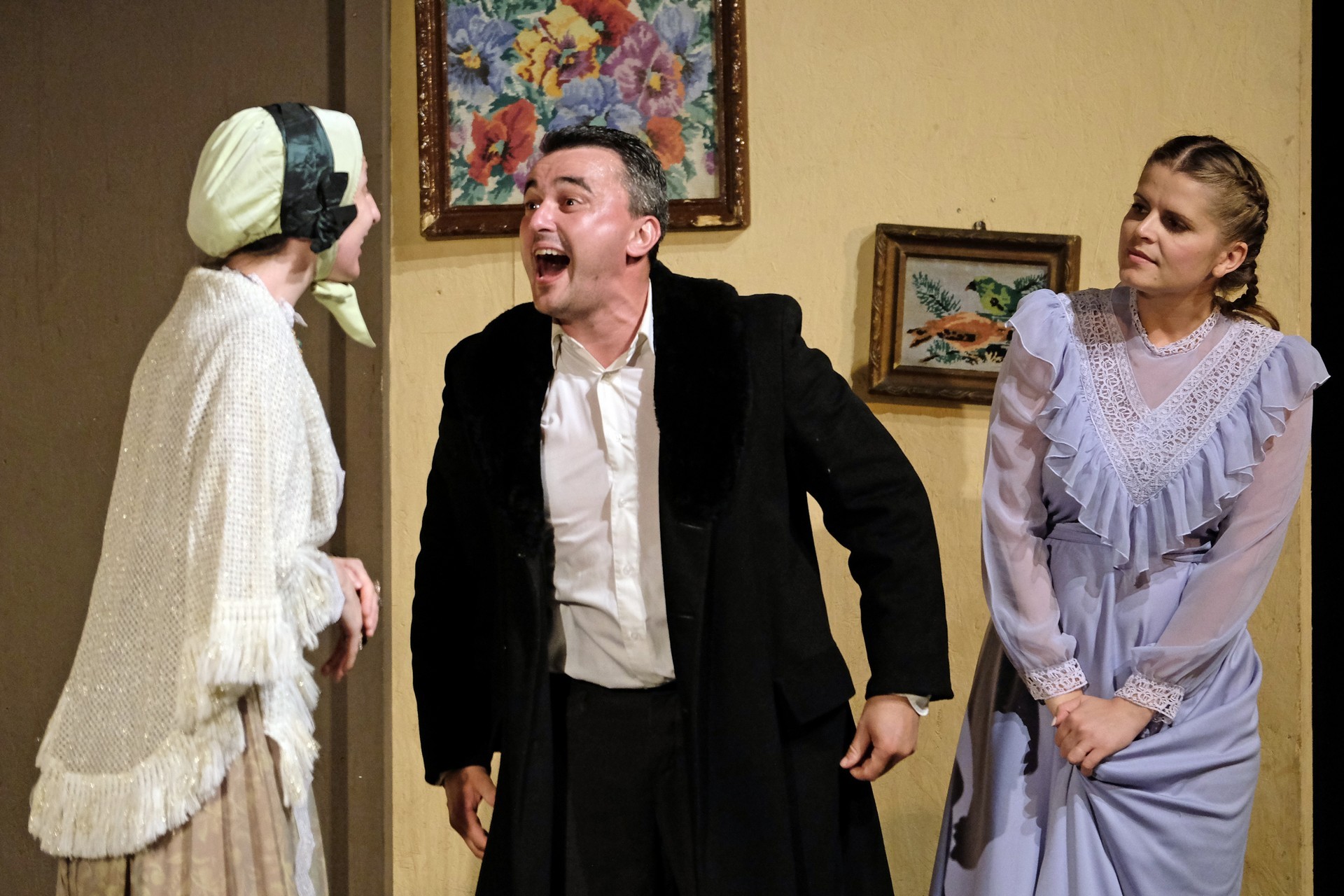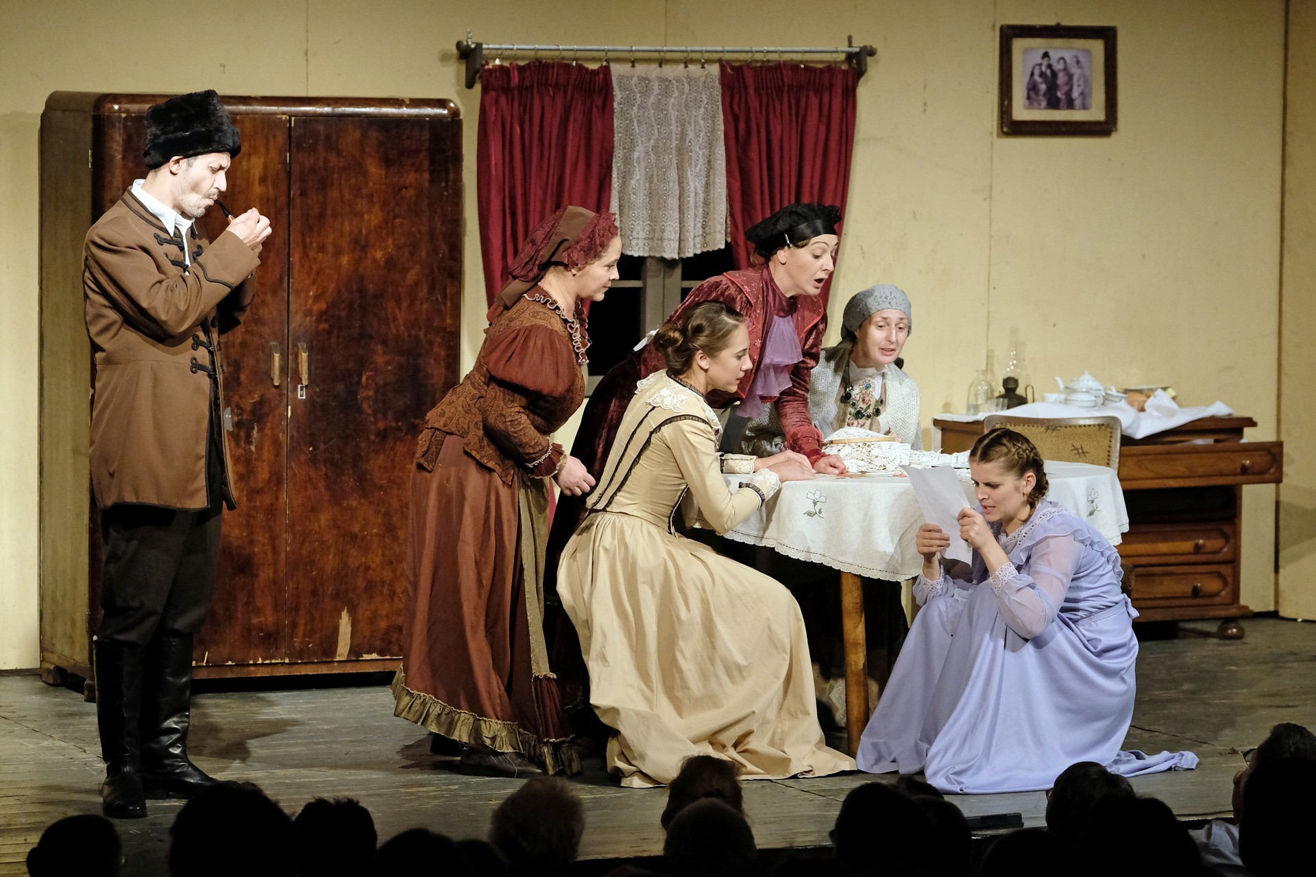A beregszászi társulatról ritkán olvasni negatív kritikát, ez most sem lesz másképp, hiszen már akár egy szemöldökrándítással leszínészkedtek bárkit a színpadról, nagyon tehetséges, összeszokott játékot láthattunk, amelyet Katkó Ferenc rázott rendezésével tökéletes egységbe. Tarpai Viktória és Ferenci Attila édesen adták a perlekedő házaspárt, a Zsani nénit alakító Vass Magdolna valóban vasladyként osztotta az instrukciókat családtagjainak, Orosz Melinda nagylelkű Pepi nénije, illetve Kacsur Andrea siket és süket Mina nénije pillanatok alatt belopta magát a közönség szívébe. A Domáreckájá Júlia alakította Biri számtalanszor csalt mosolyt a közönség arcára, mondatait kuncogásmorajok követték, Kacsur András pedig mint Lajos bácsi, az egyetlen környéken élő férfiú, aki után már évek óta ácsingóznak a nagynénik, szintén megmutatta, ki az úr a háznál. Reméljük, jó szokásuk szerint minél hamarabb megint városunk felé veszik az irányt, és más darabban is bizonyítják reputációjukat.