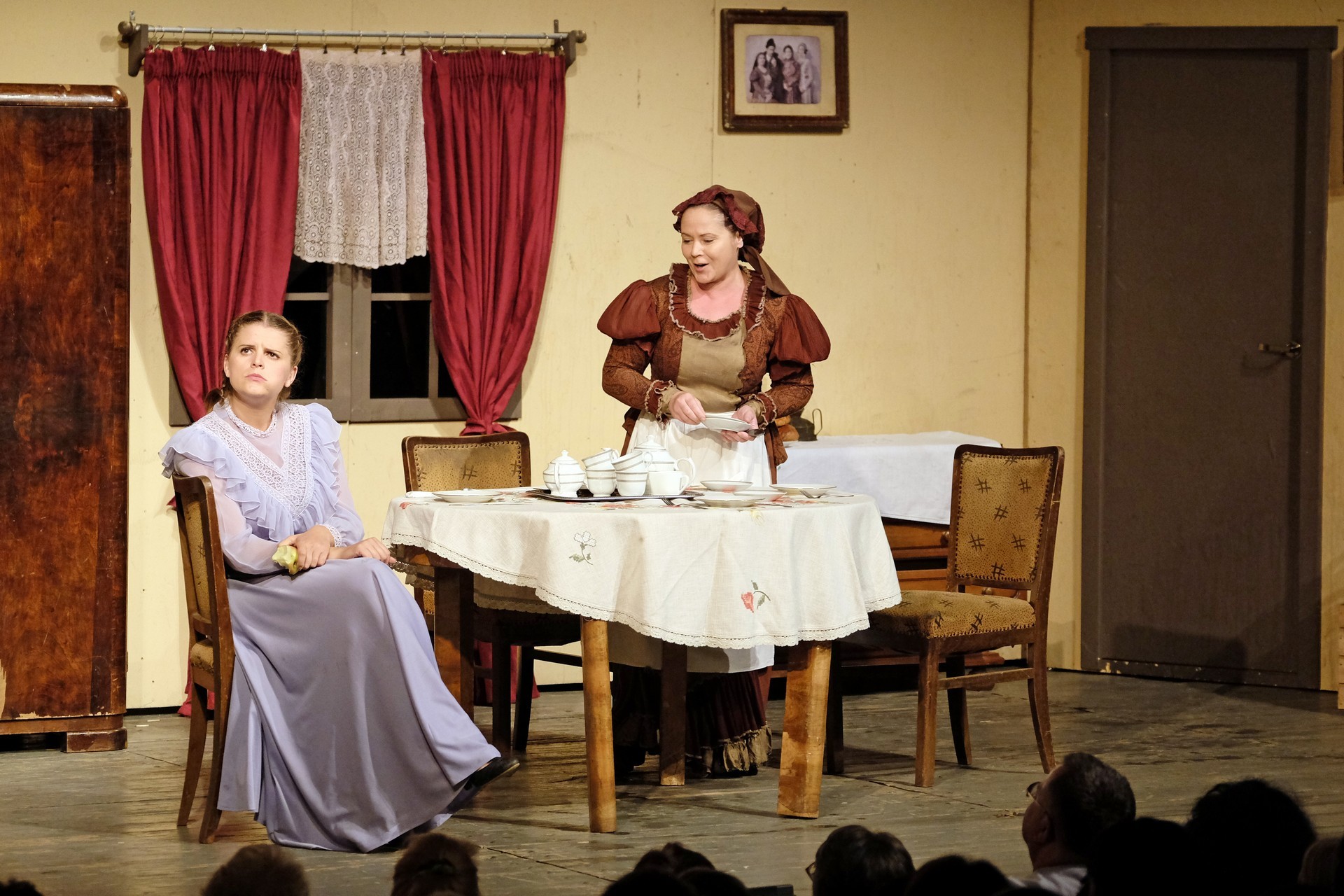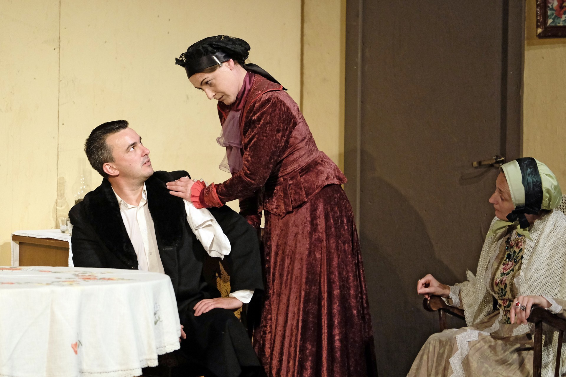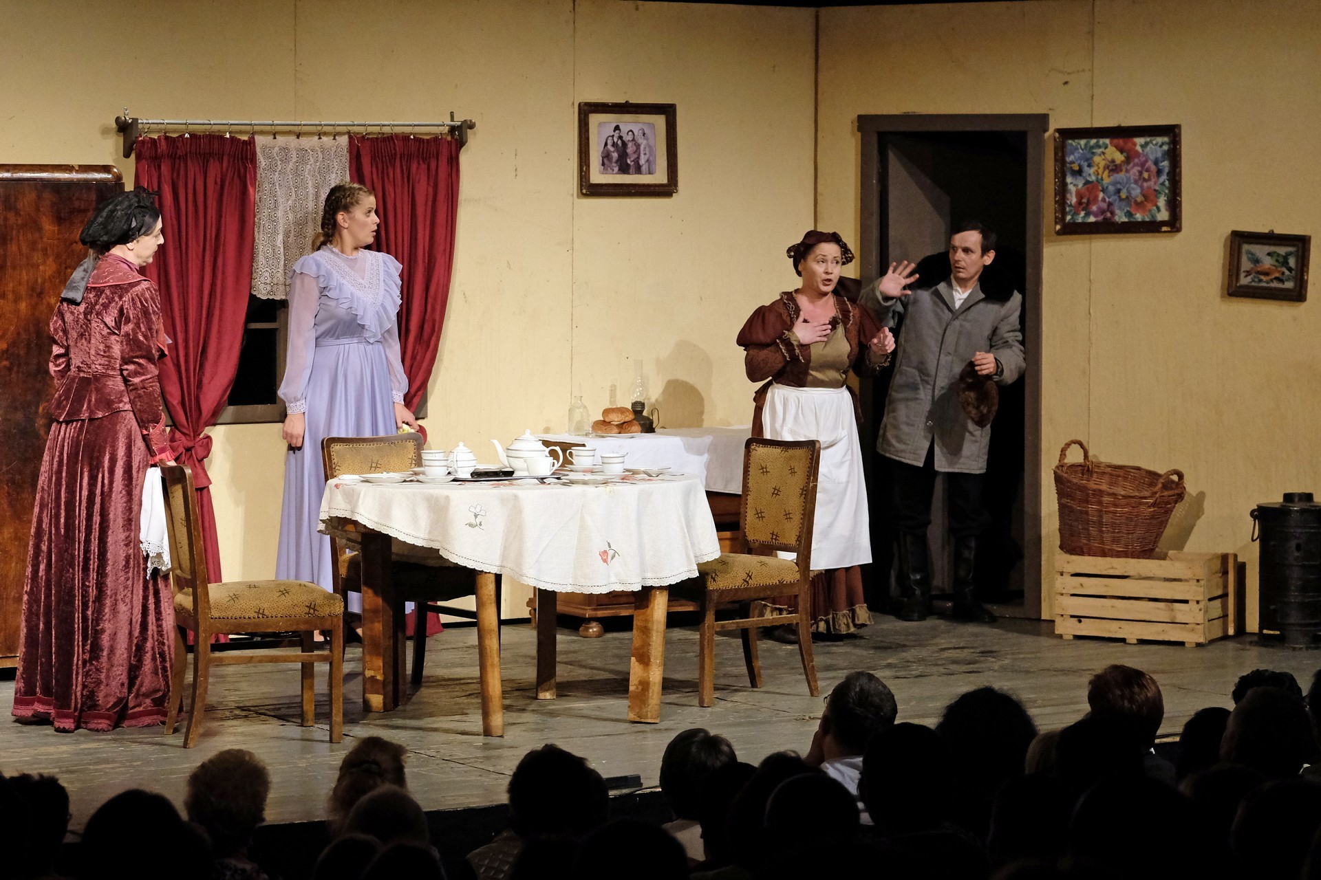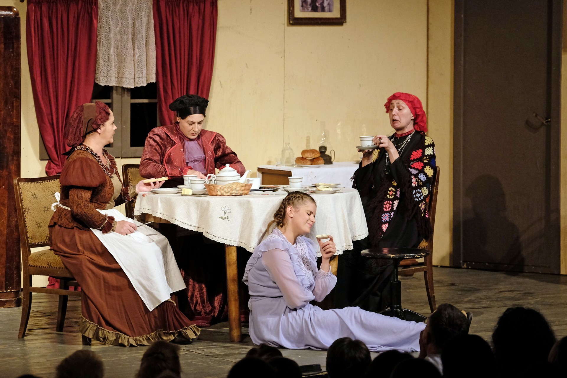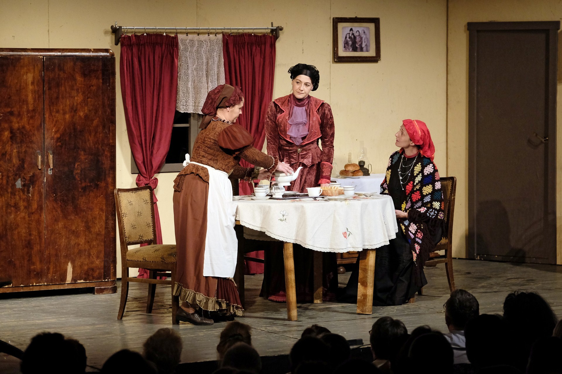 A beregszászi társulatról ritkán olvasni negatív kritikát, ez most sem lesz másképp, hiszen már akár egy szemöldökrándítással leszínészkedtek bárkit a színpadról, nagyon tehetséges, összeszokott játékot láthattunk, amelyet Katkó Ferenc rázott rendezésével tökéletes egységbe. Tarpai Viktória és Ferenci Attila édesen adták a perlekedő házaspárt, a Zsani nénit alakító Vass Magdolna valóban vasladyként osztotta az instrukciókat családtagjainak, Orosz Melinda nagylelkű Pepi nénije, illetve Kacsur Andrea siket és süket Mina nénije pillanatok alatt belopta magát a közönség szívébe. A Domáreckájá Júlia alakította Biri számtalanszor csalt mosolyt a közönség arcára, mondatait kuncogásmorajok követték, Kacsur András pedig mint Lajos bácsi, az egyetlen környéken élő férfiú, aki után már évek óta ácsingóznak a nagynénik, szintén megmutatta, ki az úr a háznál. Reméljük, jó szokásuk szerint minél hamarabb megint városunk felé veszik az irányt, és más darabban is bizonyítják reputációjukat.