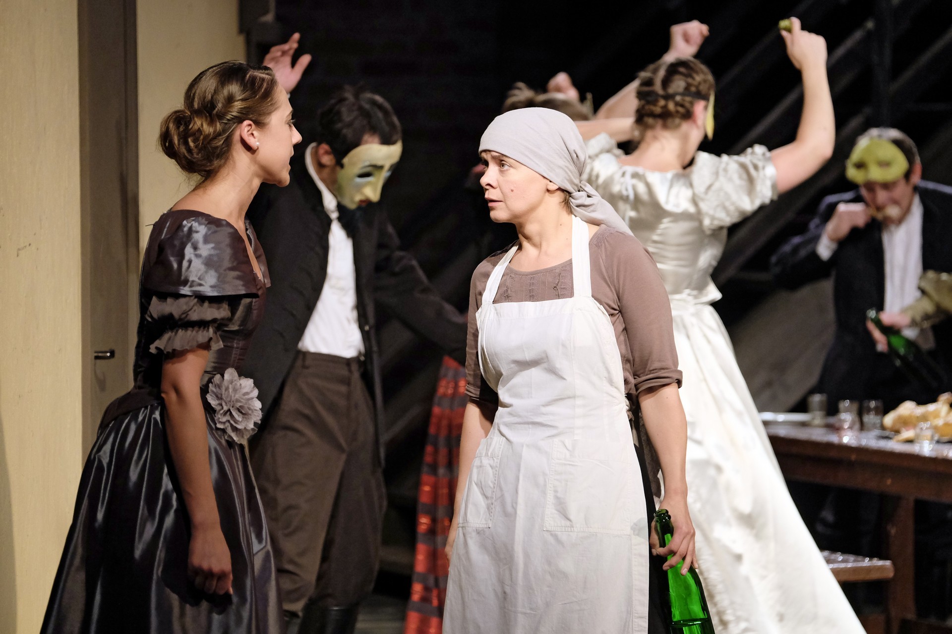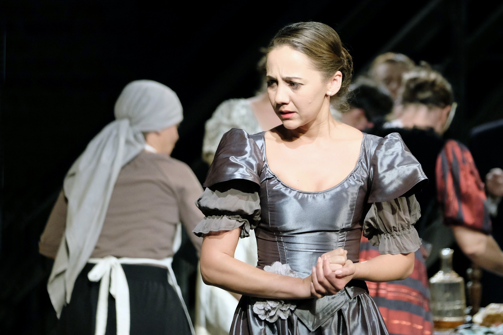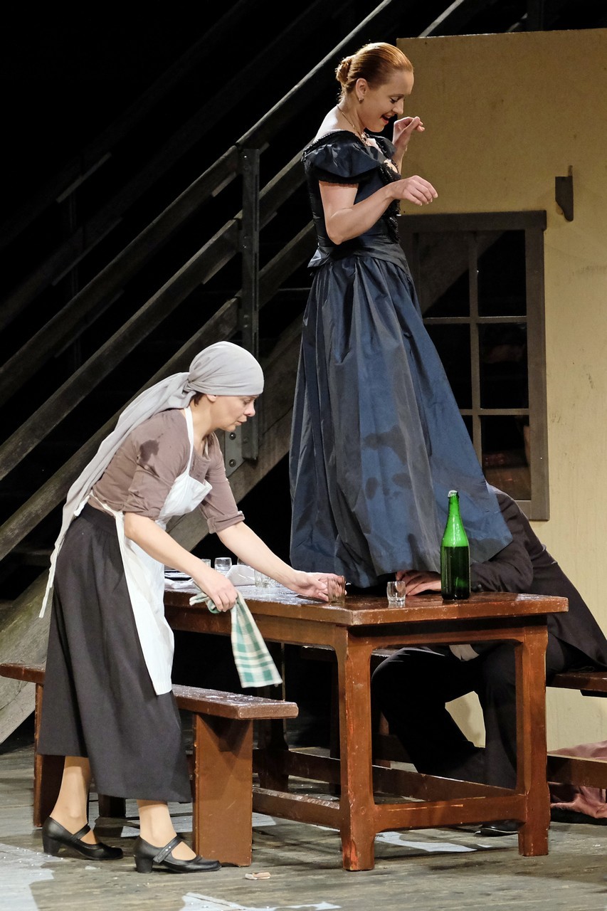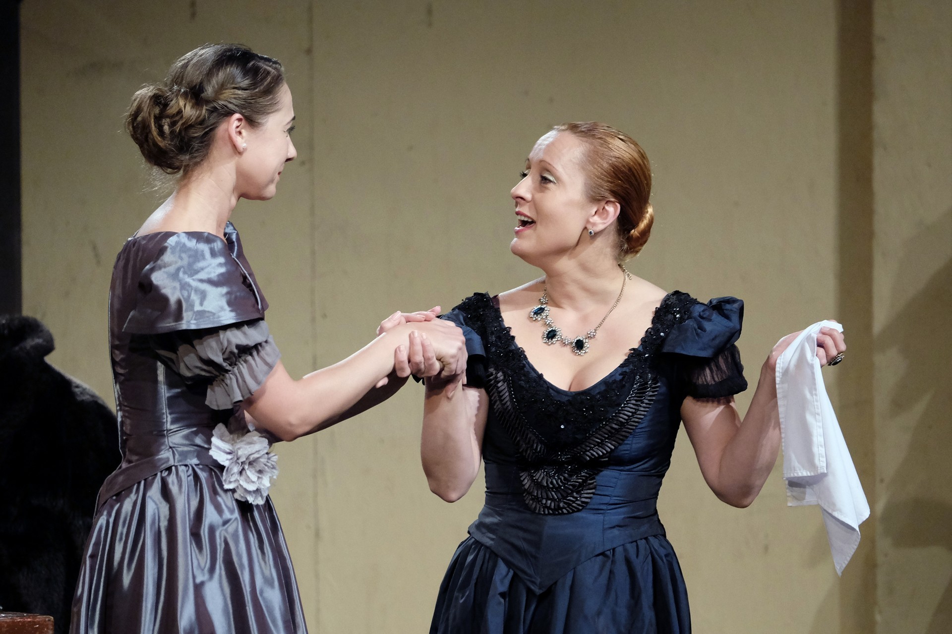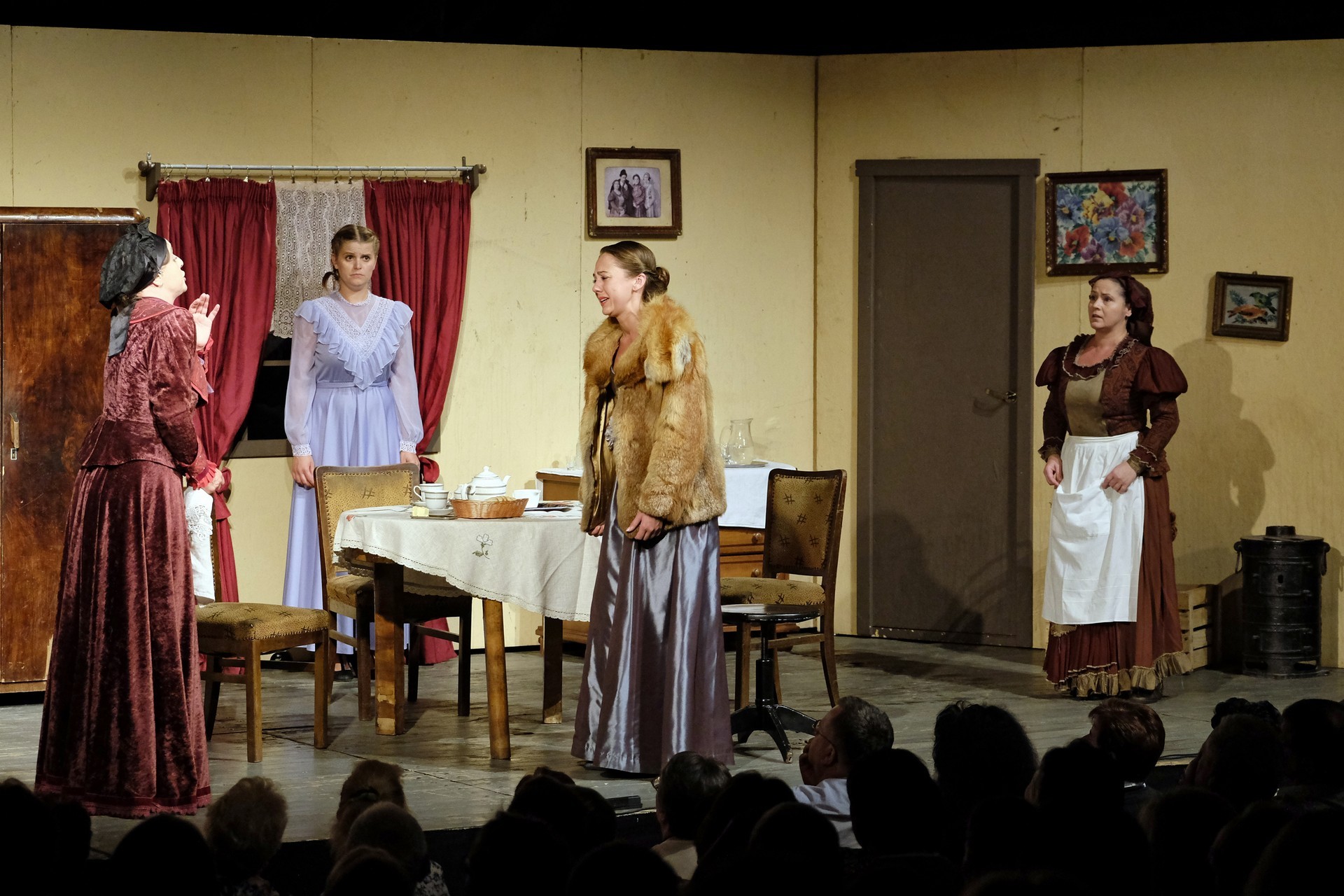 A beregszászi társulatról ritkán olvasni negatív kritikát, ez most sem lesz másképp, hiszen már akár egy szemöldökrándítással leszínészkedtek bárkit a színpadról, nagyon tehetséges, összeszokott játékot láthattunk, amelyet Katkó Ferenc rázott rendezésével tökéletes egységbe. Tarpai Viktória és Ferenci Attila édesen adták a perlekedő házaspárt, a Zsani nénit alakító Vass Magdolna valóban vasladyként osztotta az instrukciókat családtagjainak, Orosz Melinda nagylelkű Pepi nénije, illetve Kacsur Andrea siket és süket Mina nénije pillanatok alatt belopta magát a közönség szívébe. A Domáreckájá Júlia alakította Biri számtalanszor csalt mosolyt a közönség arcára, mondatait kuncogásmorajok követték, Kacsur András pedig mint Lajos bácsi, az egyetlen környéken élő férfiú, aki után már évek óta ácsingóznak a nagynénik, szintén megmutatta, ki az úr a háznál. Reméljük, jó szokásuk szerint minél hamarabb megint városunk felé veszik az irányt, és más darabban is bizonyítják reputációjukat.