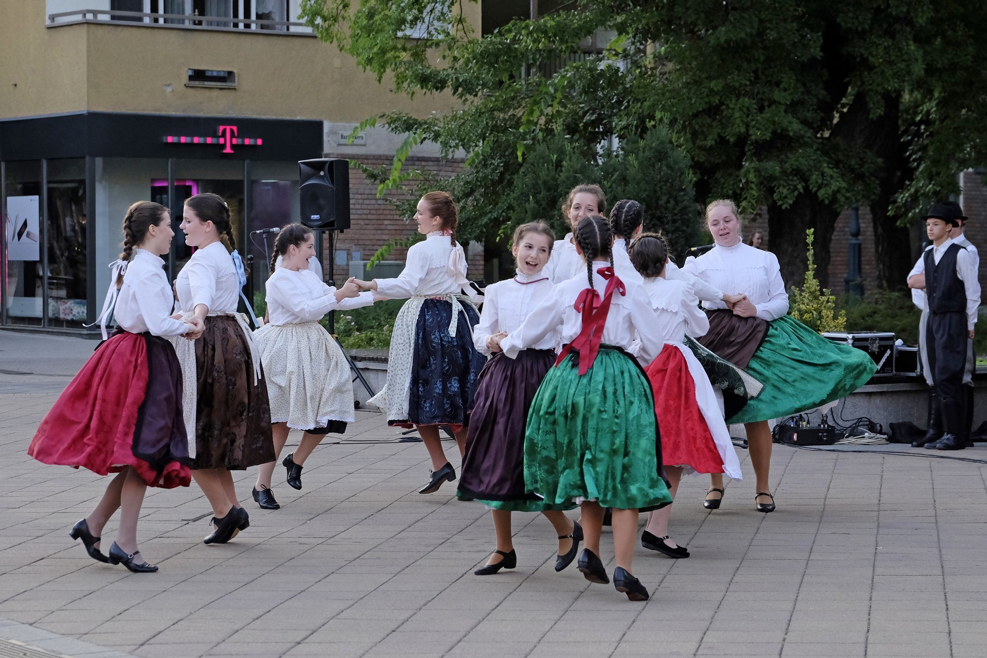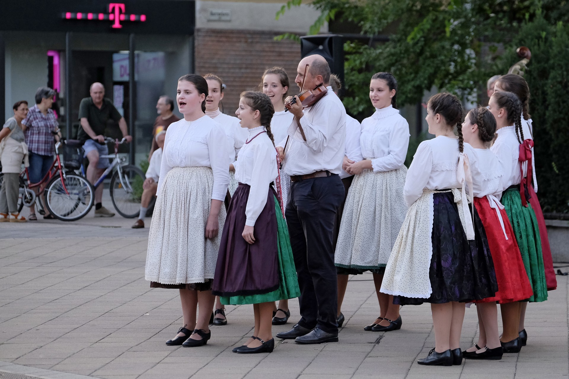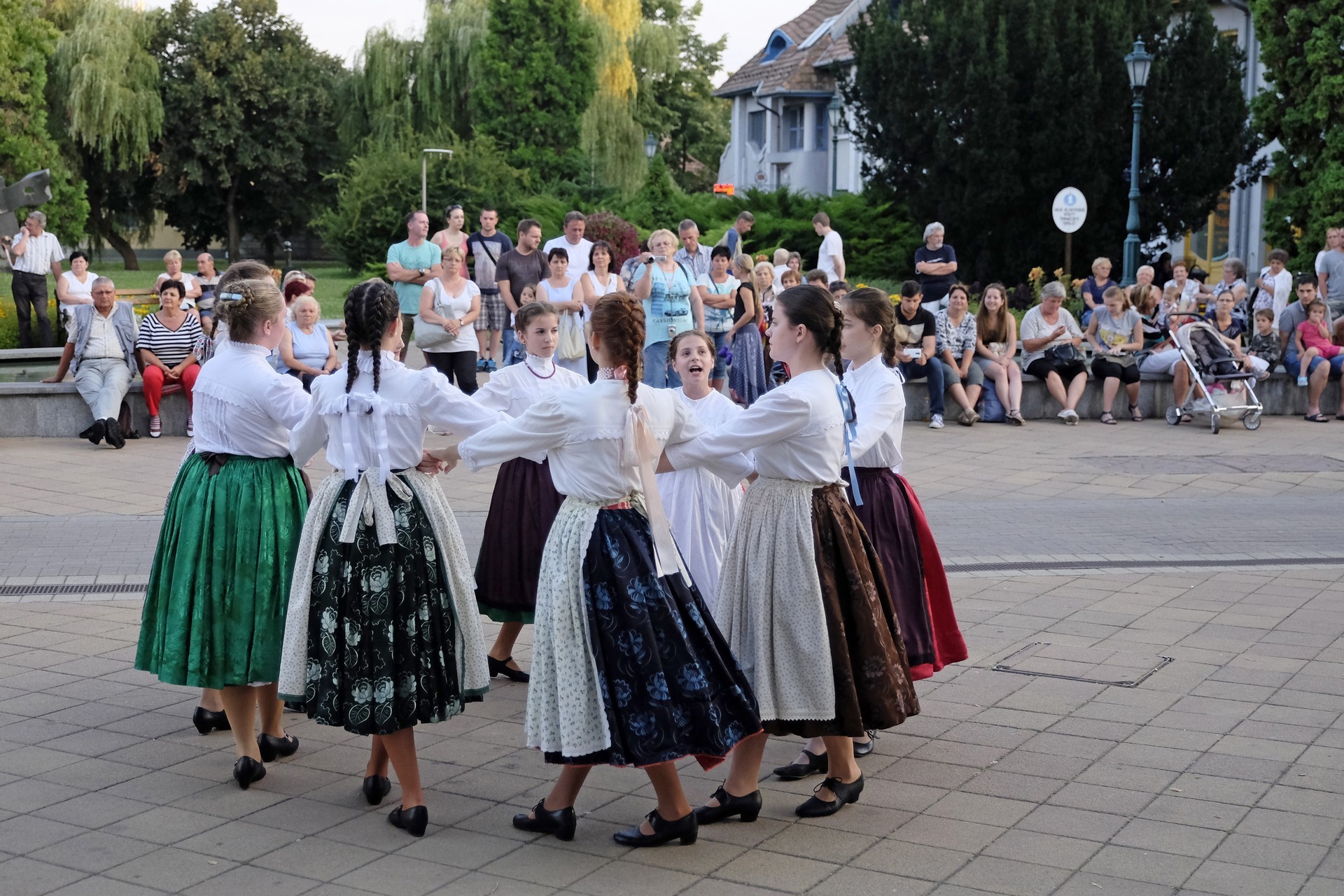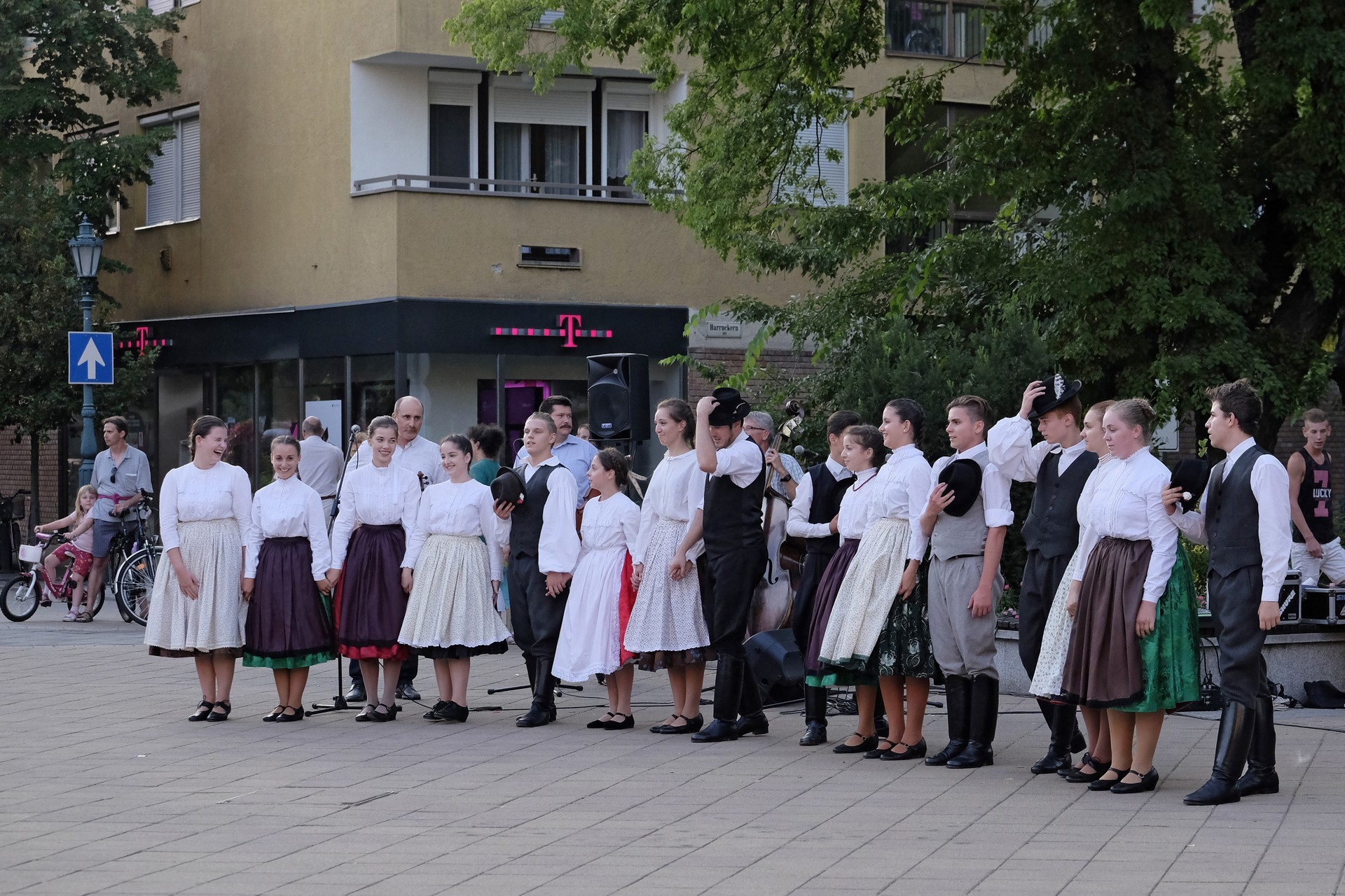 A Harruckern tér már háromnegyed hétkor megtelt, hiszen kicsit több mint negyed óra volt hátra a Körös Táncegyüttes fellépéséig.
