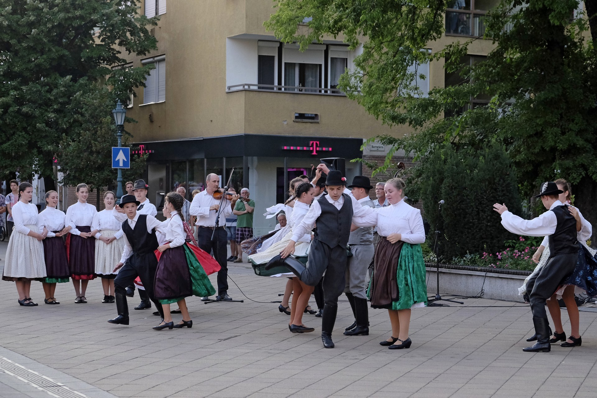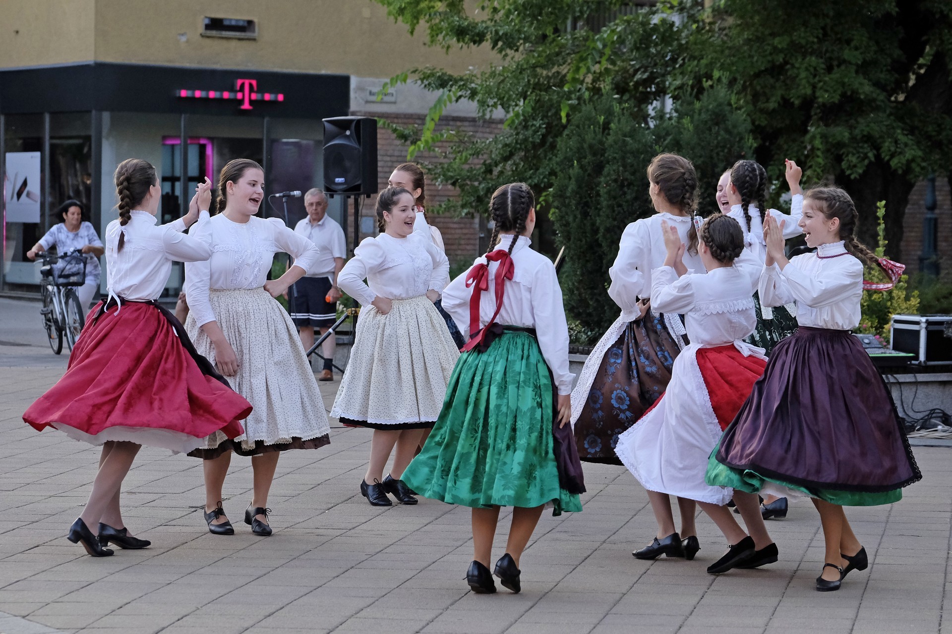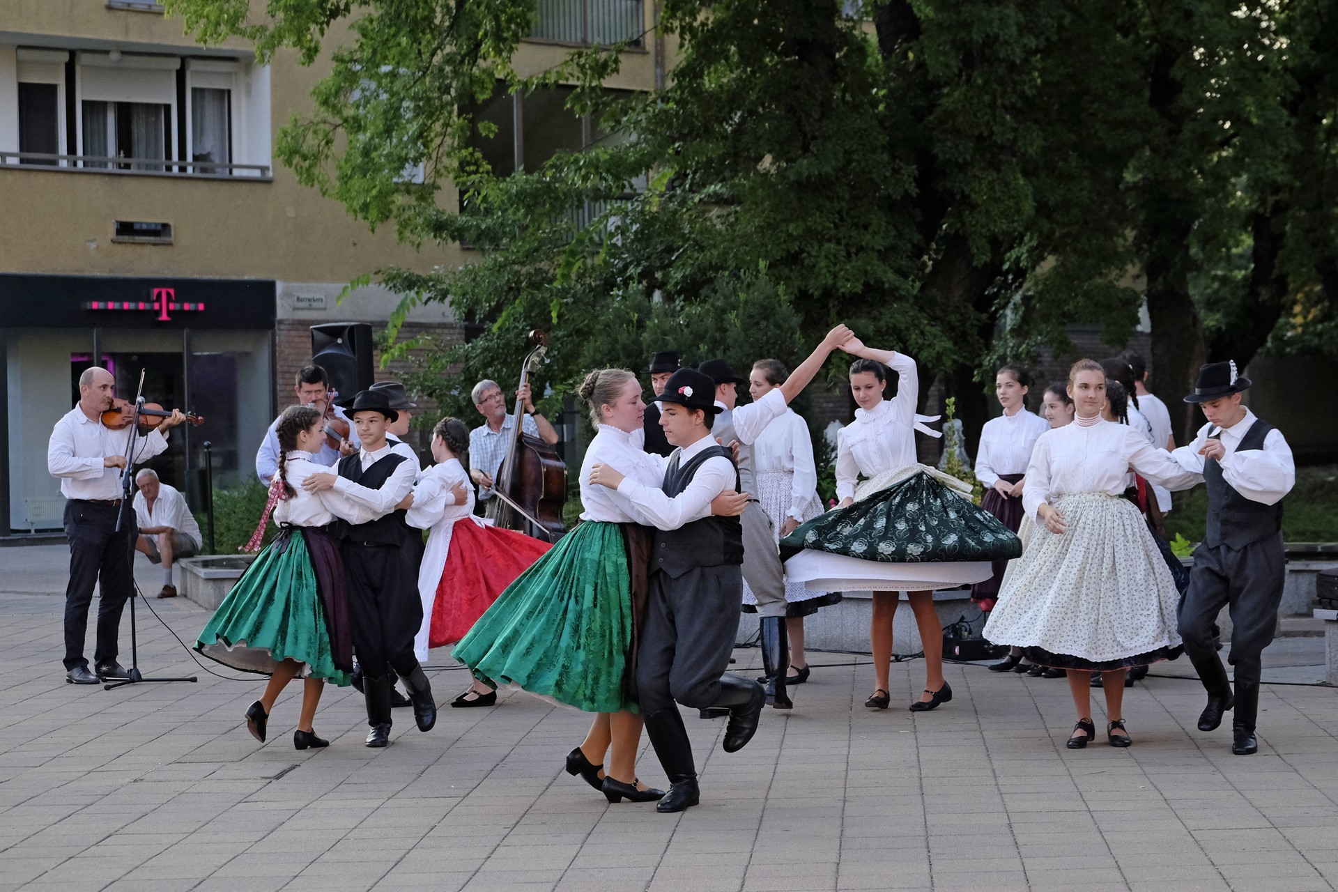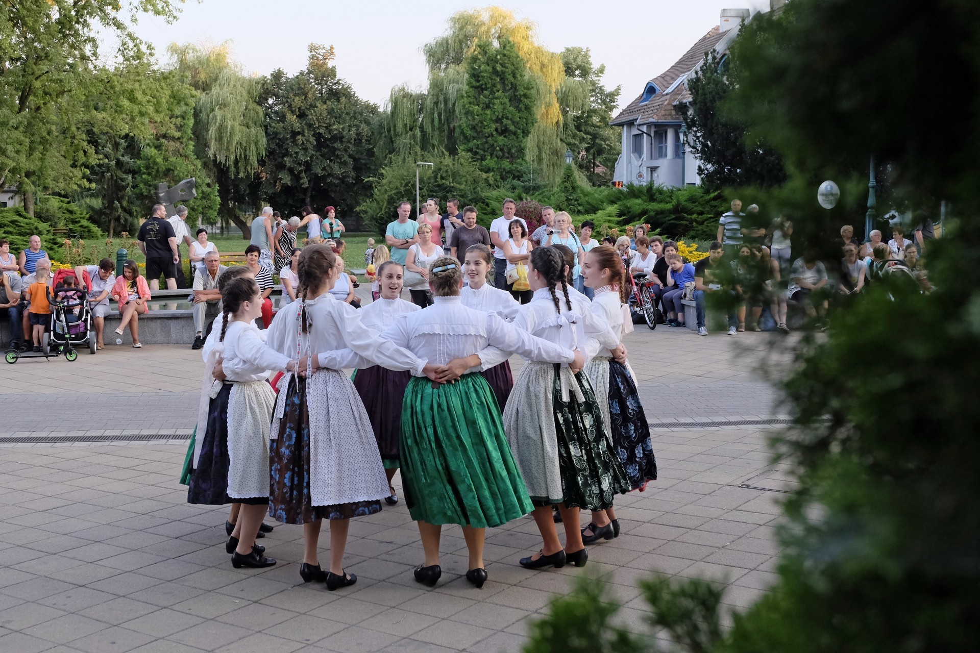 A Harruckern tér már háromnegyed hétkor megtelt, hiszen kicsit több mint negyed óra volt hátra a Körös Táncegyüttes fellépéséig.
