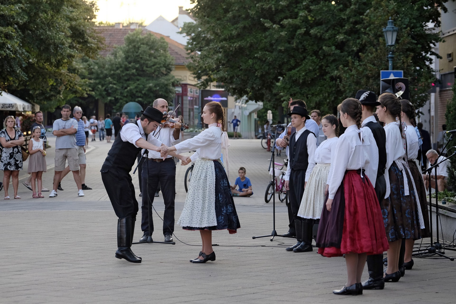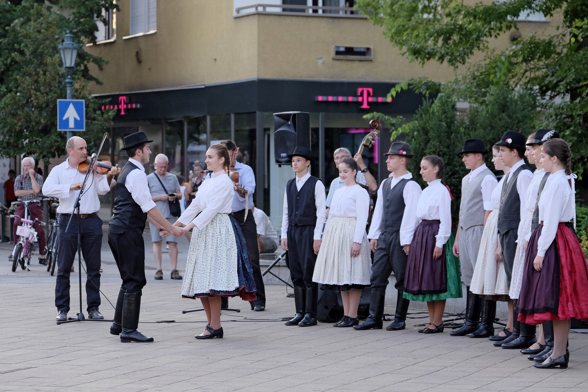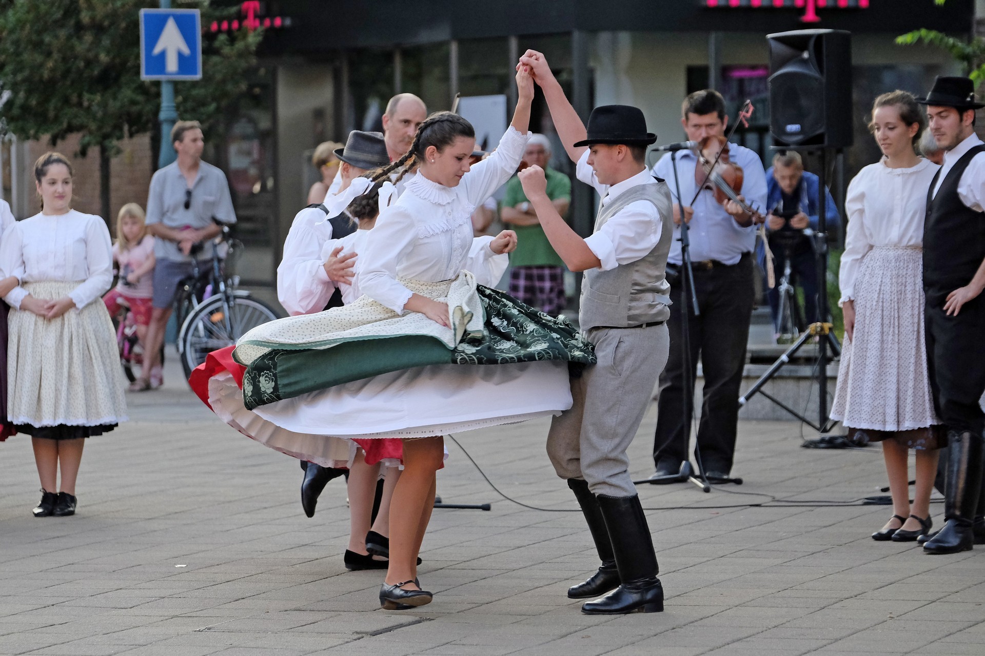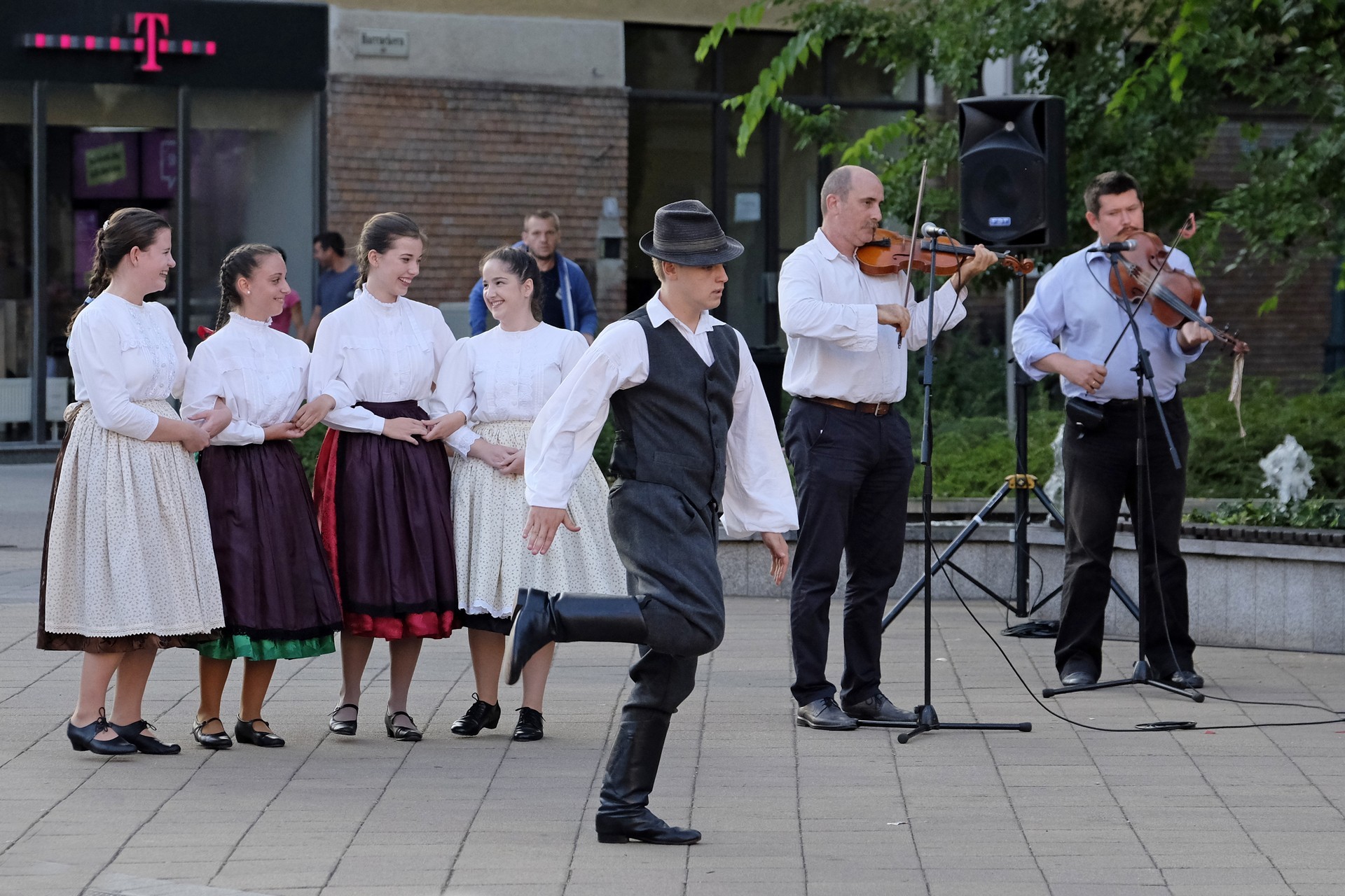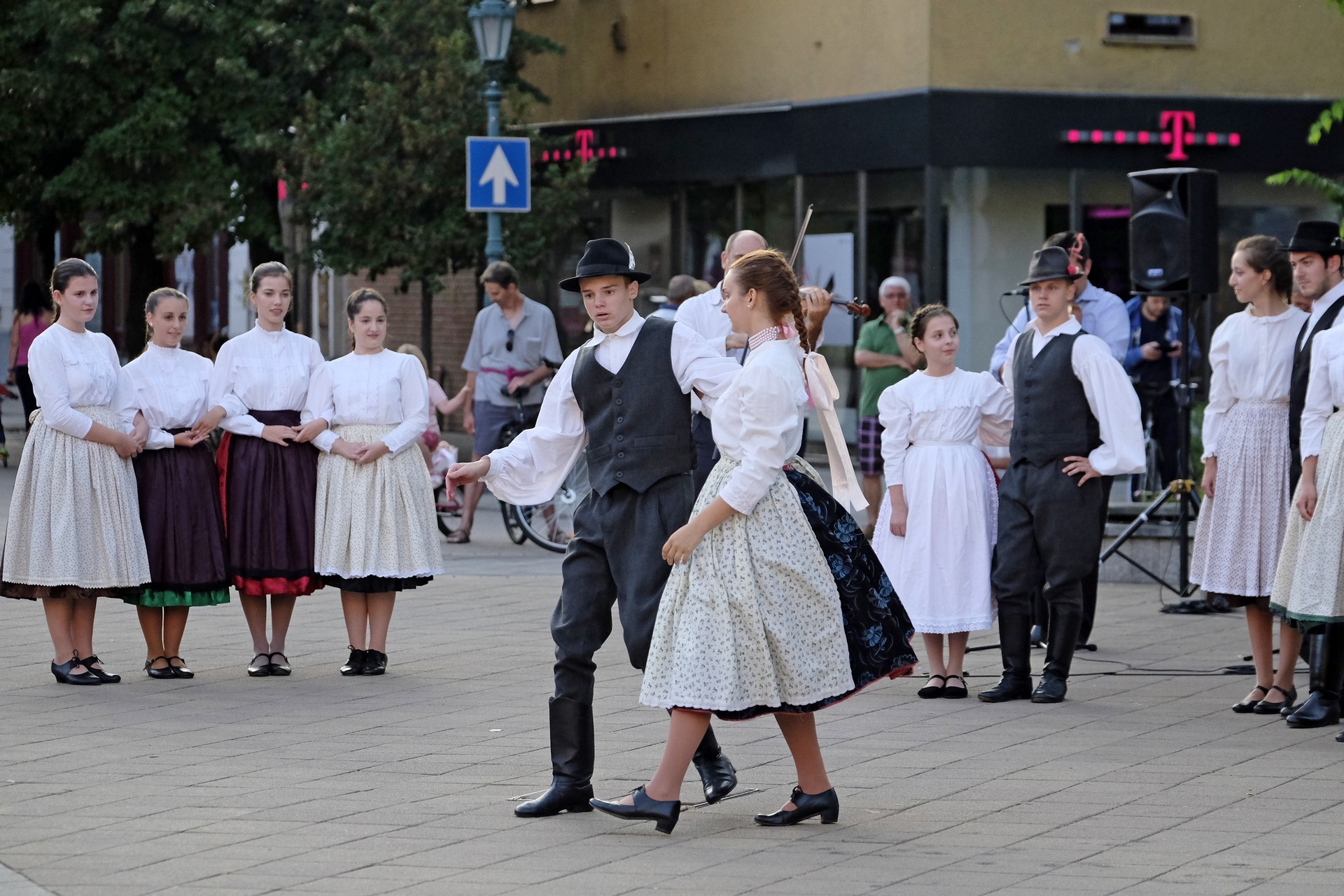 A Harruckern tér már háromnegyed hétkor megtelt, hiszen kicsit több mint negyed óra volt hátra a Körös Táncegyüttes fellépéséig.