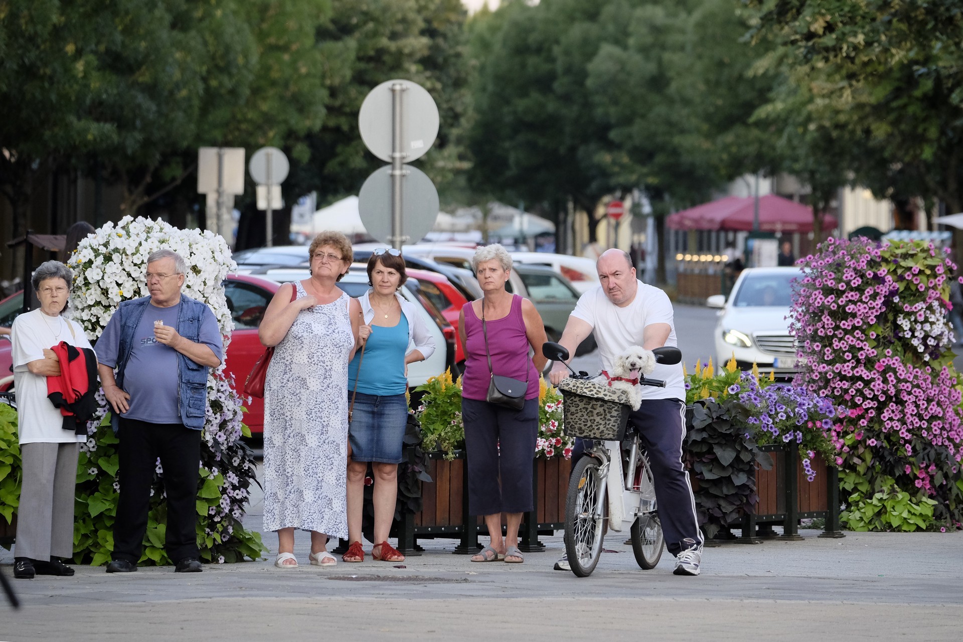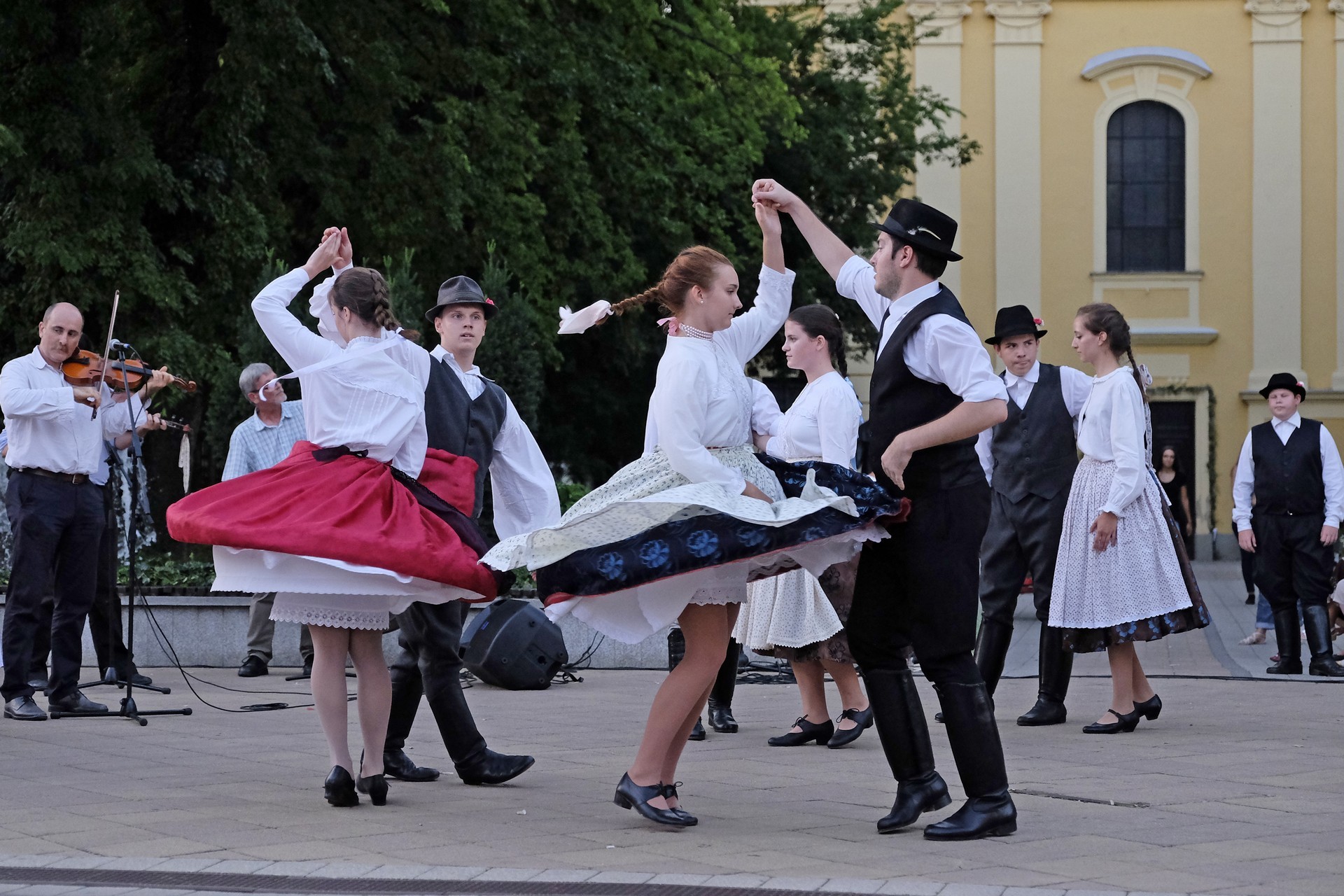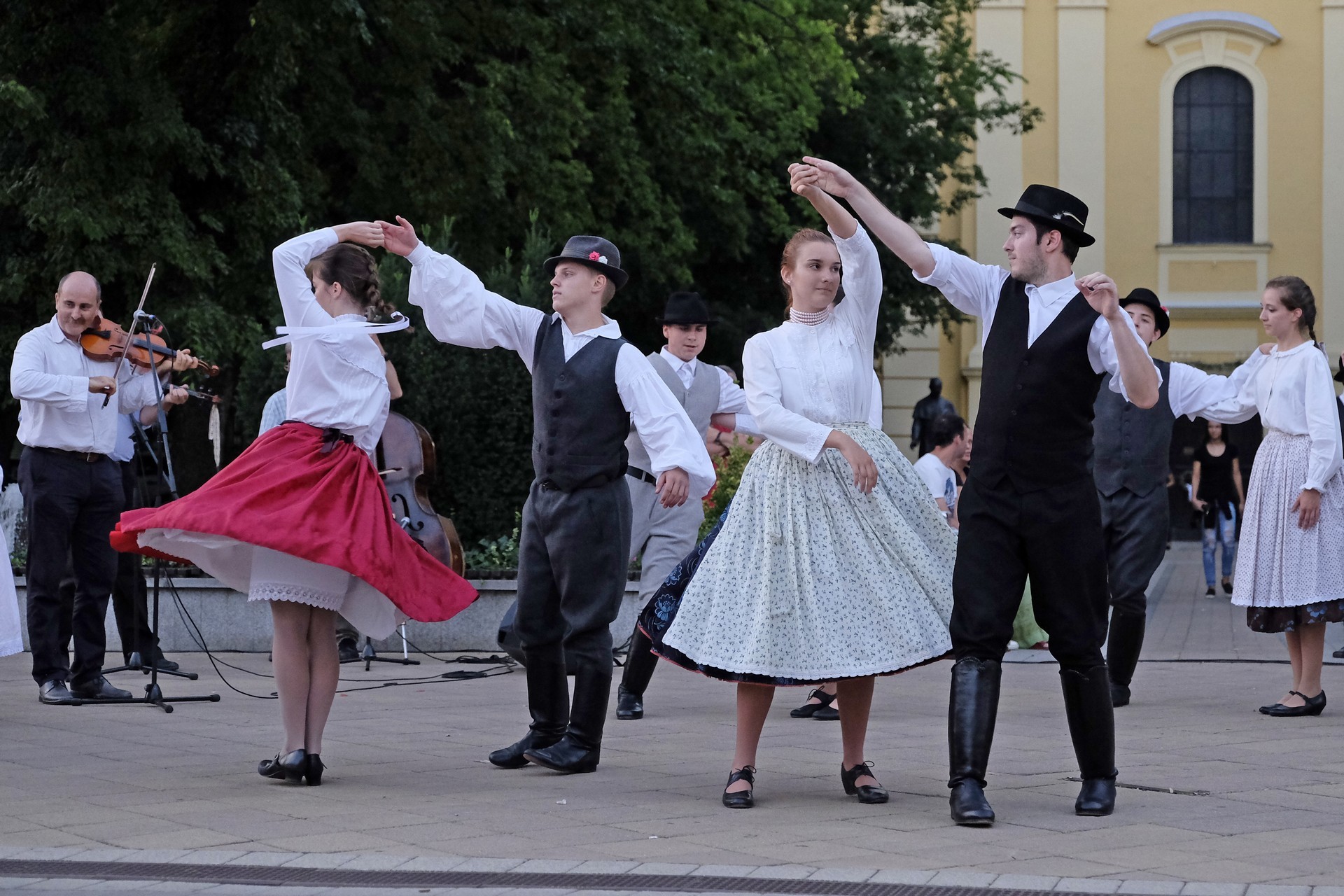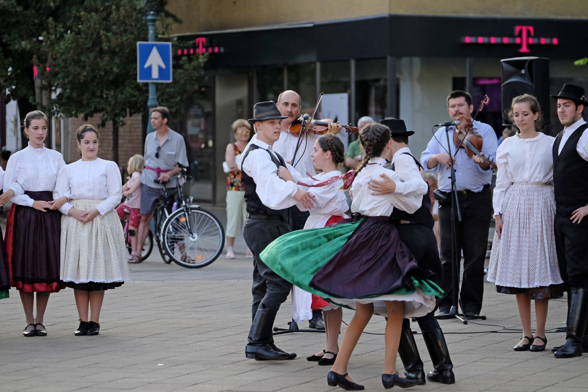 A Harruckern tér már háromnegyed hétkor megtelt, hiszen kicsit több mint negyed óra volt hátra a Körös Táncegyüttes fellépéséig.