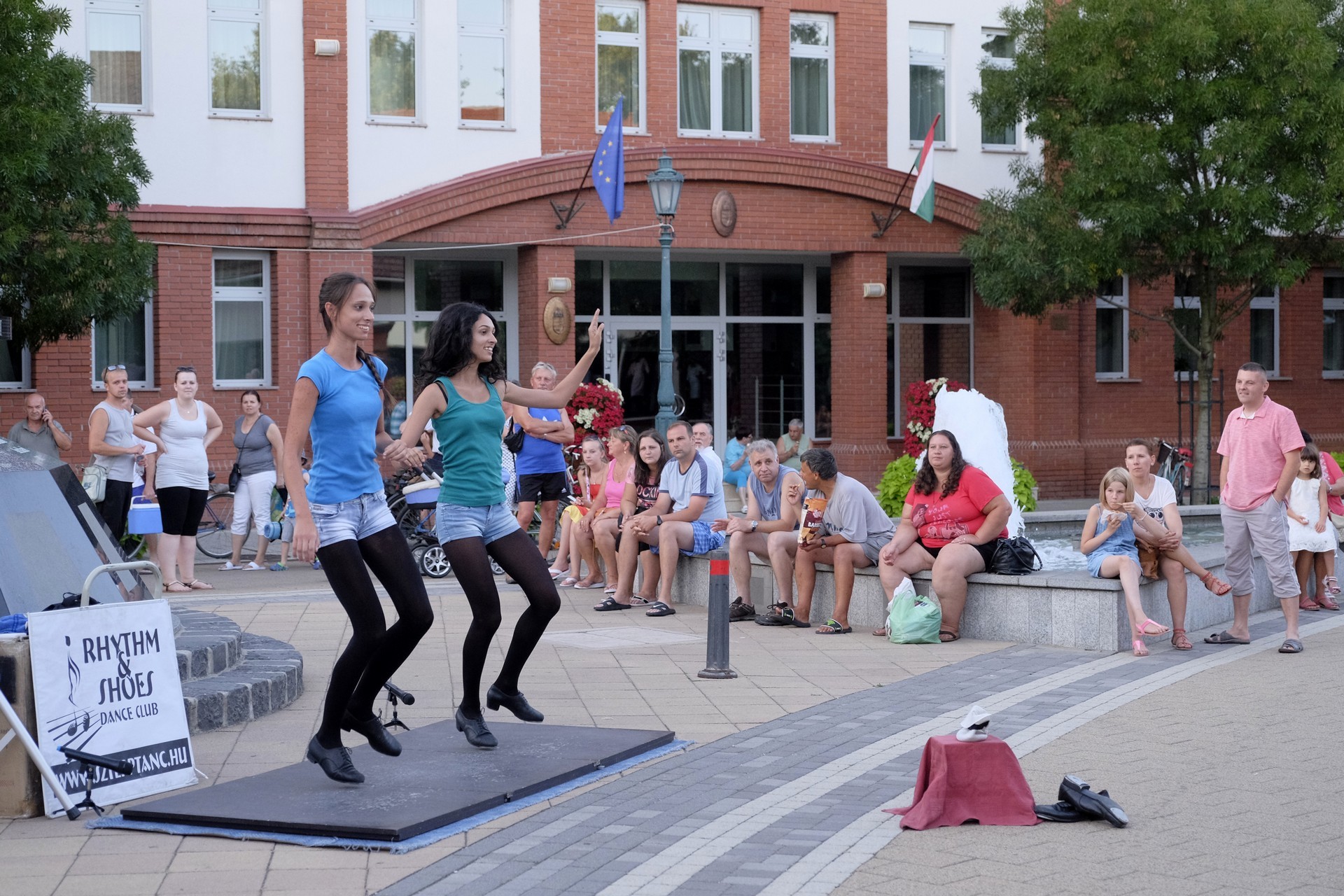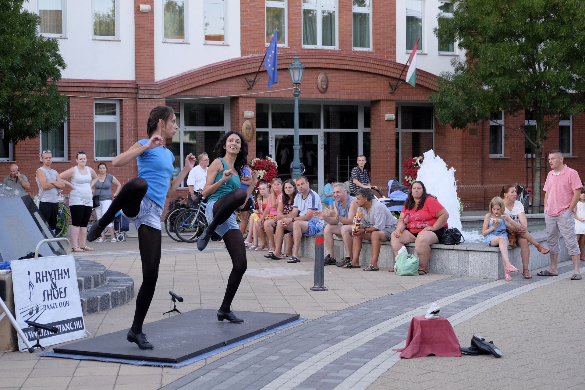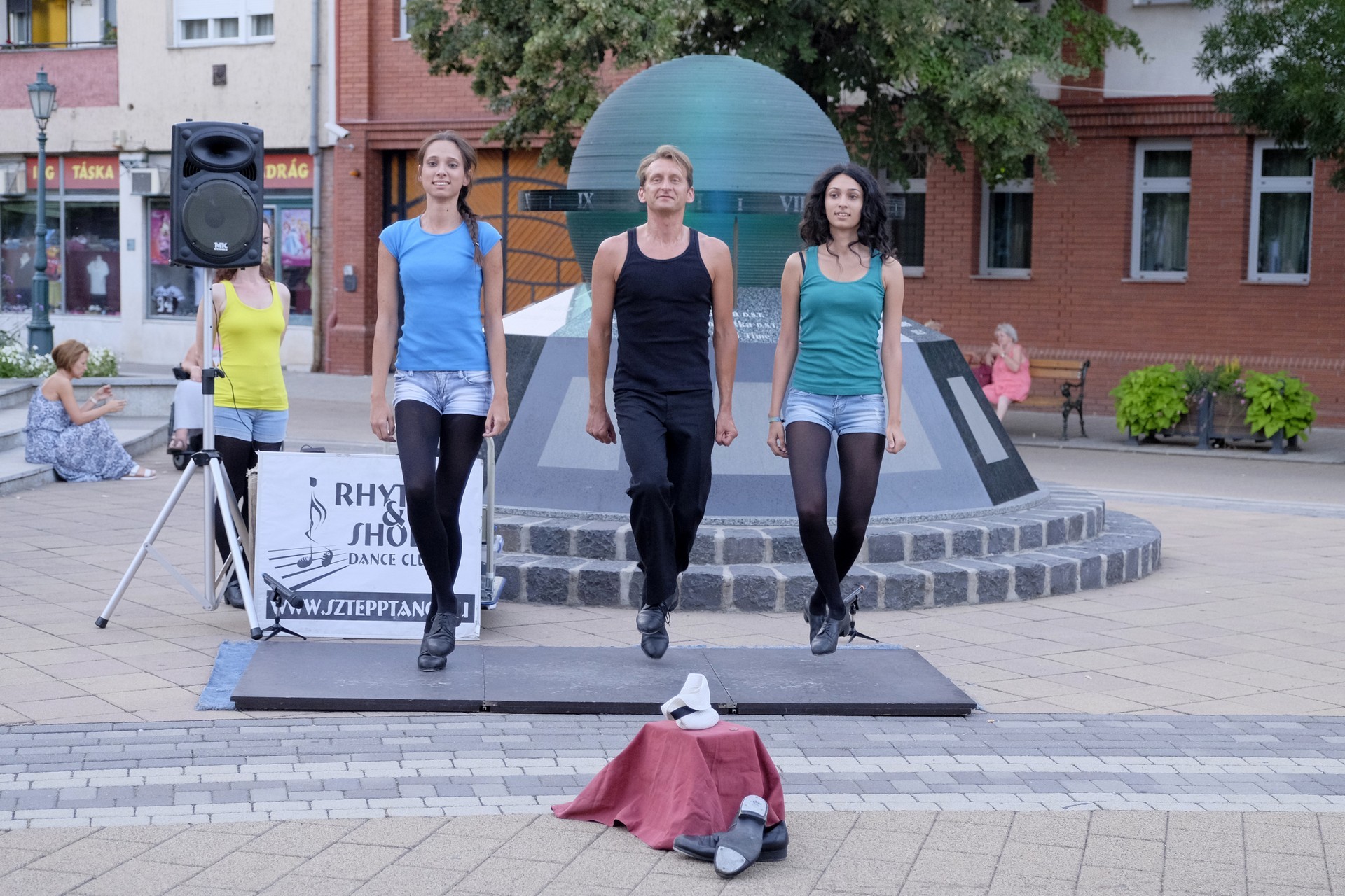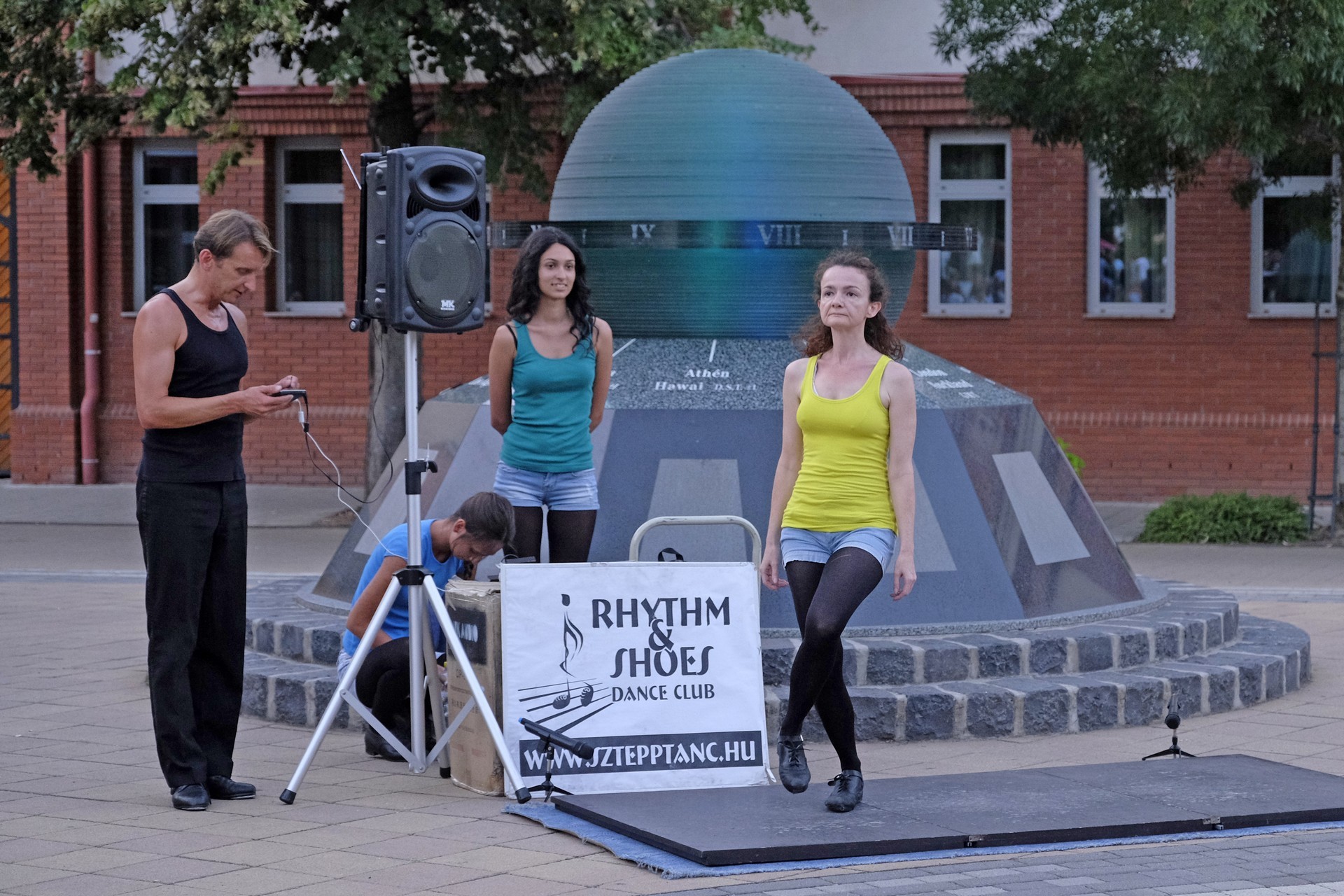 Megtelt a Világóra és környéke fiatalokkal és idősekkel egyaránt, hiszen a közkedvelt Rhythm and Shoes Dance Club adott műsort.