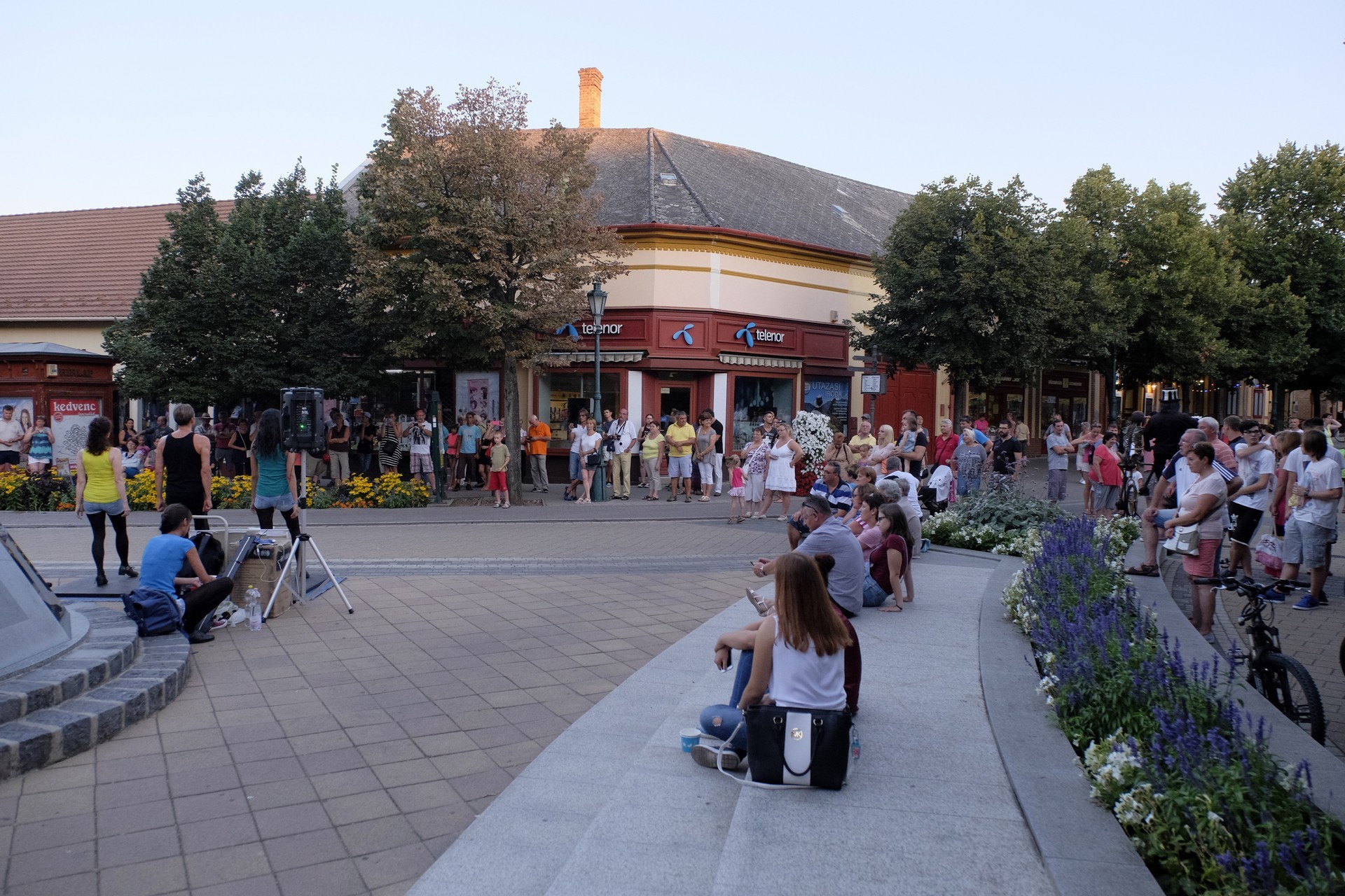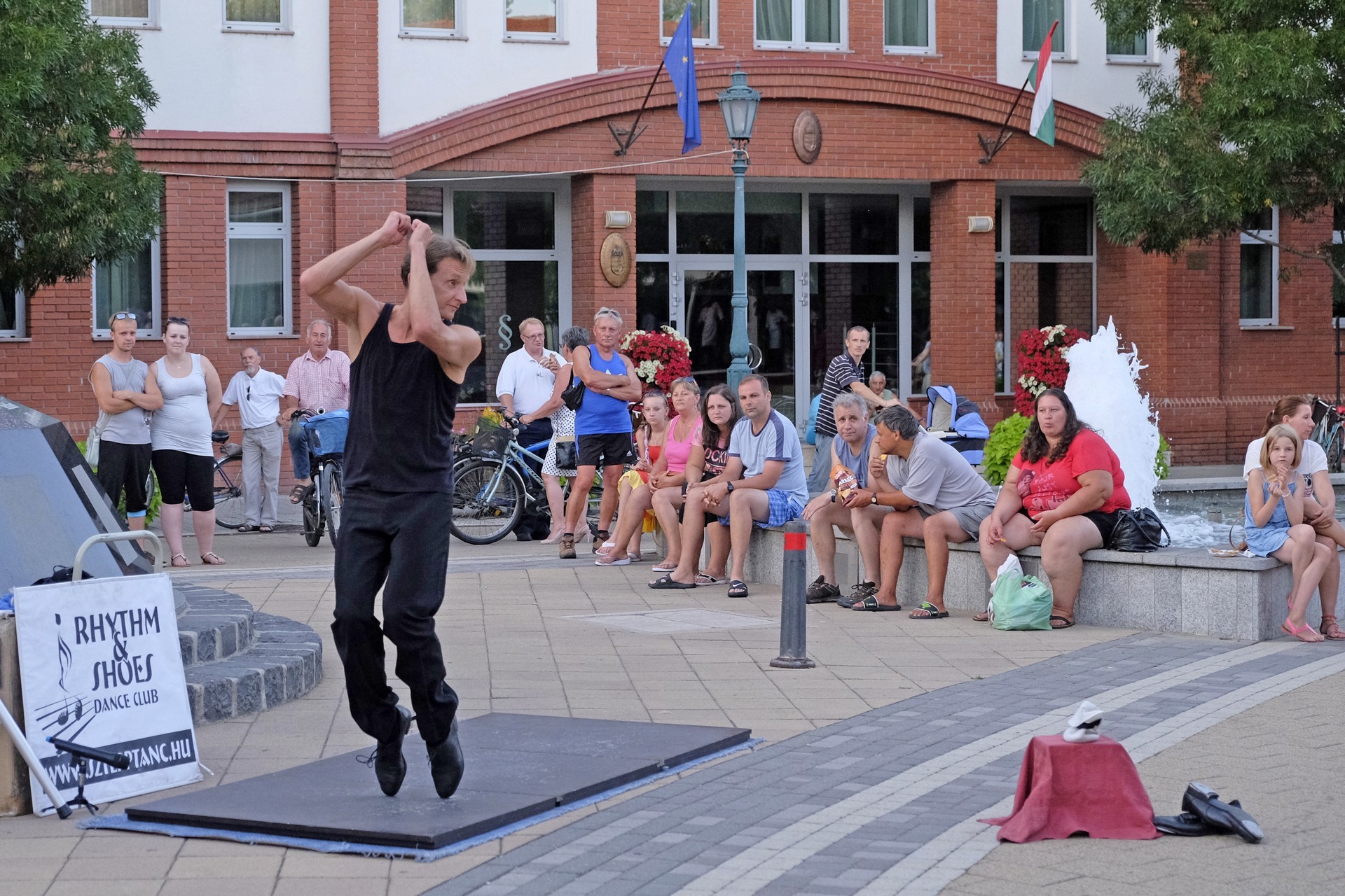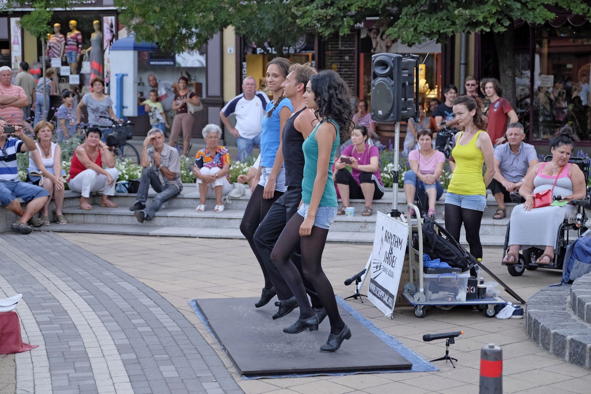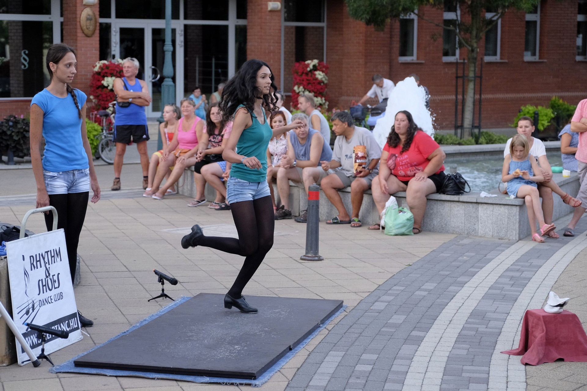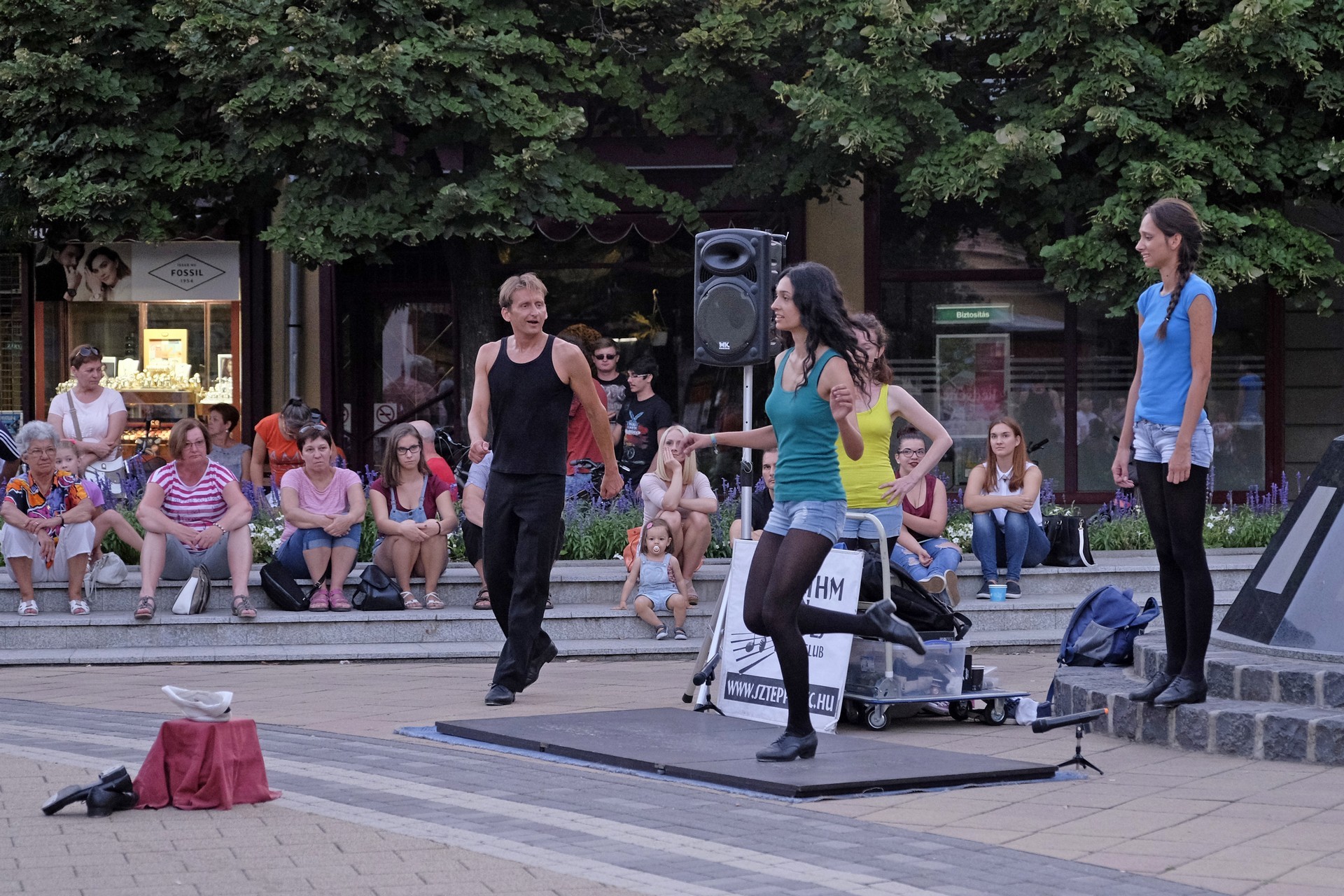 Megtelt a Világóra és környéke fiatalokkal és idősekkel egyaránt, hiszen a közkedvelt Rhythm and Shoes Dance Club adott műsort.