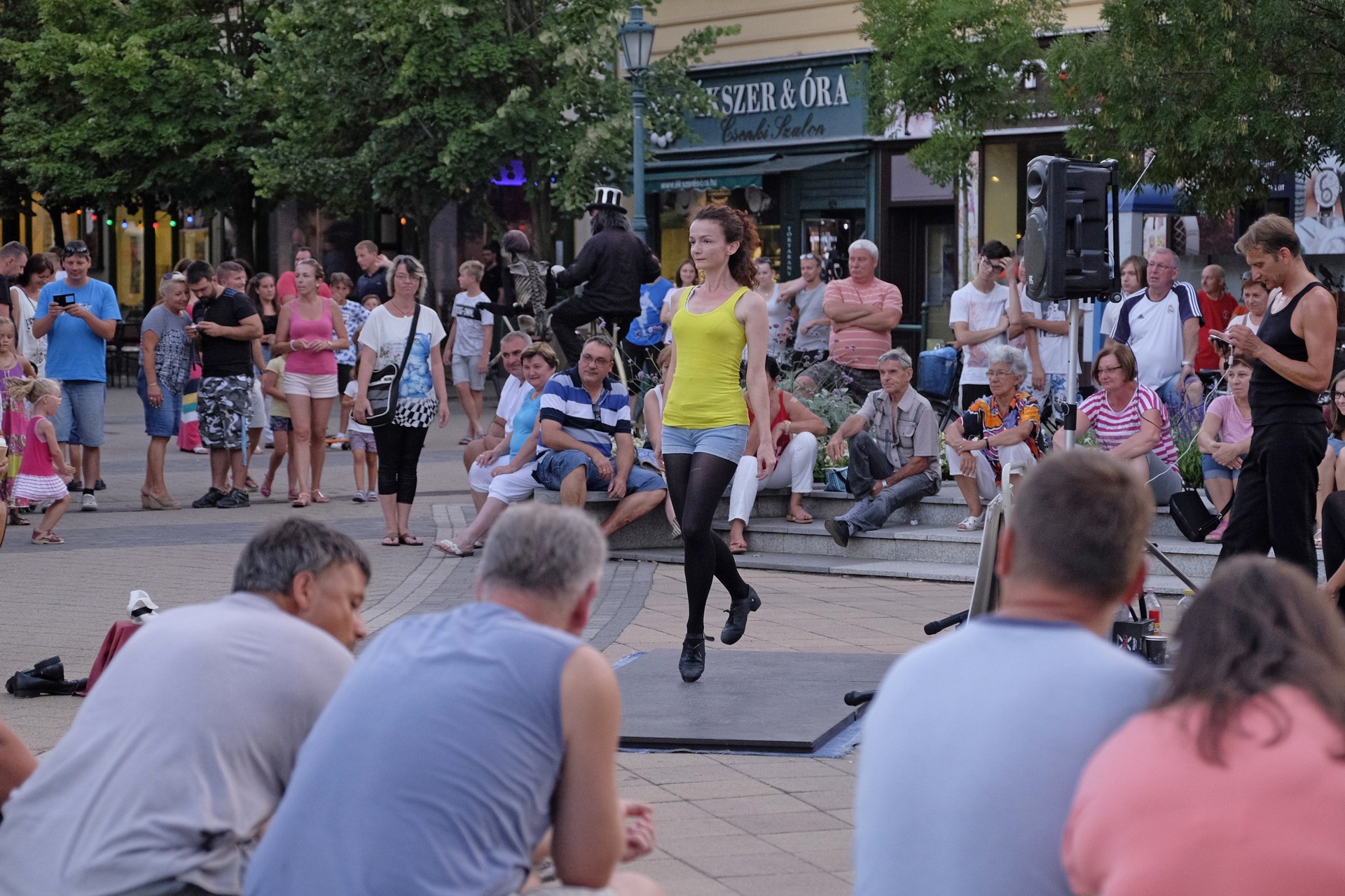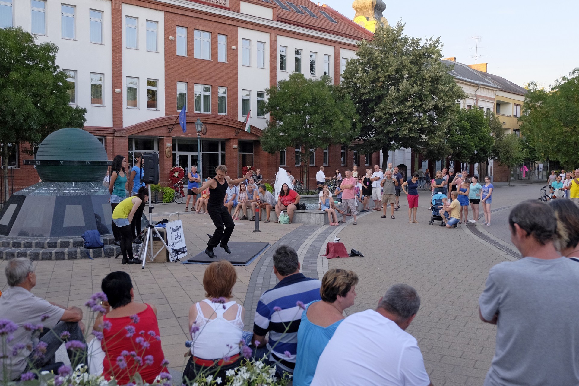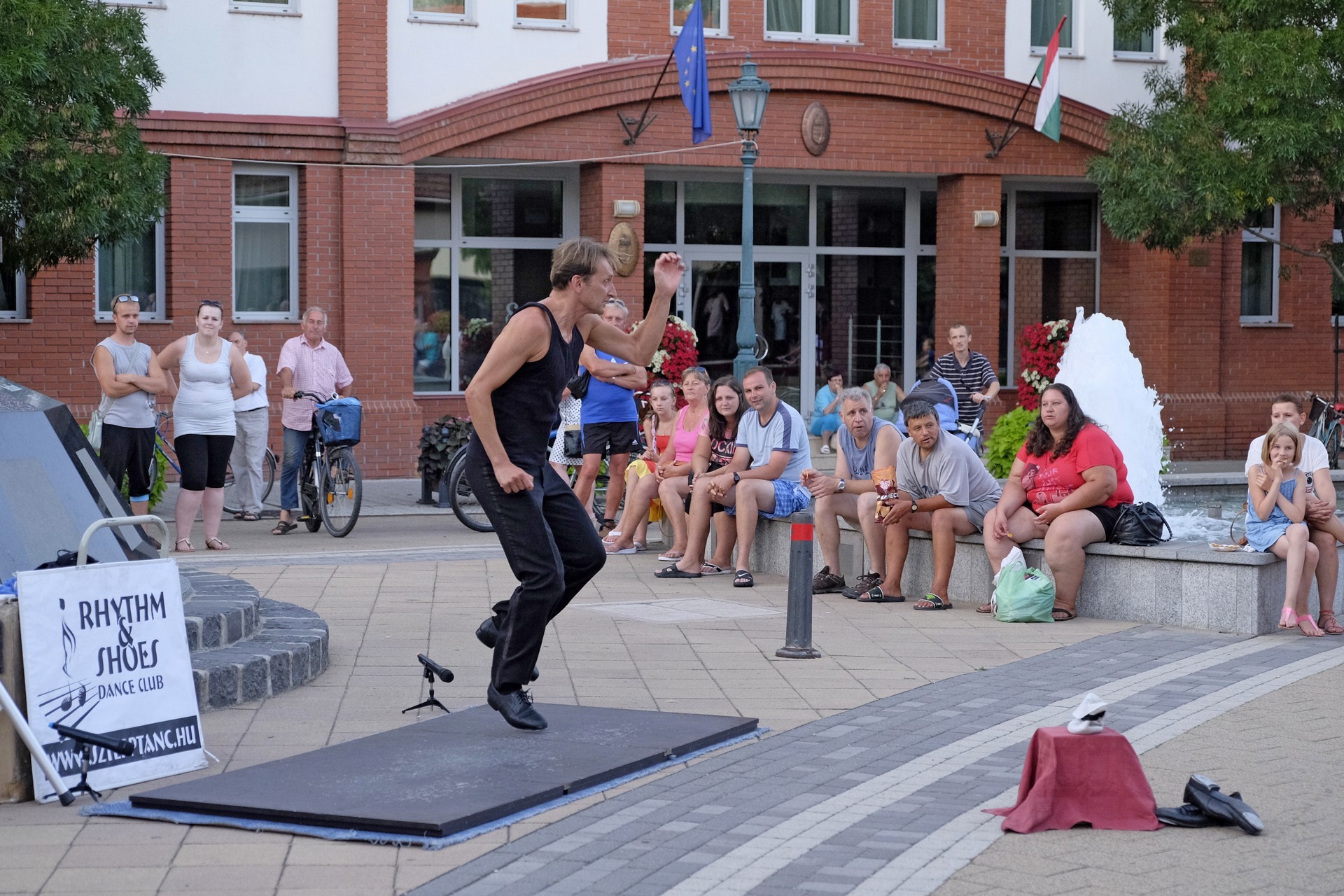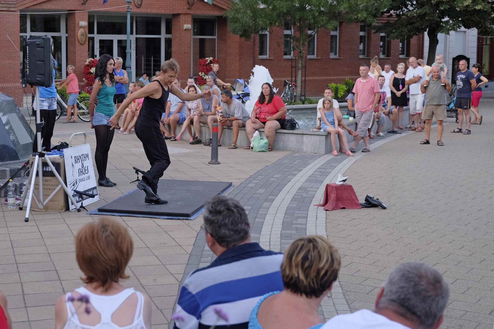 Megtelt a Világóra és környéke fiatalokkal és idősekkel egyaránt, hiszen a közkedvelt Rhythm and Shoes Dance Club adott műsort.