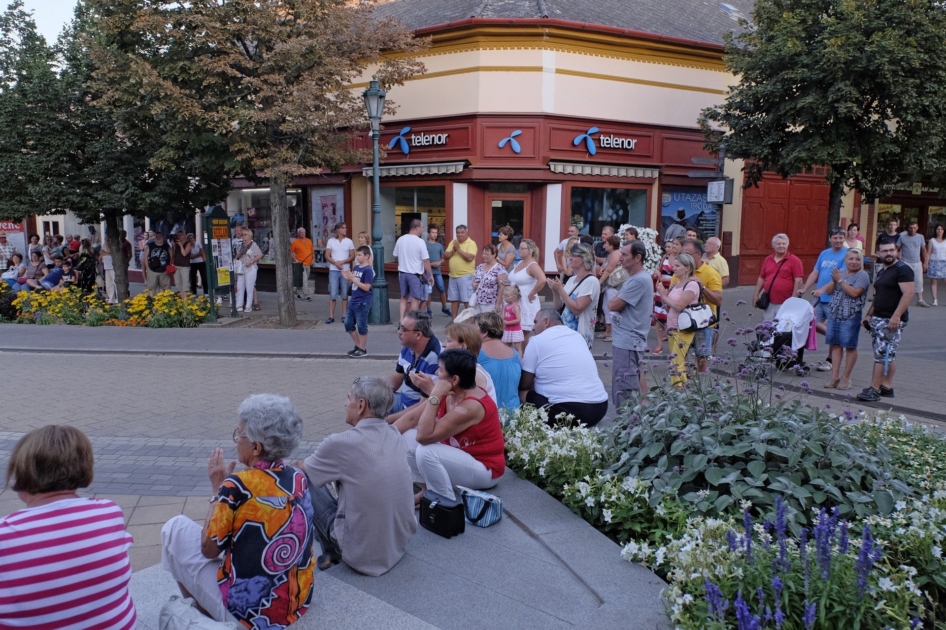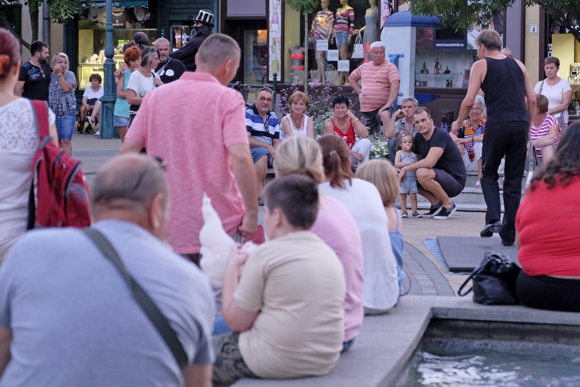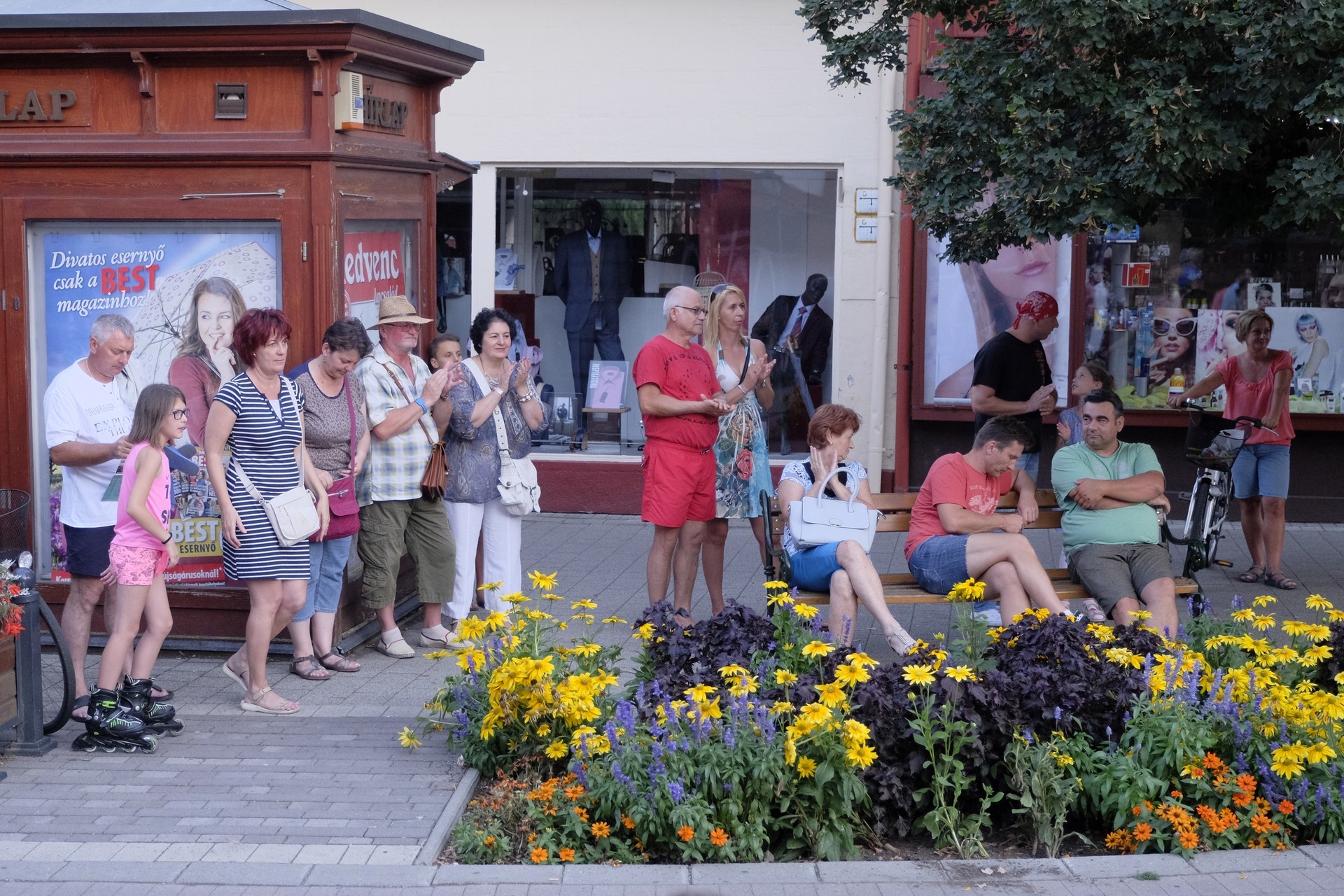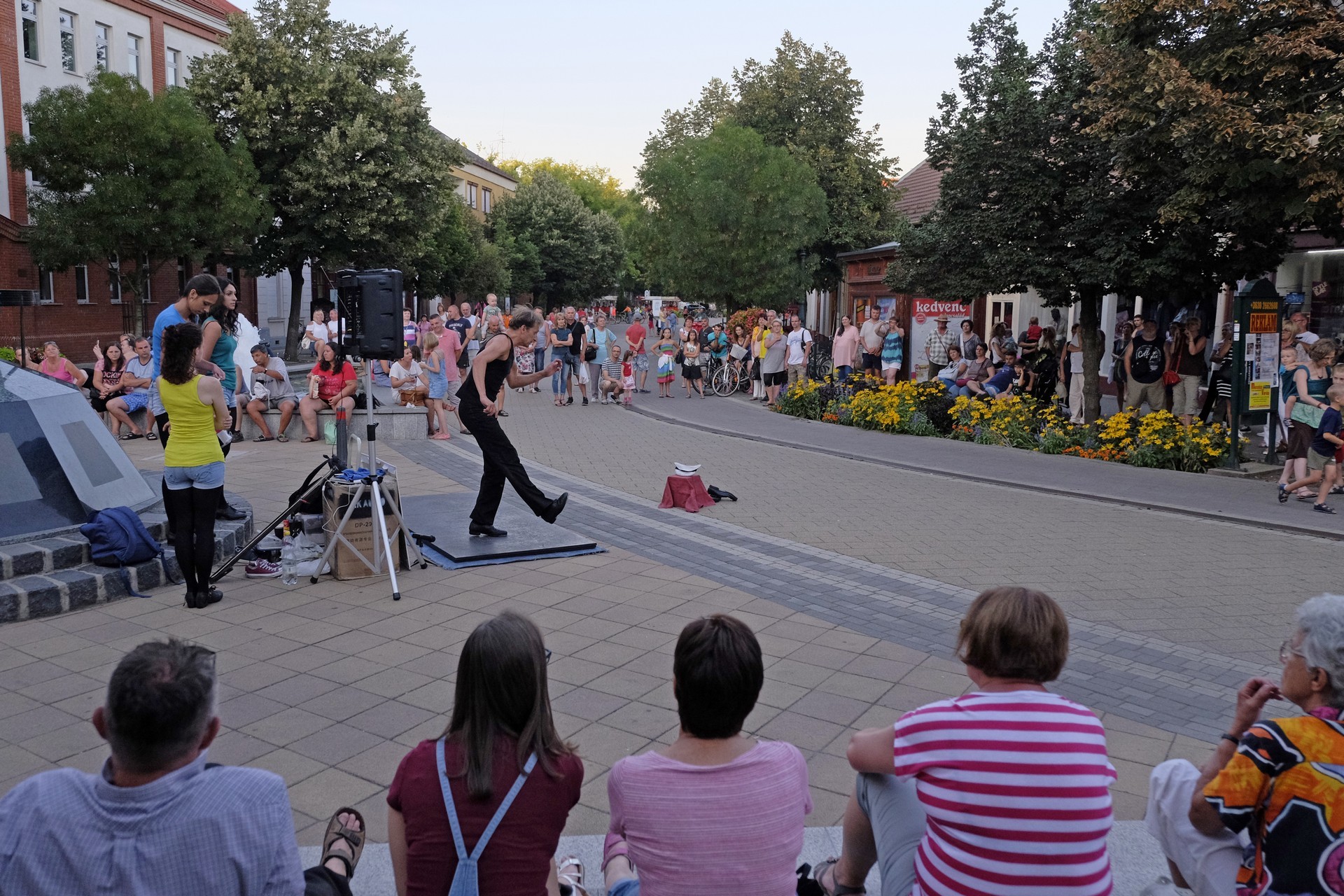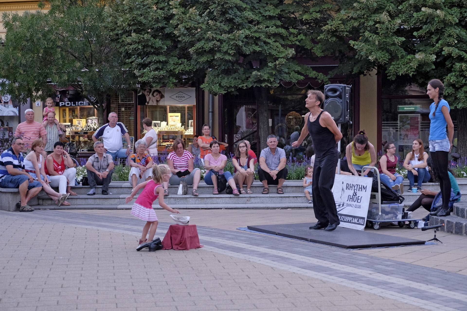 Megtelt a Világóra és környéke fiatalokkal és idősekkel egyaránt, hiszen a közkedvelt Rhythm and Shoes Dance Club adott műsort.