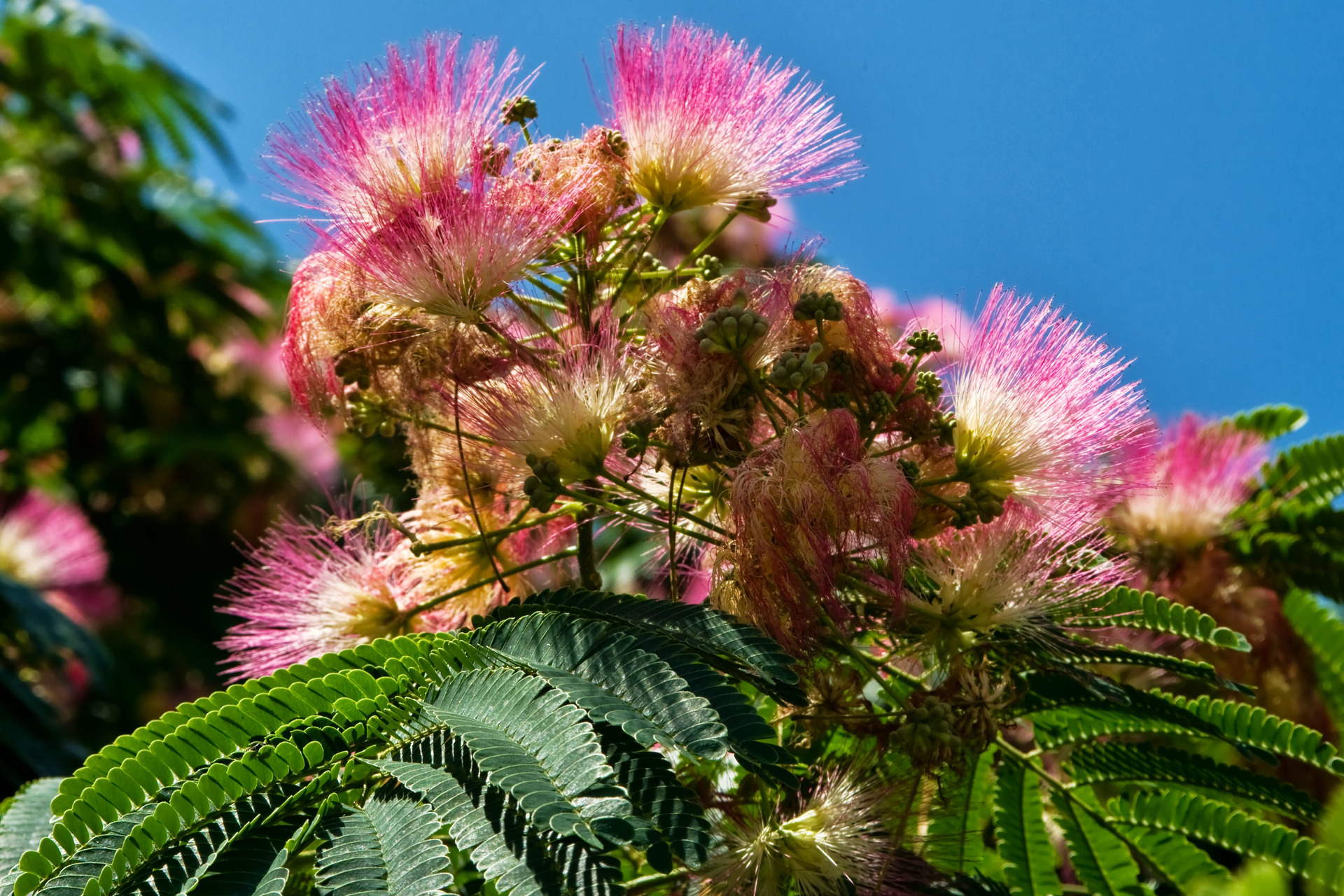 A selyemakác (albizia) újra telerakta magát a bolhák tömegével. Természetesen az időjárás döntően befolyásolja ezeknek a gusztustalan kártevőknek a felszaporodását, túlélését. Jómagam több napszakban többféle szerrel próbálkoztam, sikertelenül!