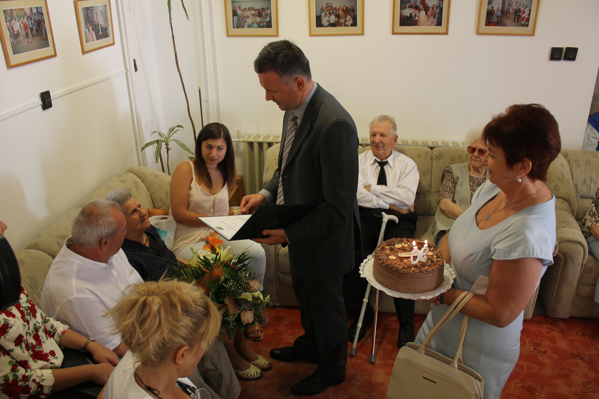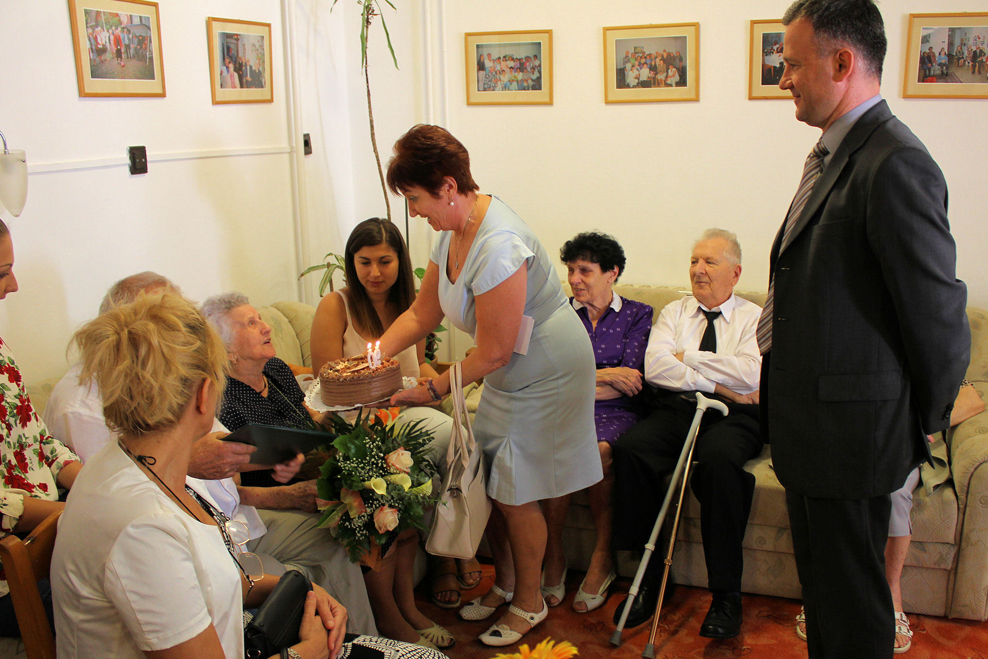A vendégek csokoládétortát, virágcsokrot és egy Magyarország miniszterelnöke által aláírt emléklapot vittek Margit néninek, akivel később jó hangulatban el is beszélgettek a városi önkormányzat küldöttei. Lakótársai még születésnapi köszöntődallal is meglepték az ünnepeltet, aki meghatottan hallgatta a neki szóló dallamokat.