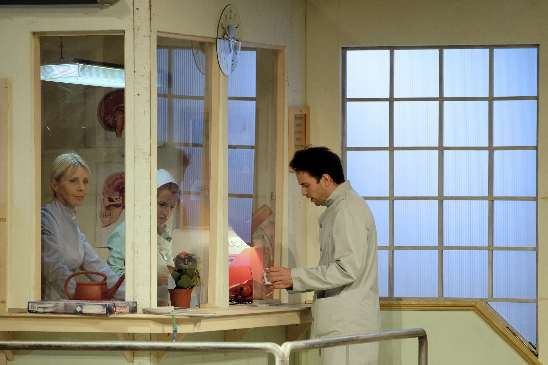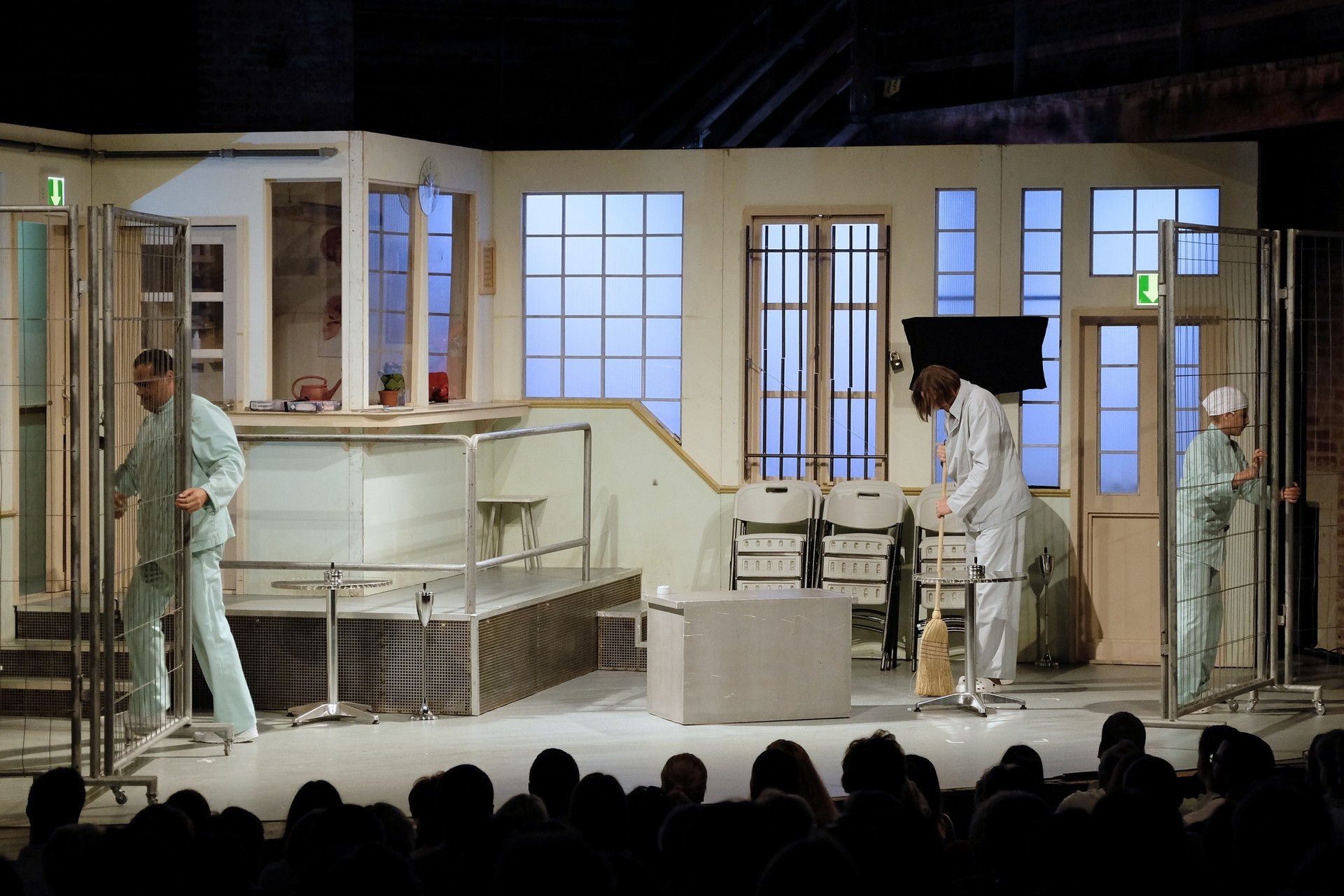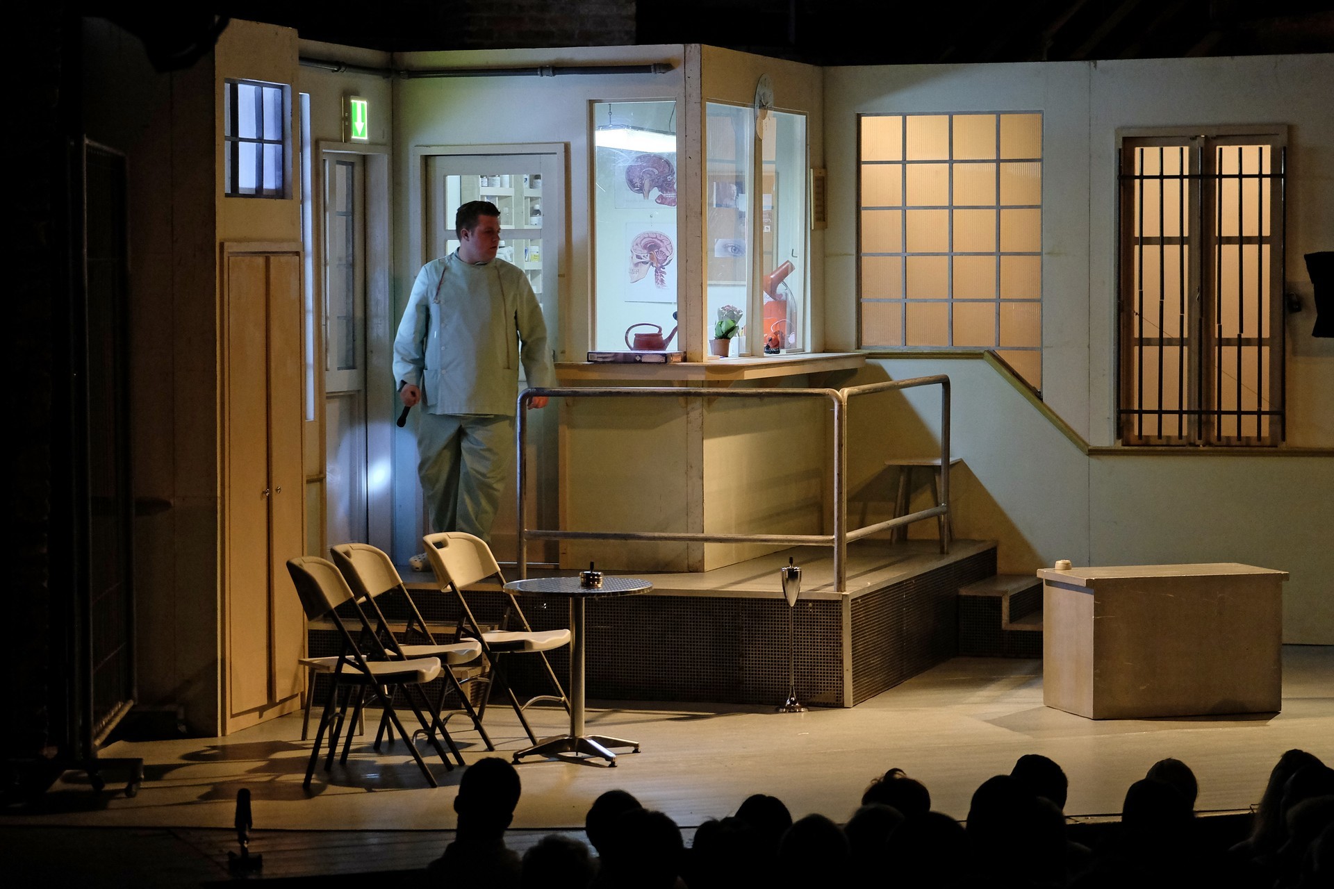 Be kell vallanom, ambivalens érzések kavarogtak bennem, hiszen egy 5 Oscar-díjas filmmel felvenni a versenyt, és újat mutatni, színdarabot írni a műből, vagy színpadra állítani nem kis kihívás. De ezt az akadályt könnyedén átugrották. Dale Wasserman librettója alapján, Znamenák István összeszedett, tökéletesen megkoreografált rendezésében a mű újabb köntöst kapott. A színdarabot a filmmel ellentétben inkább mondanám közönségbarátabbnak az itt-ott megtűzdelt poénjai és félmondatai miatt, melyek mosolyt csaltak az arcokra, és feloldották a nyomasztó légkört, míg a filmben inkább a realisztikus helyzetábrázolás kap teret. Tehát szó, ami szó, borzasztóan izgatott, hogy mi fog történni a színpadon, azonban nem emlékszem másra, csak arra, hogy miután kihunytak a nézőtéren a fények, megjelent egy dimenziókapu, és beszippantotta az egész közönséget. Ott lebegtünk valahol a valóság és a színjáték mezsgyéjén, a cselekmény előrehaladtával nehezen lehetett eldönteni, mégis hol vagyunk valójában. Egy színházi előadáson vagy egy pszichiátriai osztály társalgójában. Szabó Kimmel Tamás játékára a legtalálóbb jellemző a természetesség és könnyedség, minden mondat, minden mozdulat rendkívül jól állt neki. Péterfy Bori tökéletesen formálta meg a diktatórikus, elembertelenítő és kőszívű Ratched nővért, mondatai nyomán megfagyott a levegő. Kocsis Pál pedig szavak nélkül is fantasztikusan töltötte meg tartalommal Bromden indiánfőnök szerepét. Minden elismerésem a castingosé, aki remekül válogatta össze a szereplőgárdát, egytől egyig emlékezetes alakítások születtek.