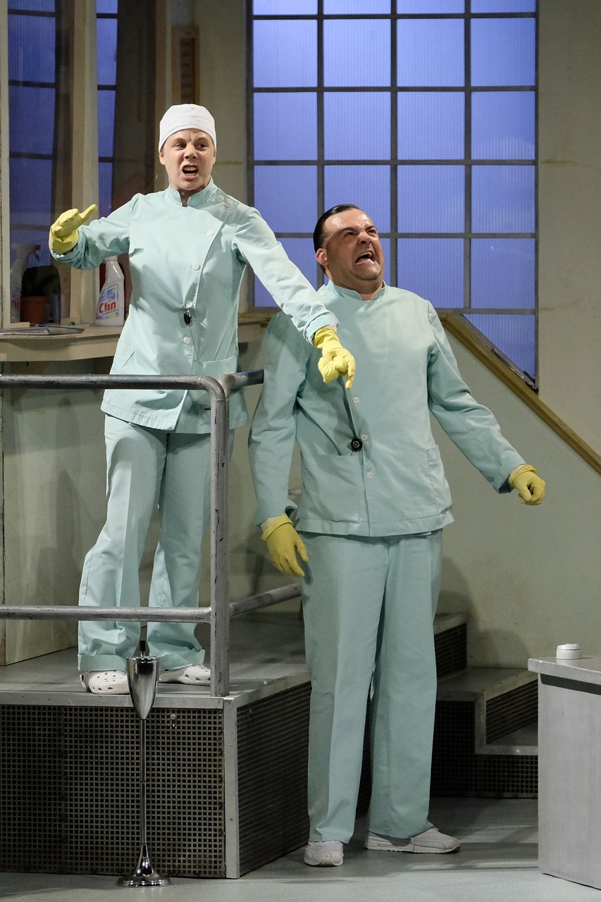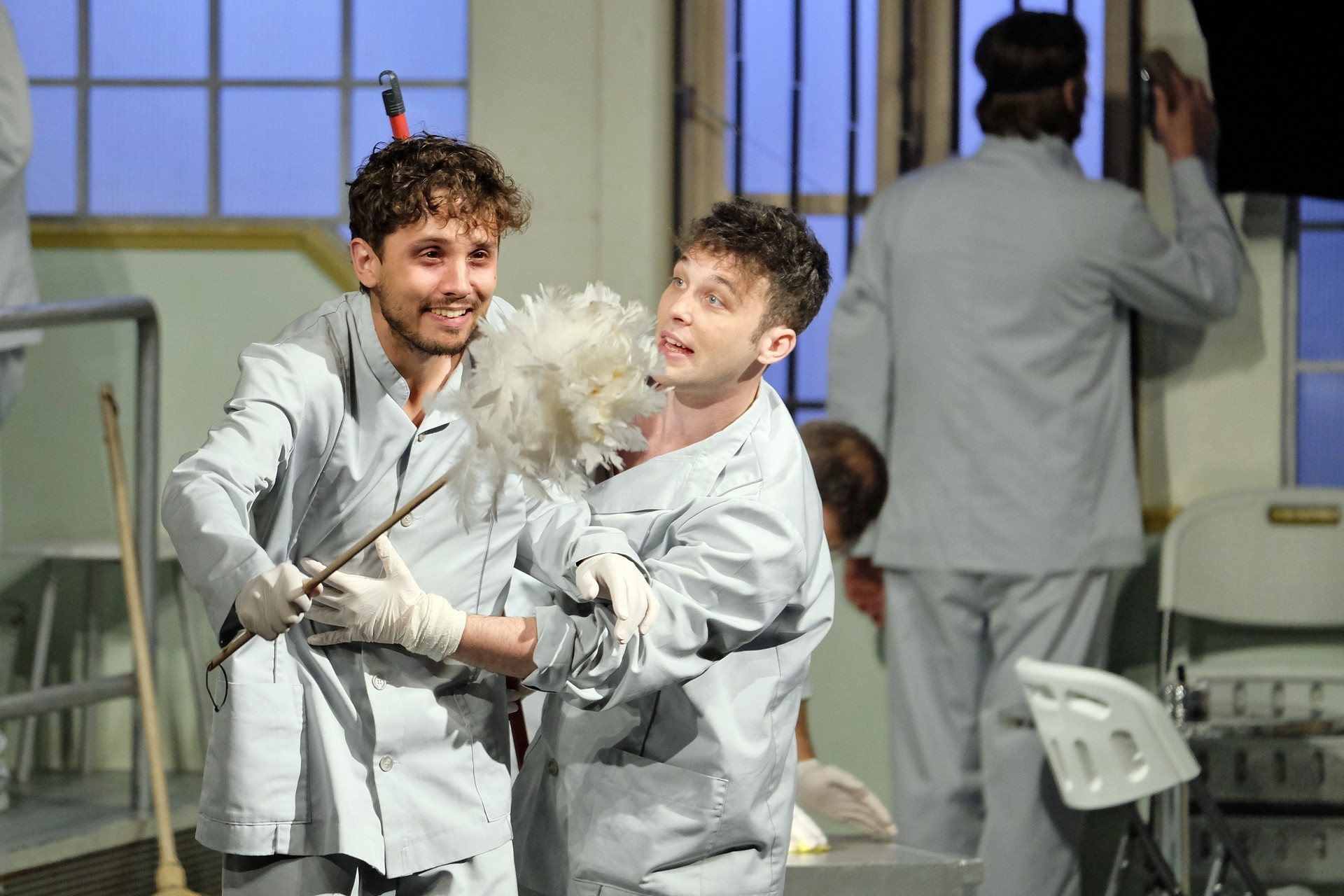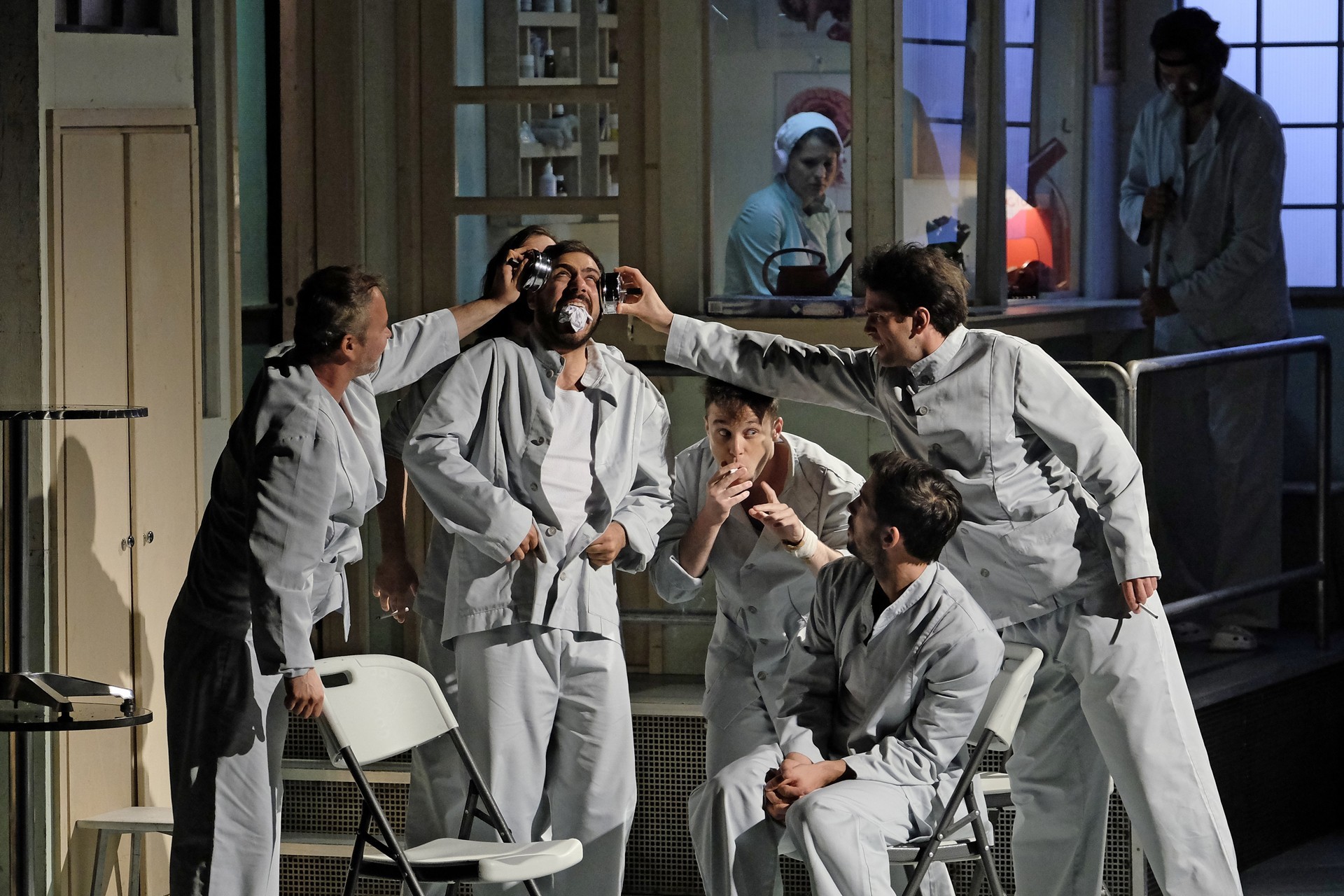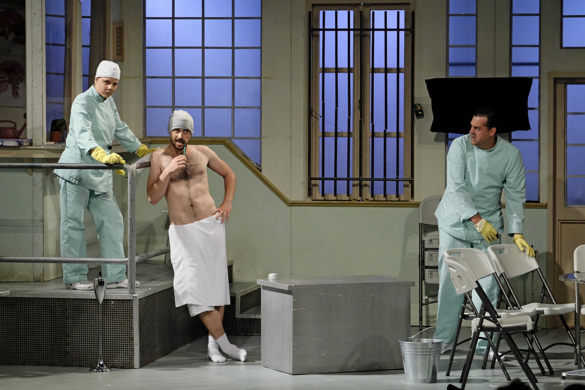Be kell vallanom, ambivalens érzések kavarogtak bennem, hiszen egy 5 Oscar-díjas filmmel felvenni a versenyt, és újat mutatni, színdarabot írni a műből, vagy színpadra állítani nem kis kihívás. De ezt az akadályt könnyedén átugrották. Dale Wasserman librettója alapján, Znamenák István összeszedett, tökéletesen megkoreografált rendezésében a mű újabb köntöst kapott. A színdarabot a filmmel ellentétben inkább mondanám közönségbarátabbnak az itt-ott megtűzdelt poénjai és félmondatai miatt, melyek mosolyt csaltak az arcokra, és feloldották a nyomasztó légkört, míg a filmben inkább a realisztikus helyzetábrázolás kap teret. Tehát szó, ami szó, borzasztóan izgatott, hogy mi fog történni a színpadon, azonban nem emlékszem másra, csak arra, hogy miután kihunytak a nézőtéren a fények, megjelent egy dimenziókapu, és beszippantotta az egész közönséget. Ott lebegtünk valahol a valóság és a színjáték mezsgyéjén, a cselekmény előrehaladtával nehezen lehetett eldönteni, mégis hol vagyunk valójában. Egy színházi előadáson vagy egy pszichiátriai osztály társalgójában. Szabó Kimmel Tamás játékára a legtalálóbb jellemző a természetesség és könnyedség, minden mondat, minden mozdulat rendkívül jól állt neki. Péterfy Bori tökéletesen formálta meg a diktatórikus, elembertelenítő és kőszívű Ratched nővért, mondatai nyomán megfagyott a levegő. Kocsis Pál pedig szavak nélkül is fantasztikusan töltötte meg tartalommal Bromden indiánfőnök szerepét. Minden elismerésem a castingosé, aki remekül válogatta össze a szereplőgárdát, egytől egyig emlékezetes alakítások születtek.