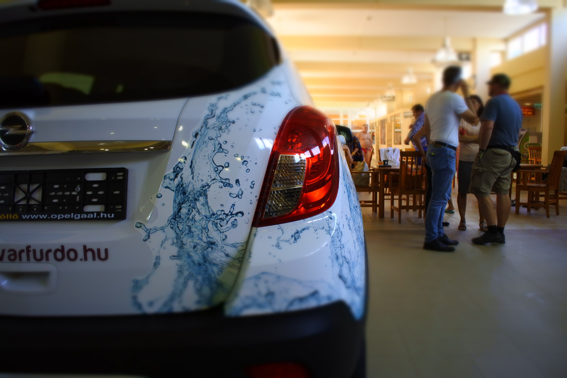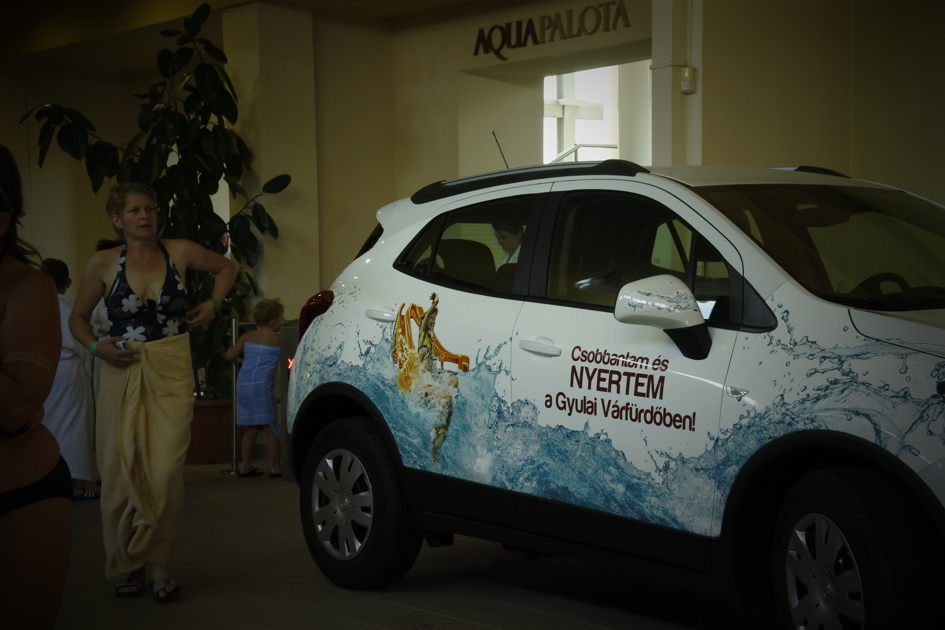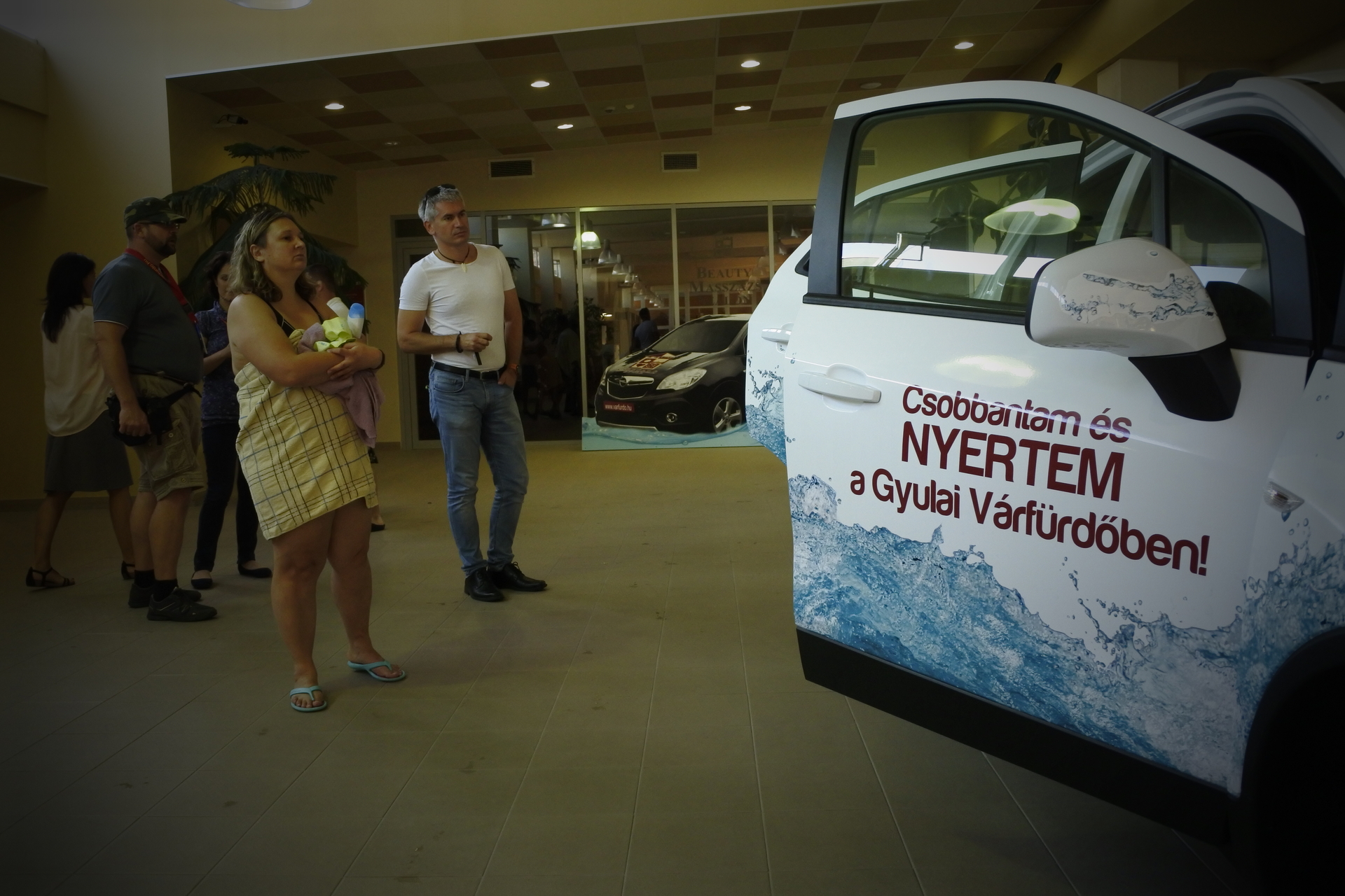 a nyereményautót sokan megcsodálják a gyulai várfürdőben