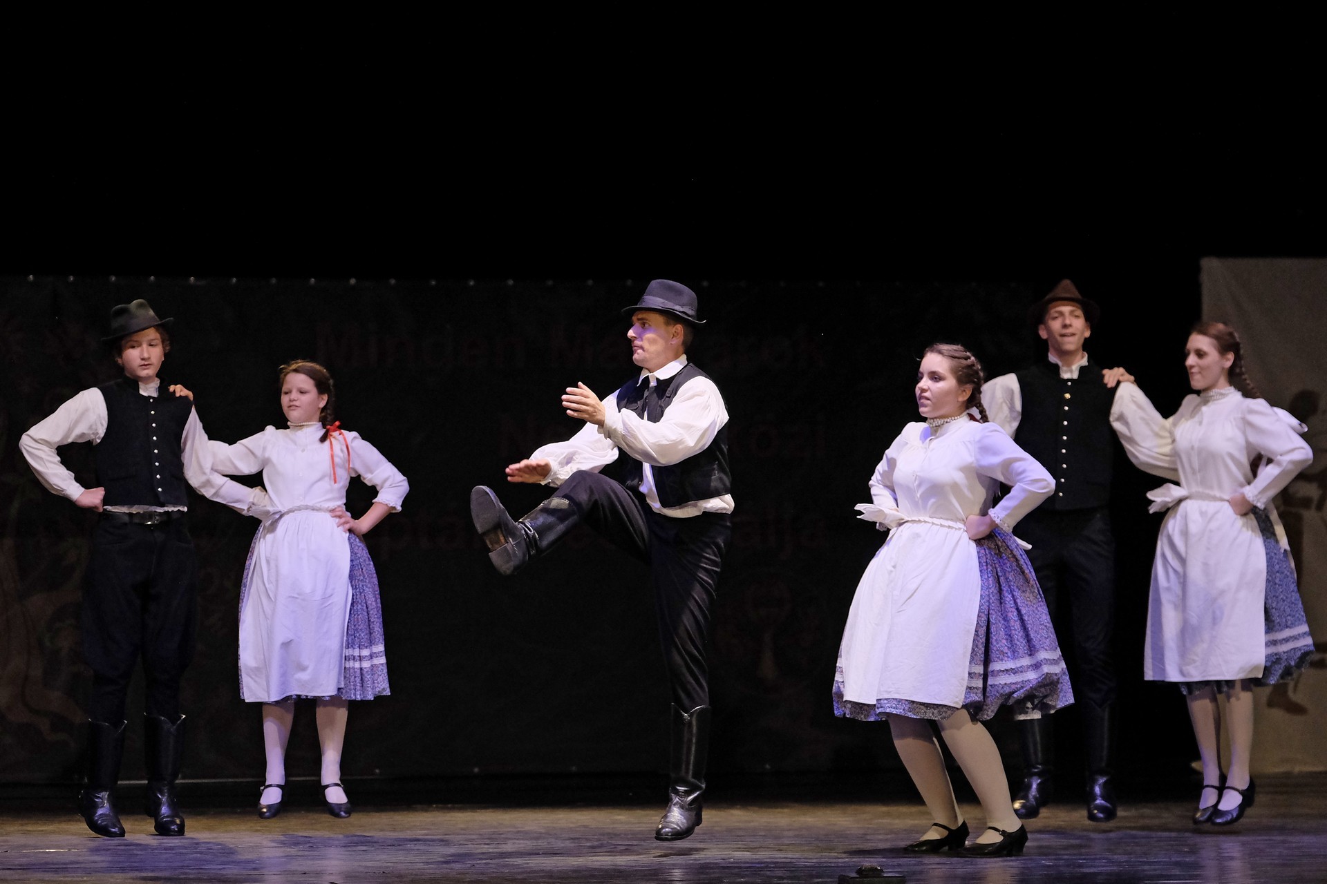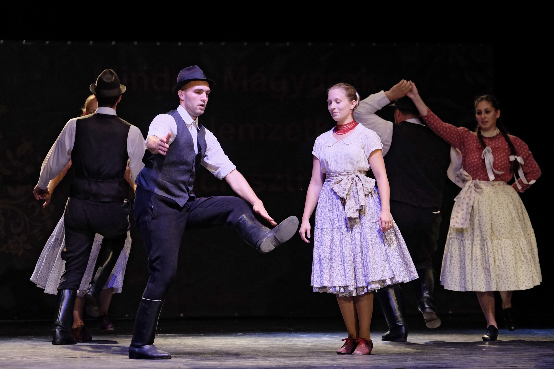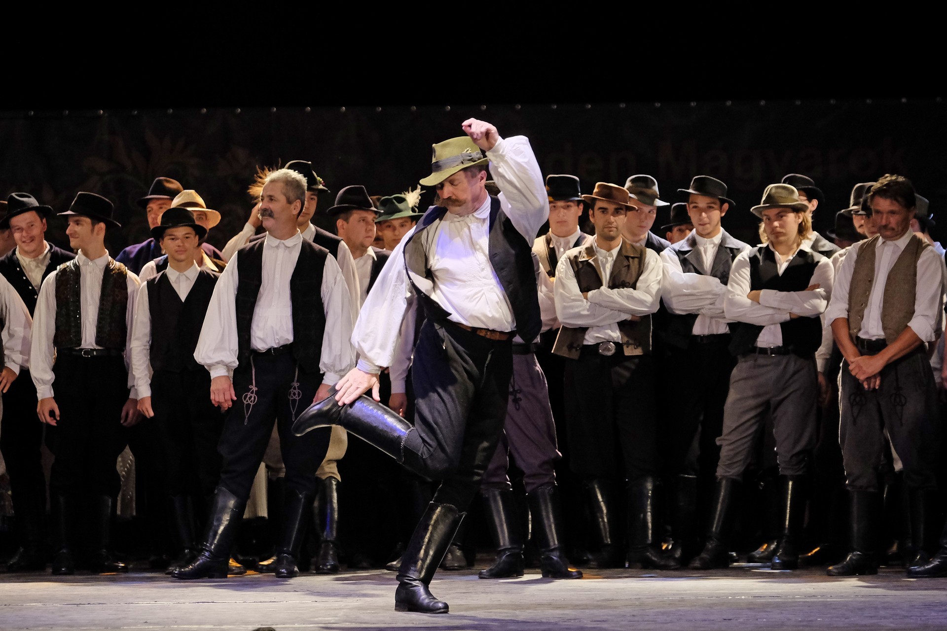 Az előadást a „Fordulj, kispej lovam” Táncegyüttes kezdte, amelynek tagjai az ország különböző pontjairól származnak és nincs állandó műsoruk. Ezúttal Huszárgyerek szereti a táncot címmel adtak elő paraszttáncot és verbunkot.