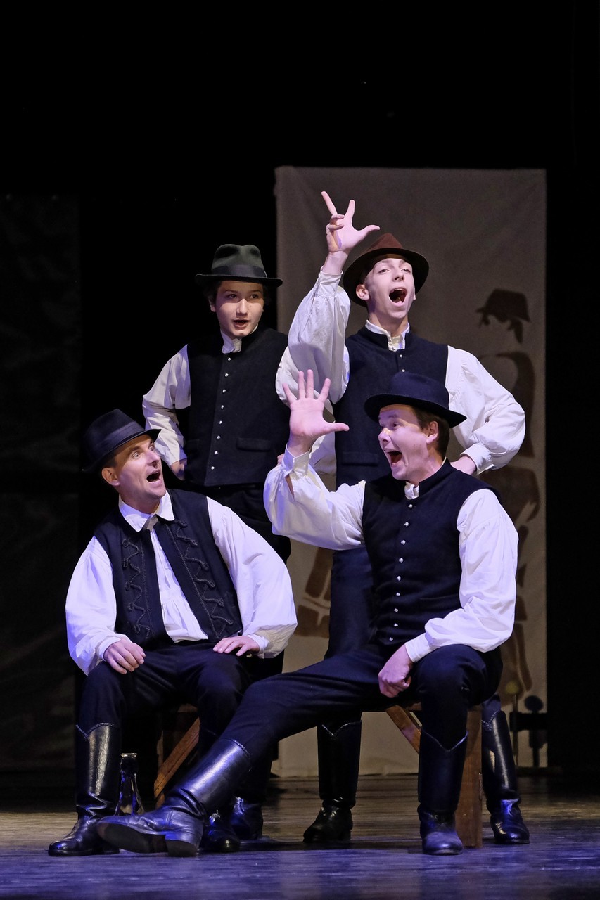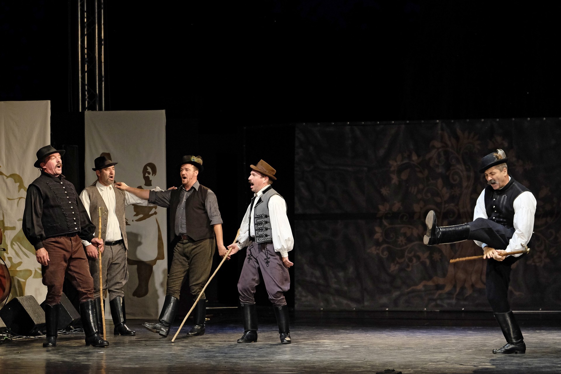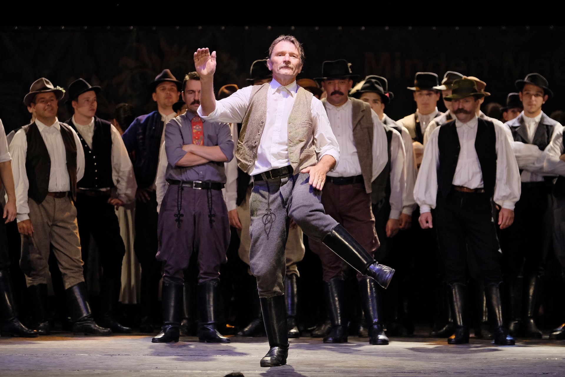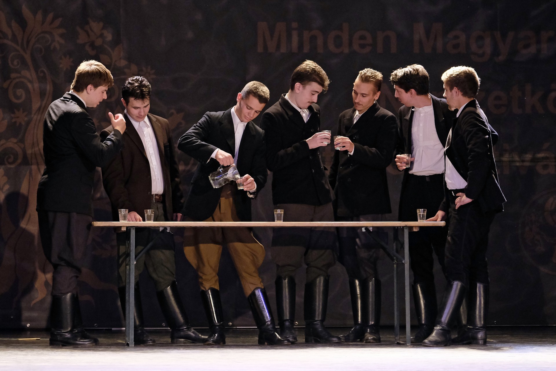 Az előadást a „Fordulj, kispej lovam” Táncegyüttes kezdte, amelynek tagjai az ország különböző pontjairól származnak és nincs állandó műsoruk. Ezúttal Huszárgyerek szereti a táncot címmel adtak elő paraszttáncot és verbunkot.