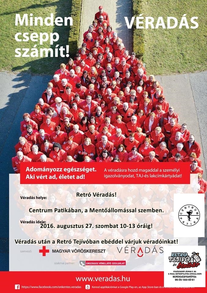 Retró véradásra hívja a gyulai lakosokat a Magyar Vöröskereszt Területi Szervezete augusztus 27-én, szombaton 10-től 13 óráig. A véradás helyszíne a Centrum Patika lesz, a mentőállomással szemben, a szomszédos Retró Tejivó pedig egy ebéddel vendégeli meg a véradókat.