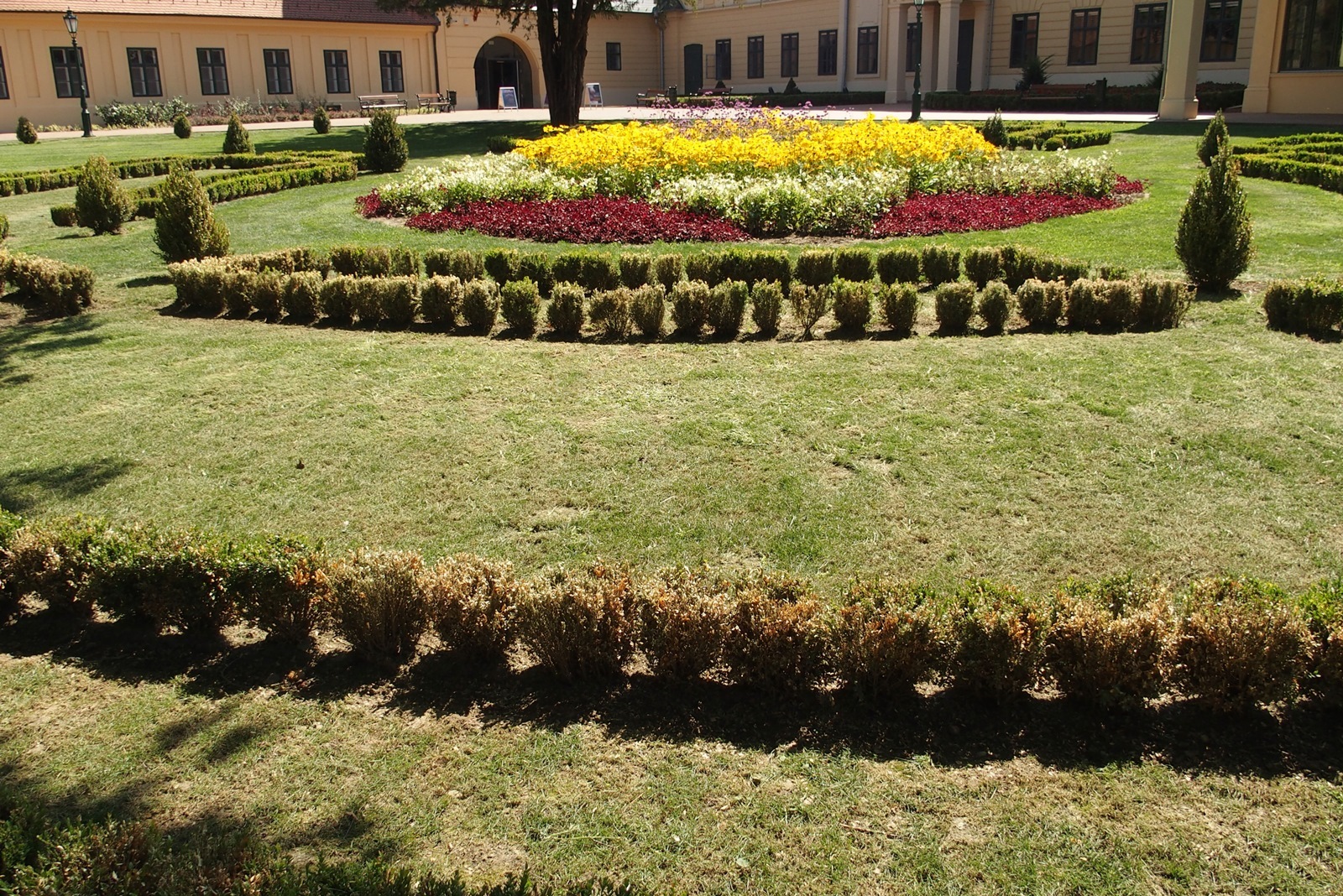 A letarolt bukszusok az Almásy-kastély kertjében