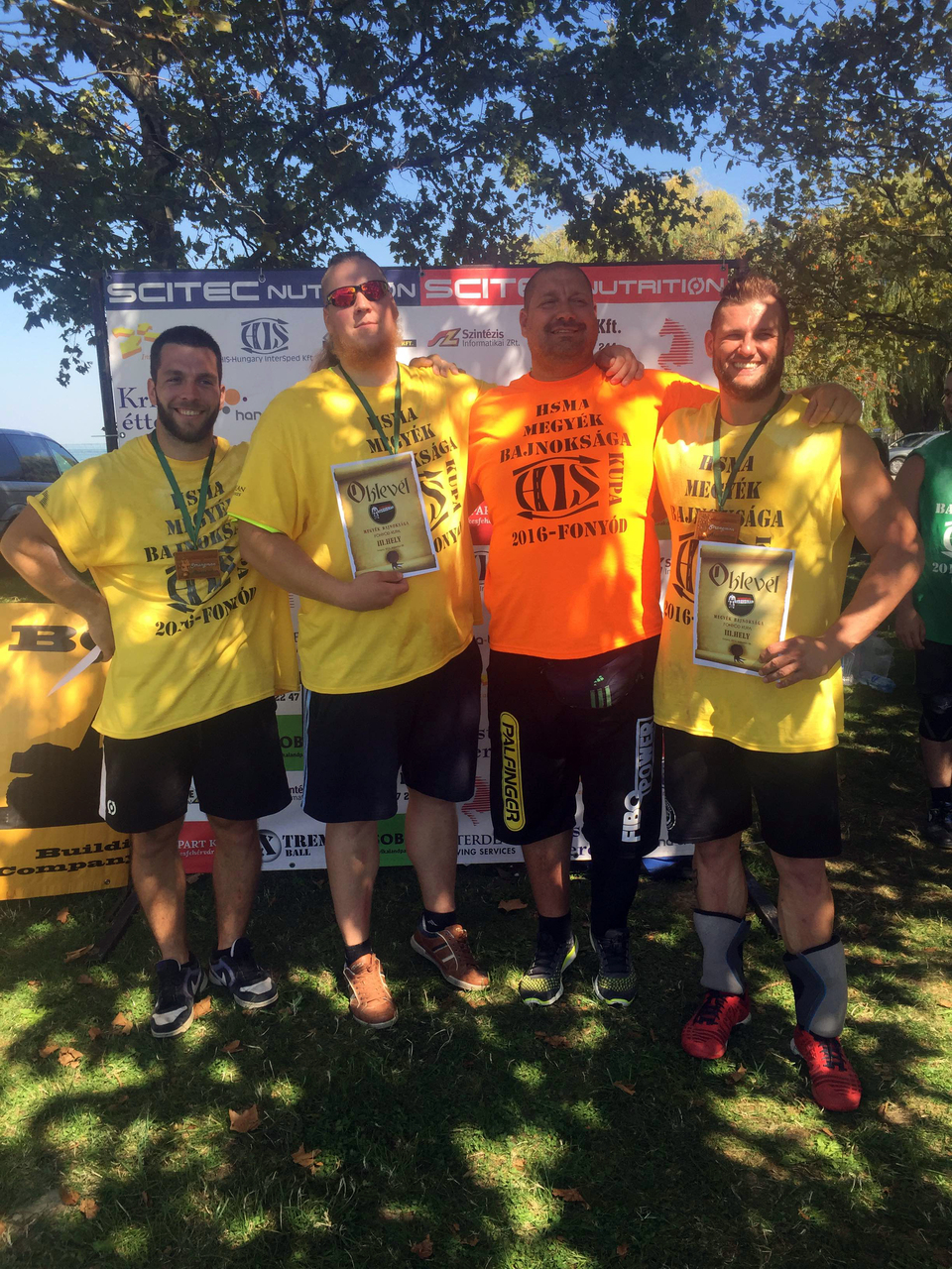 A megyei „válogatott” végig kiegyensúlyozott teljesítményt nyújtott, és már az első számnál – amely egy vegyes nyomáspróba volt – látszott, hogy éremesélyesként kell számolni velük. A második számban, az úgynevezett lekvárosbödön-cipelésben (120 és 140 kg) már az összetett harmadik helyén álltak a viharsarki versenyzők. Az ezt követő traktorkerék-forgatást meg is nyerték, ők forgatták a legjobban a 350 kilogrammos kereket. Az utolsó két feladatban – izlandi keresztcipelés (110 kg), kőgolyóemelés (115 kg) – már nem tudtak a helyezésükön javítani, de így is bronzéremmel zárták a megmérettetést. A csapat tagjai voltak: Kónya Gergő (Csárdaszállás), Lovász Imre (Gyula) és Faniszló Máté (Gyula).