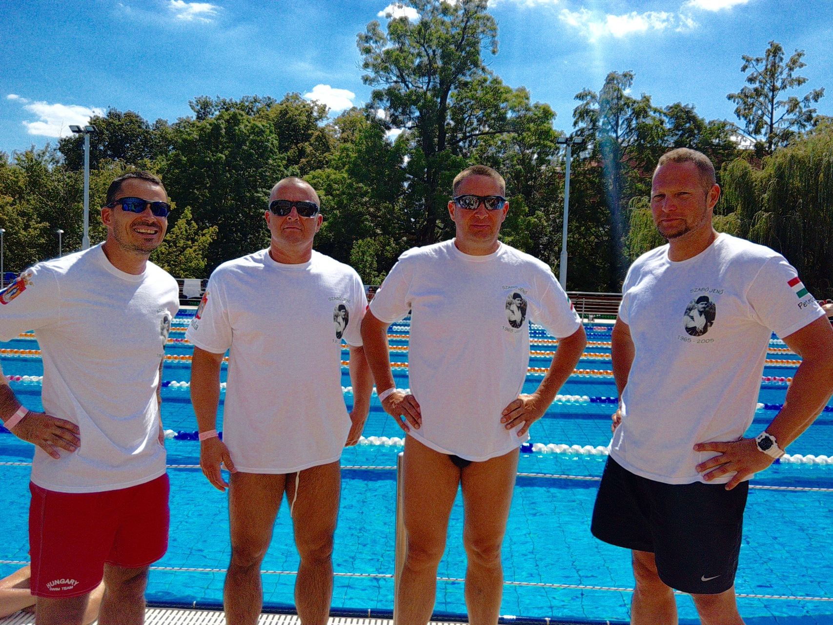 – Idén nyáron Jámbor Zolinak jutott eszébe, hogy Jenci tiszteletére induljunk el a szenior országos bajnokságon 4×50-es gyors váltóban, Szabó Jenő-emlékváltó néven. A sporttársak, mint mindig, most is első szóra jöttek. Az 1992-es búvárváltó állt össze, Szabó Jenőt, a klub sikeres versenyzőjét, Fekete Tamás helyettesítette. Az idei siker után, minden évben szeretnénk egy ilyen váltót indítani, ezzel tisztelegve Szabó Jenő emléke és családja előtt. Kis csapatunk a kezdeményezésünknek karitatív célokat is kitűzött. Szeretném megköszönni Kárnyáczki Imre volt klubelnök és Faniszló József támogatását – mondta Petróczki Zsombor.