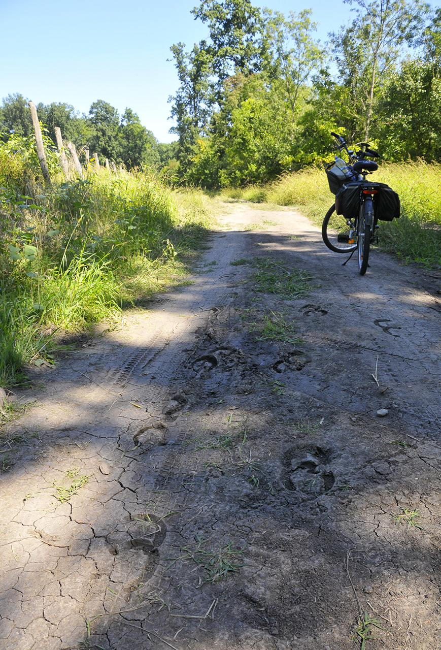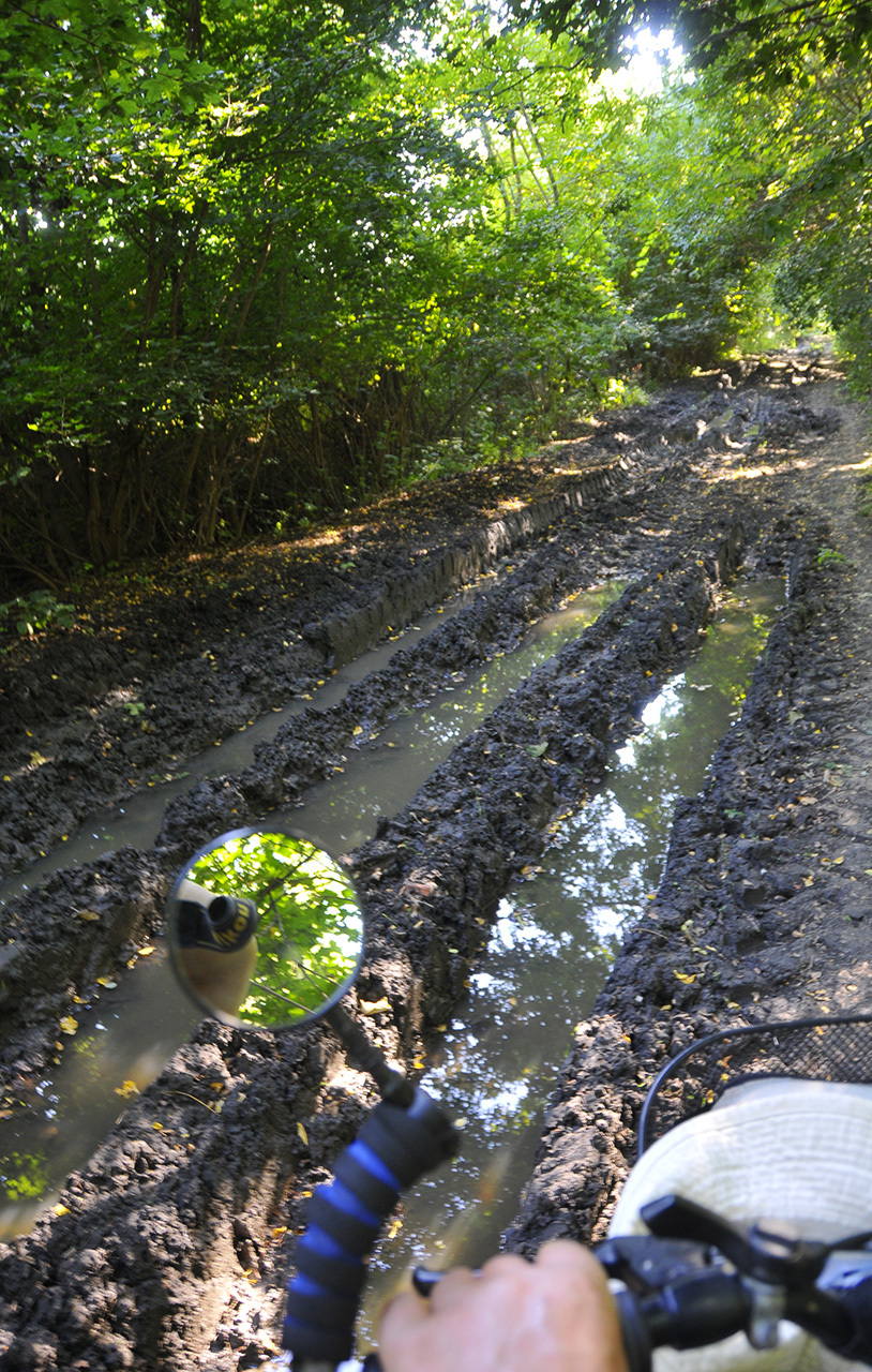 A gyulavári kastélyt elhagyva a solymosi út furcsa menhirei fogadják a turistákat: mintha egy óriás metszőollója nyeste volna vissza a hajdan forgalmas „sztrádát” szegélyező grandiózus jegenyesort. Kerékpáron azonban nem érdemes elmélázni, a 637-es az egykori kisvasút nyomvonalán – talán a távoli versenybicikliseket követve vagy a dénesi vendéglátóegység hűs sörétől csábítva – lassítás nélkül suhant tova a túra erdei bejárata mellett. Csak sok kilométernyi kutakodás után tért vissza a korábbi ellenőrző ponthoz. Órás kerülőbe tellett, míg újra a friss vörös jelzések között haladt a bringa. Tanulságul szolgáljon: teljesen más ismerni a környéket, és más a helyes utat.